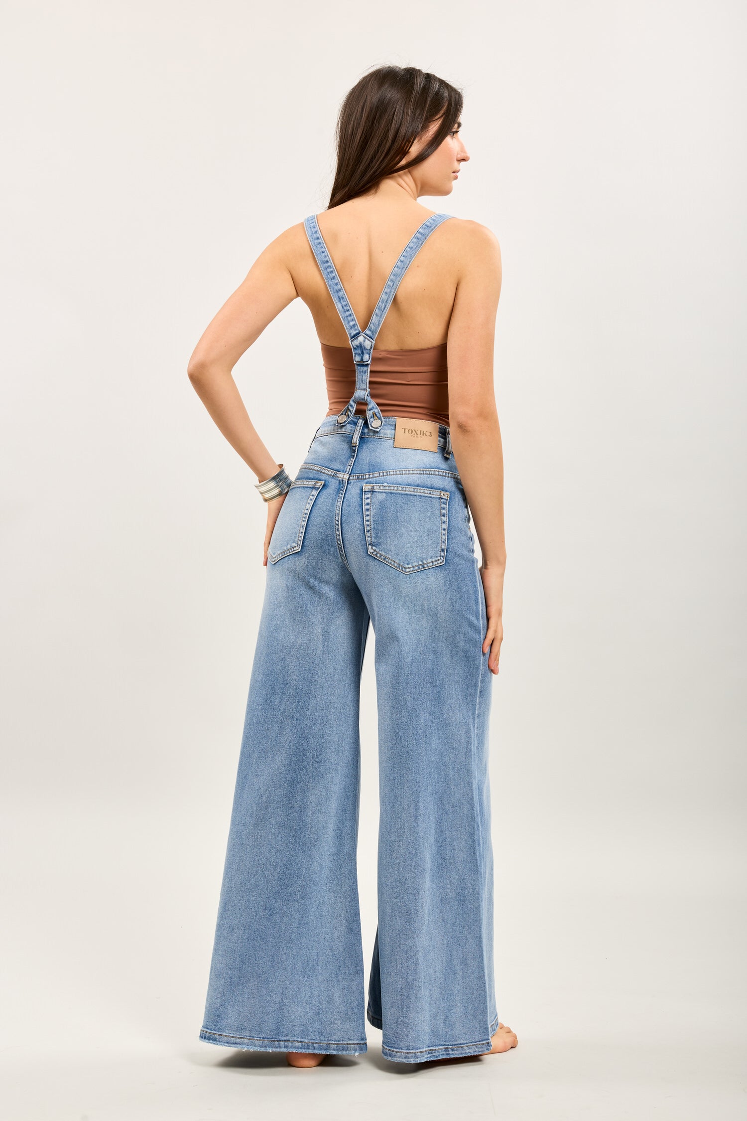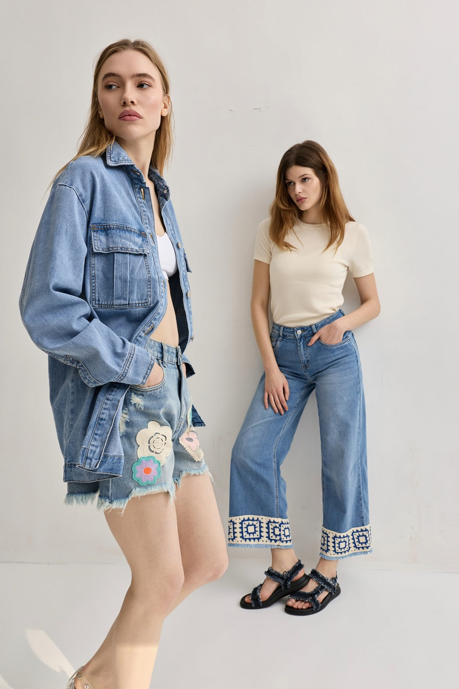 Toxik3 pantalon jean wide détails motifs florales brodées