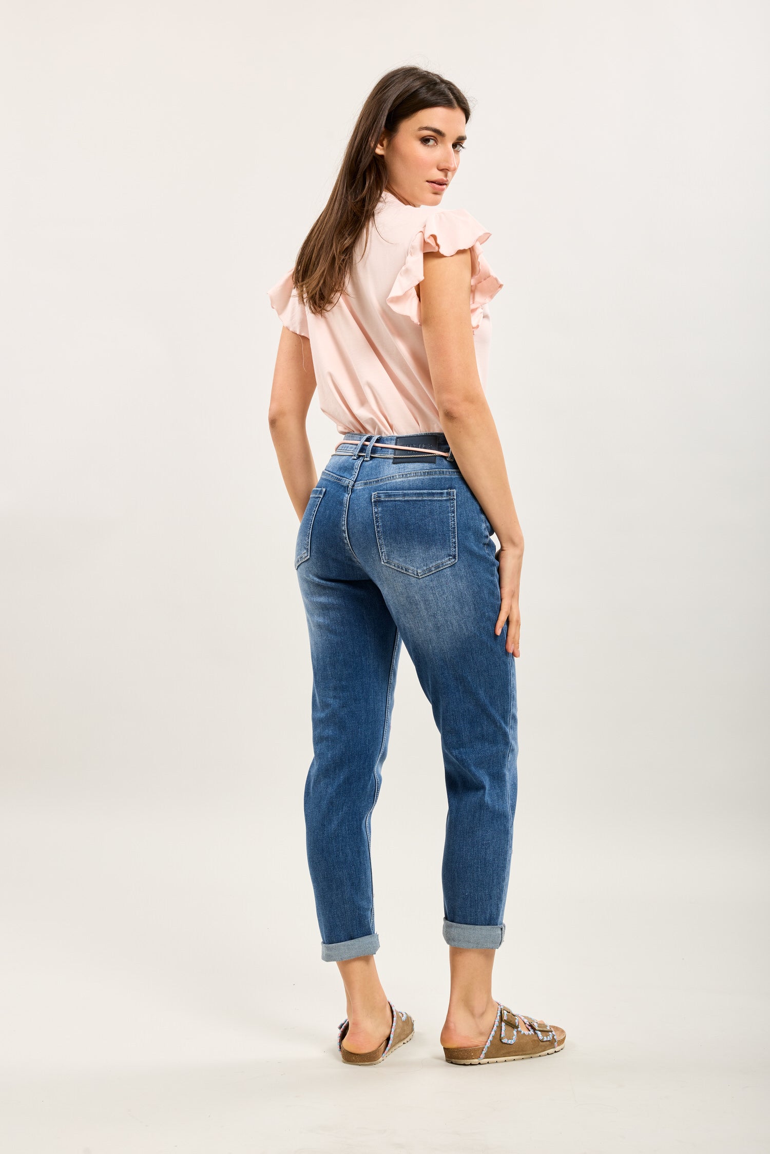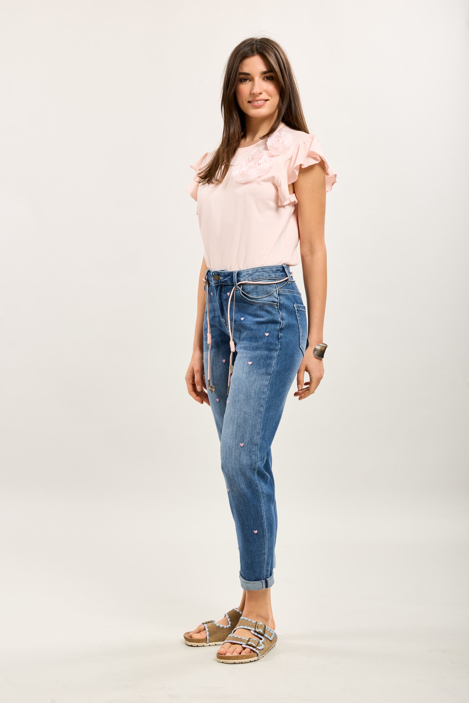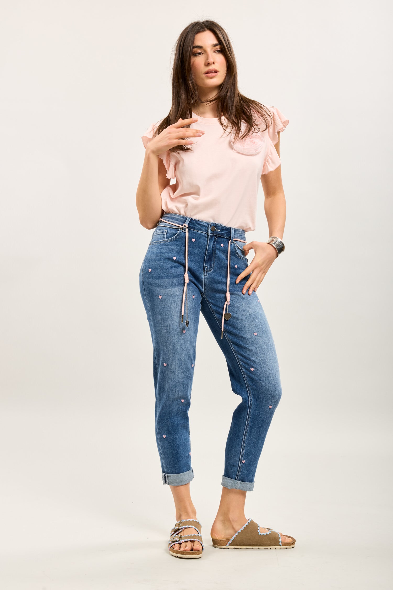 Toxik3 jean boy stretch délavé brodés coeur à revers