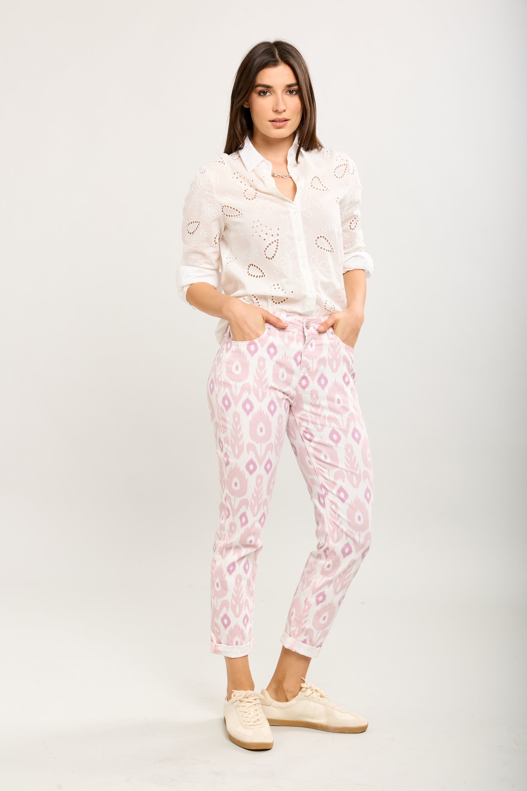 Toxik3 jean droit stretch taille haute motifs vache détails clous