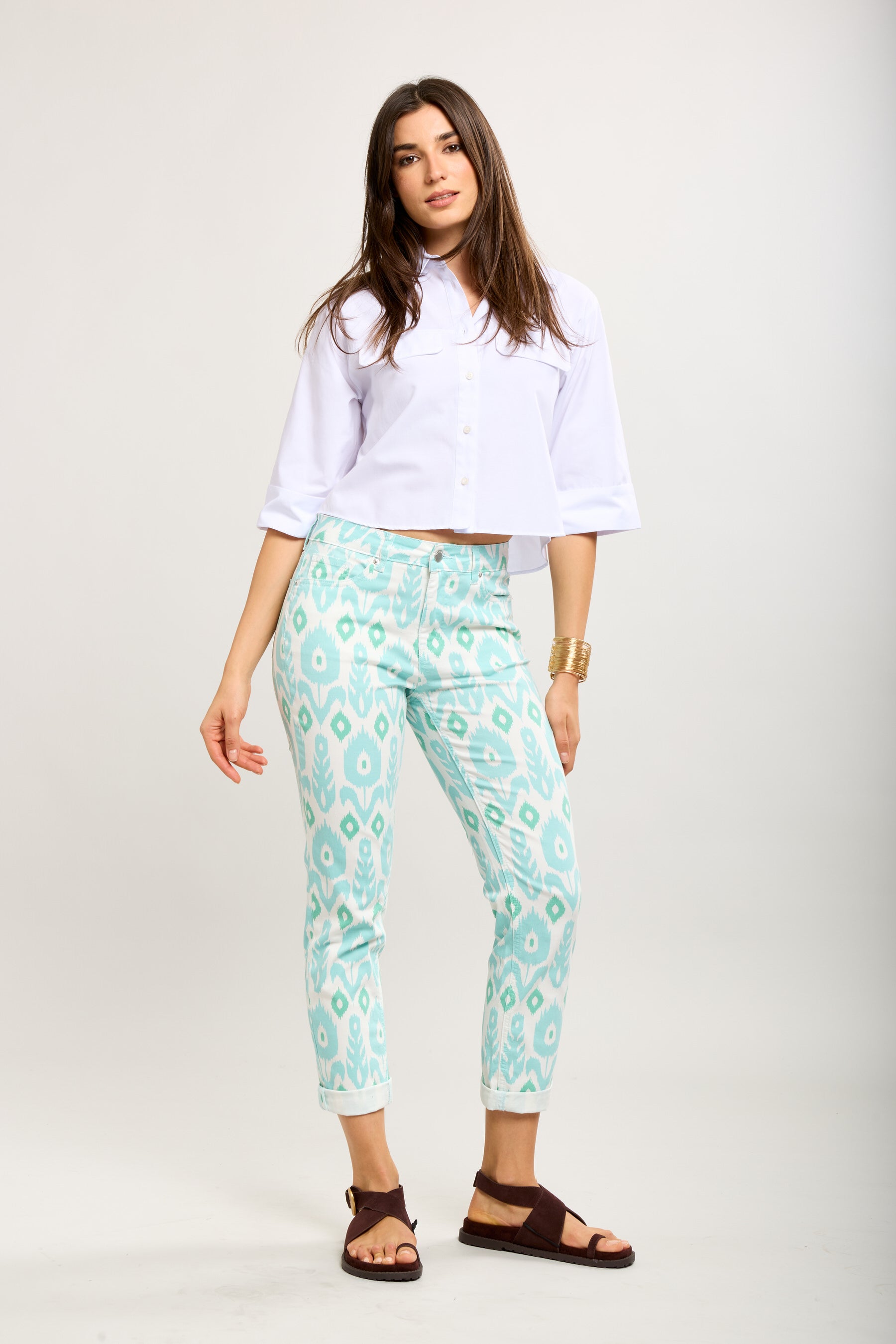 Toxik3 pantalon jean stretch droit tournesols brodées