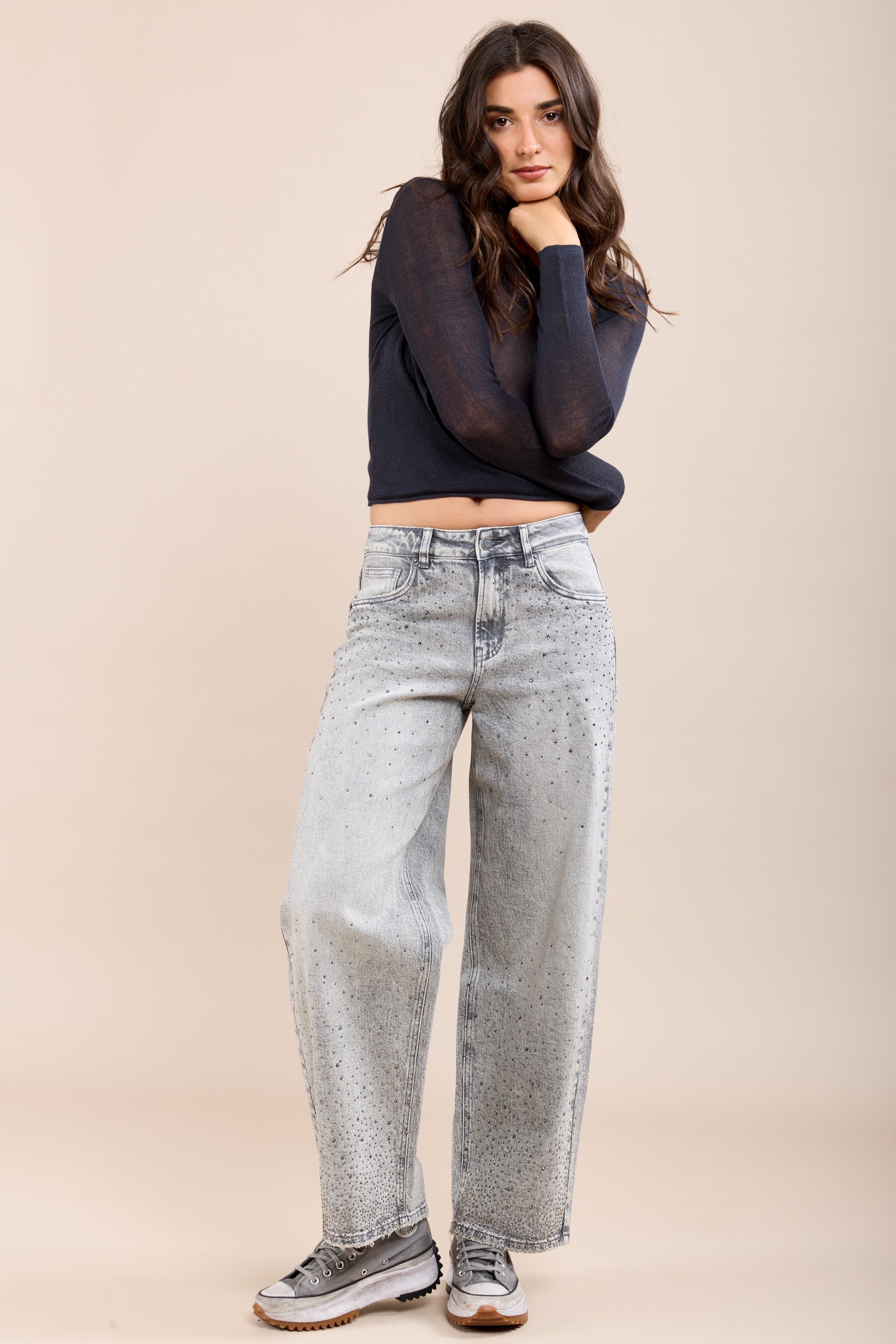 Toxik3 jean ballon à cristaux strass ton sur ton