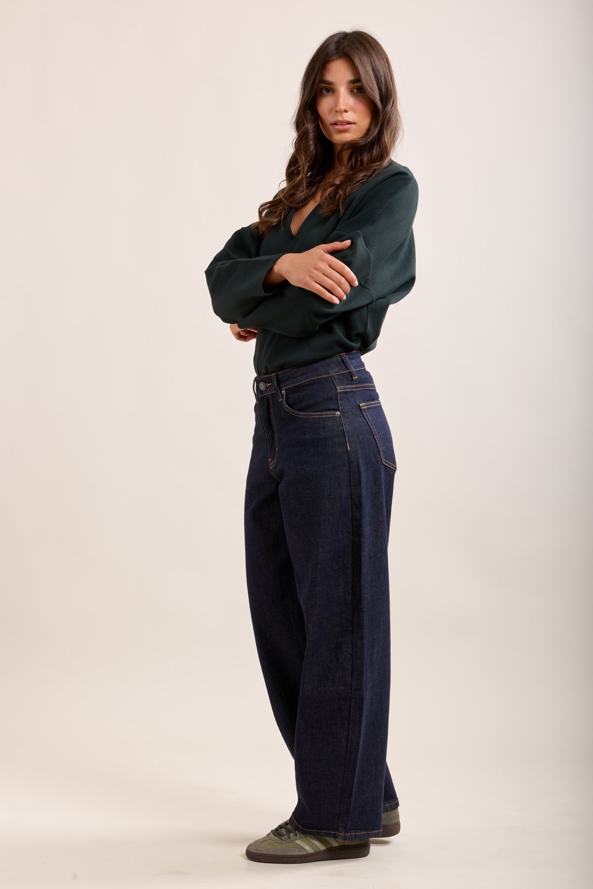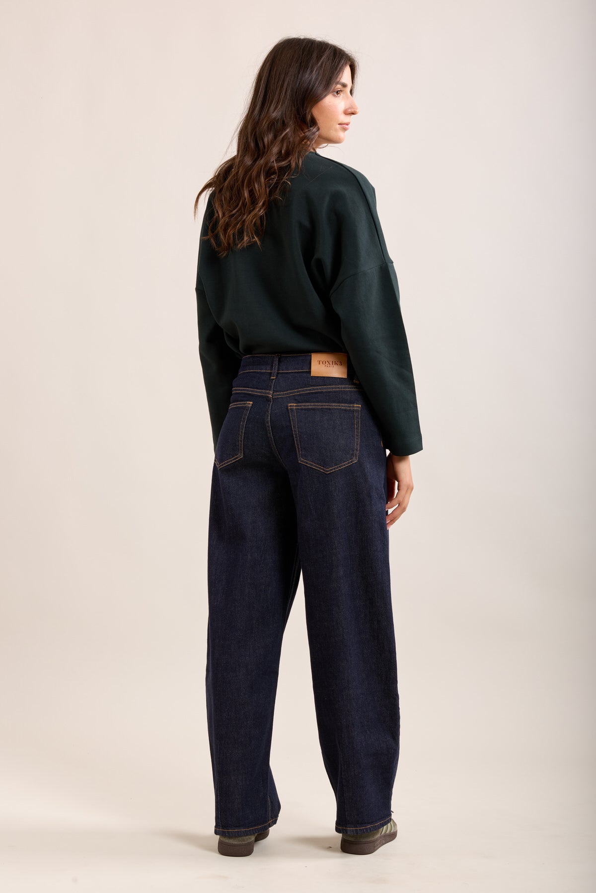 Toxik3 pantalon jean barrel taille haute bleu brut
