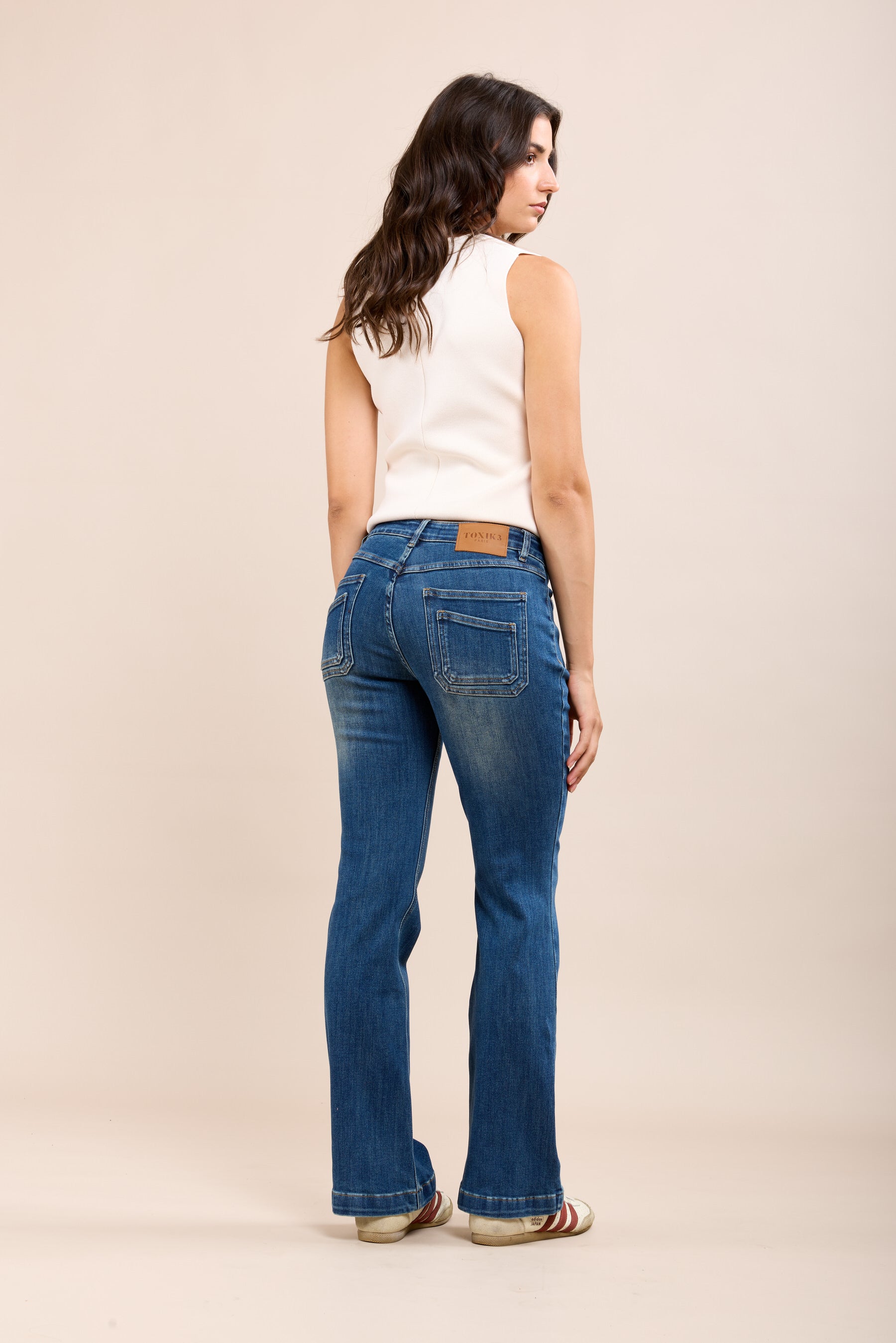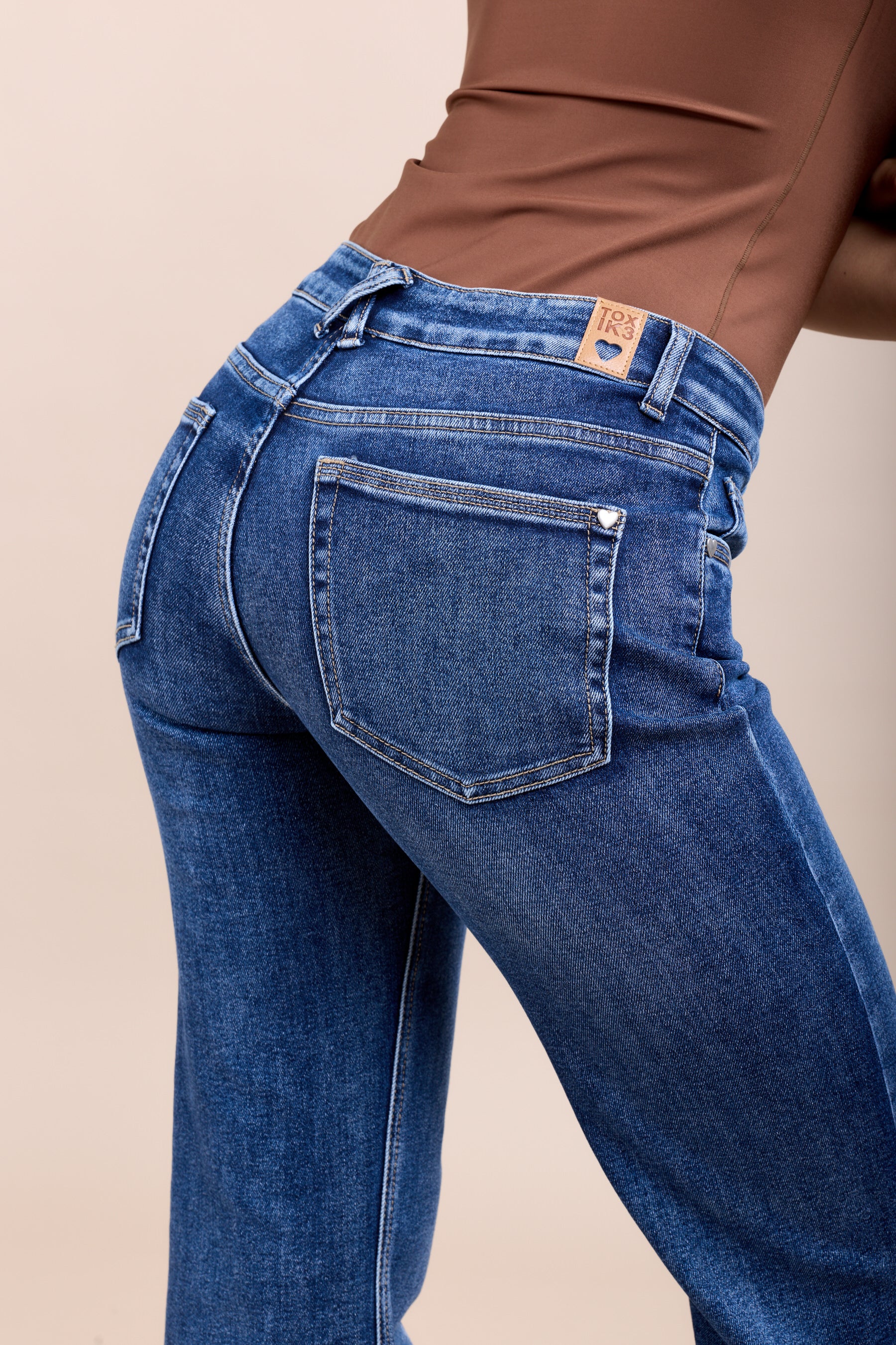 Toxik3 pantalon jean stretch bootcut poches coeur métallique