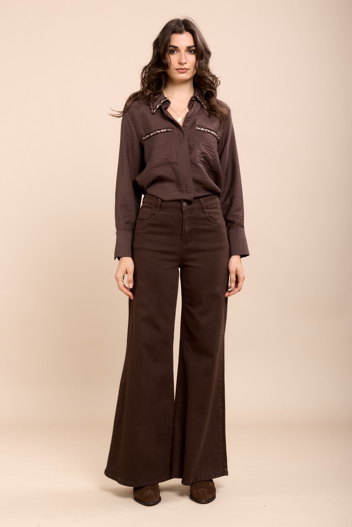 Toxik3 pantalon jean stretch wide détails rubans