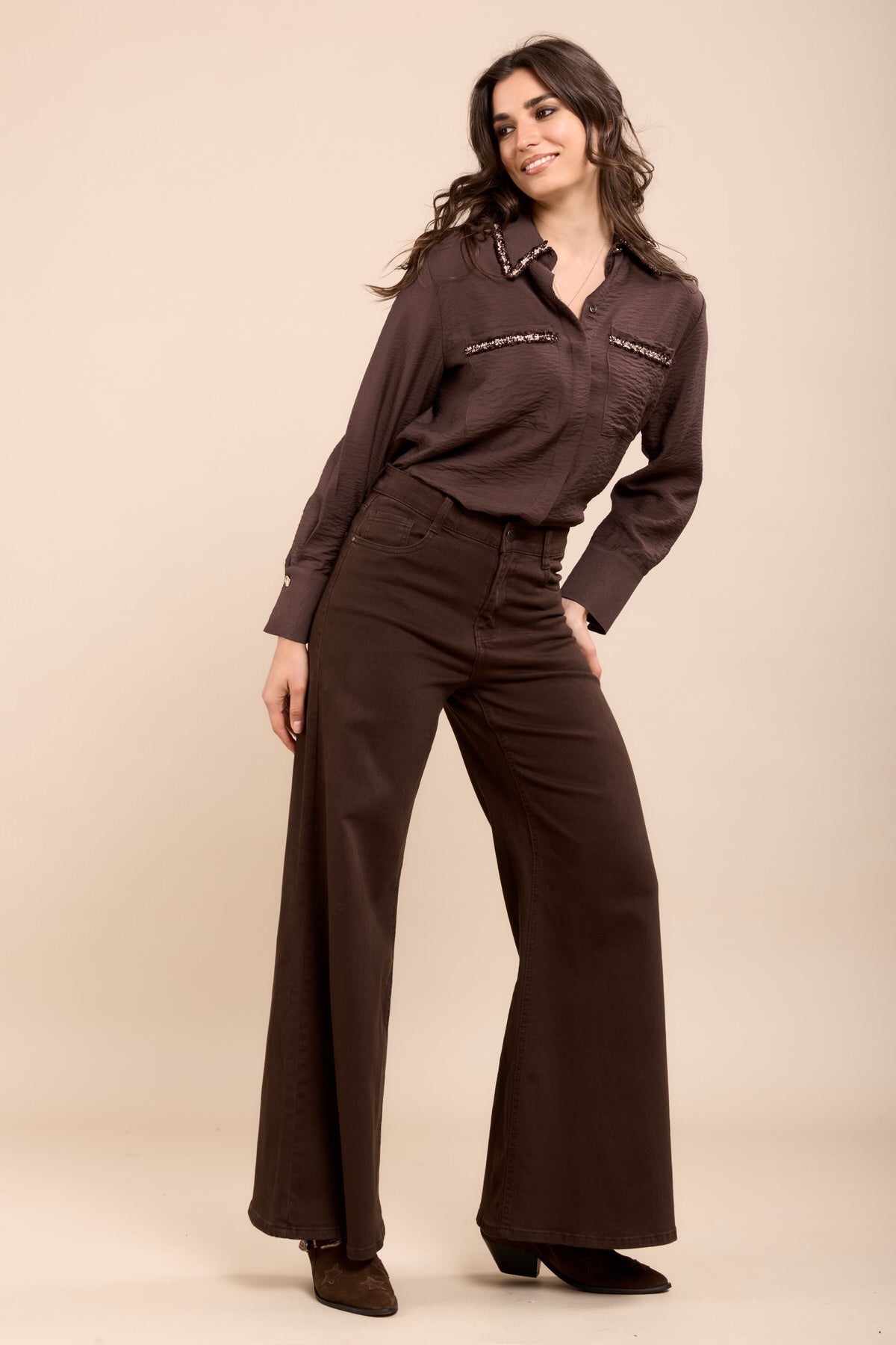 Toxik3 pantalon jean stretch extra wide marron