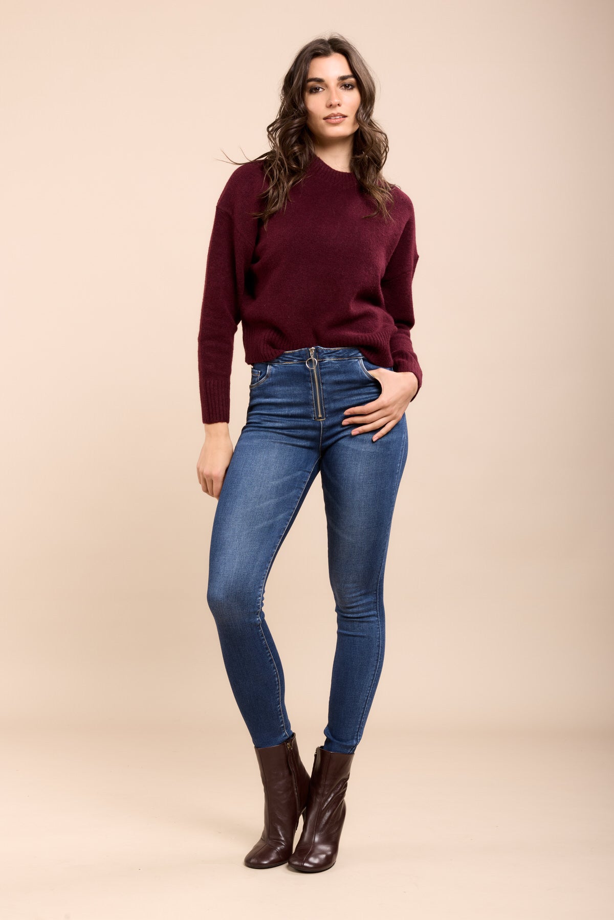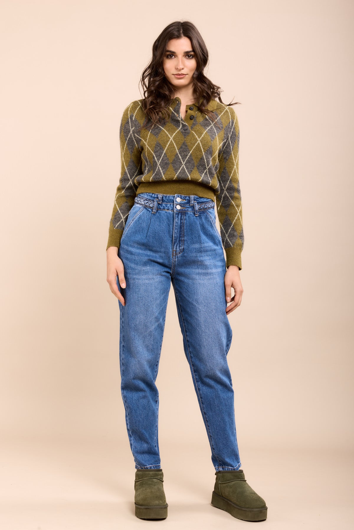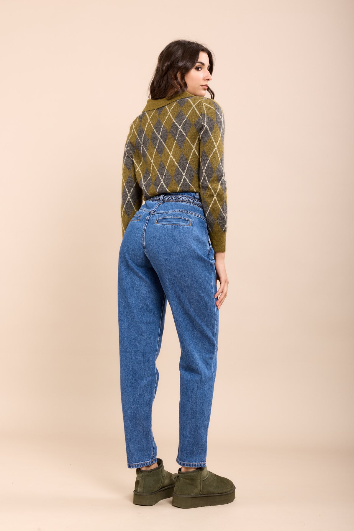 Toxik3 pantalon jean stretch mom tressé poches passepoilées