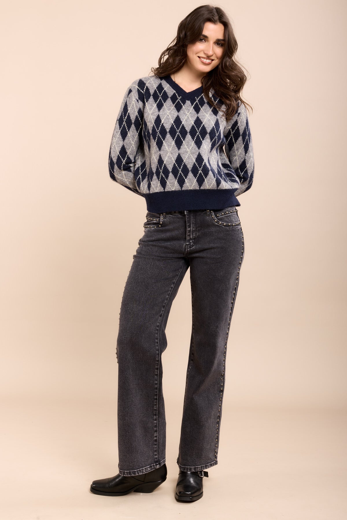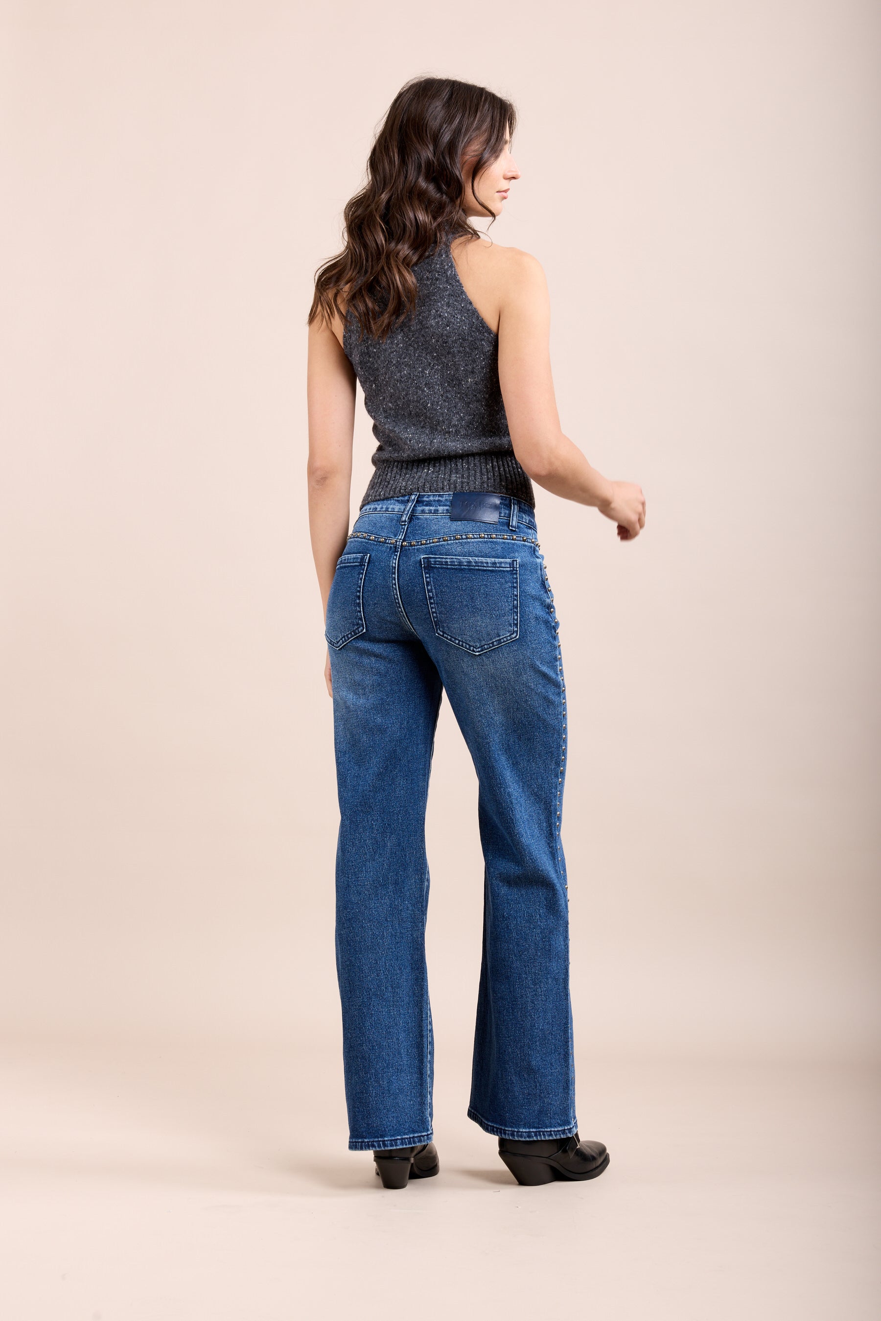Toxik3 pantalon jean stretch droit détails clous