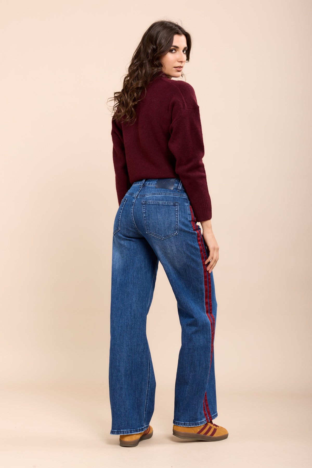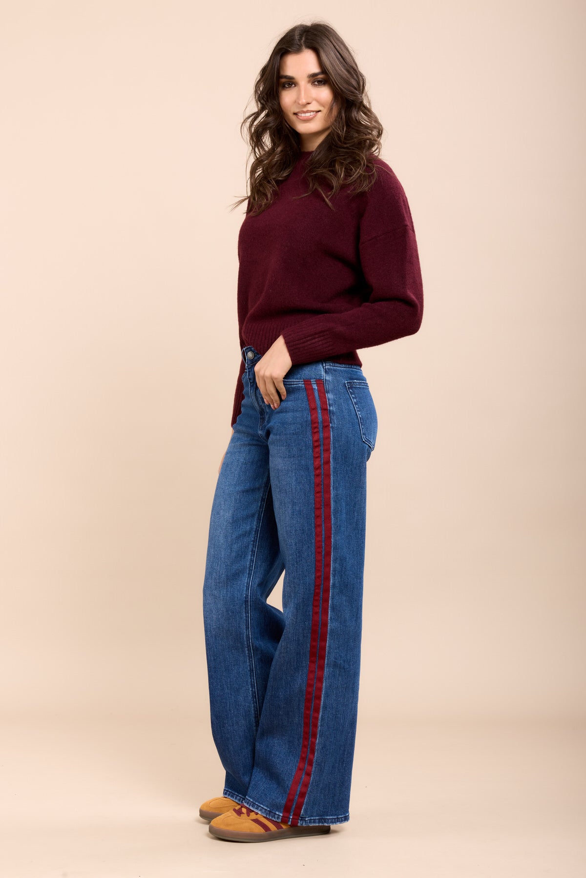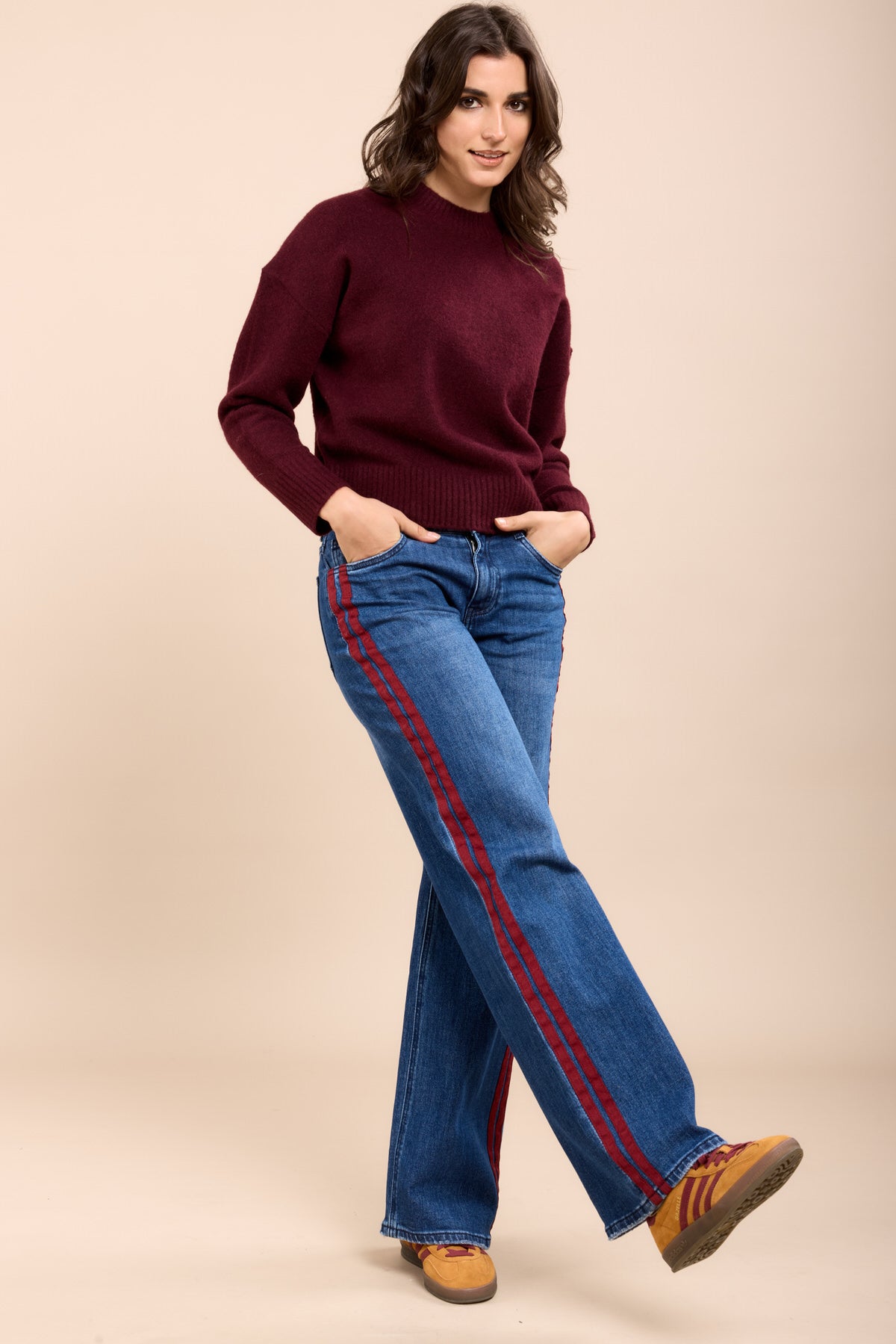 Toxik3 pantalon jean wide stretch bandes rouge