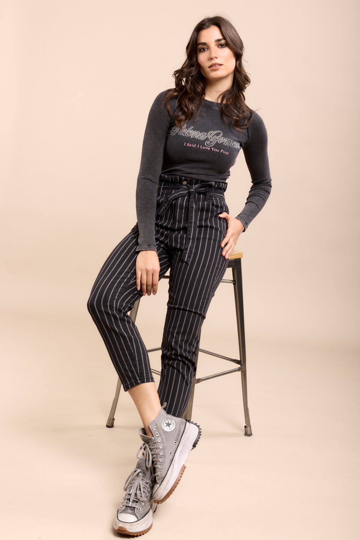 Jean paper bag rayé - Shanna