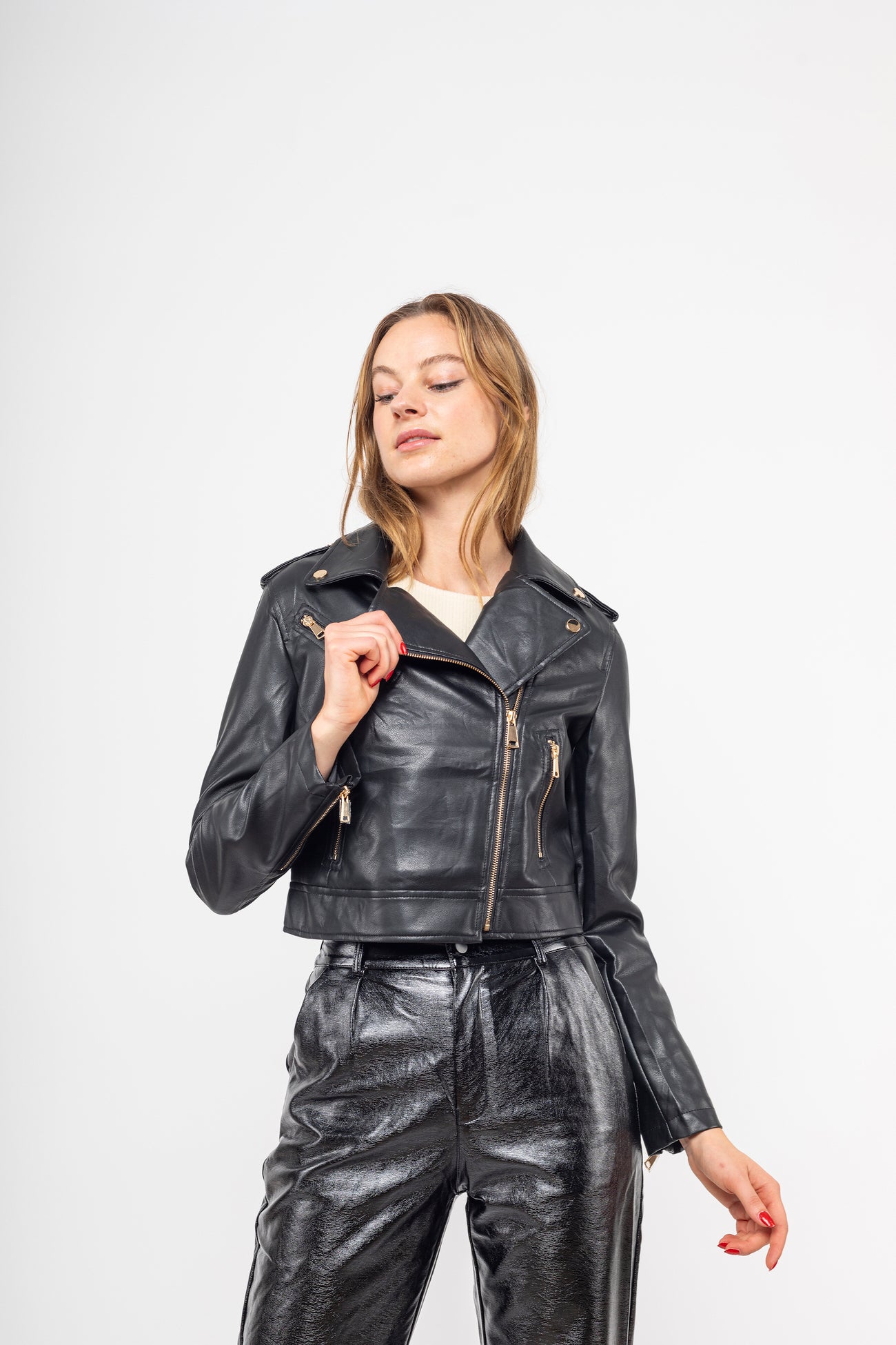 Veste biker crop simili - Bady
