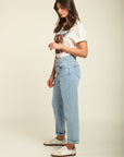 Große trendige Jeans des Jahres mit seiner Schließung auf der ursprünglichen Seite, die locker ist.