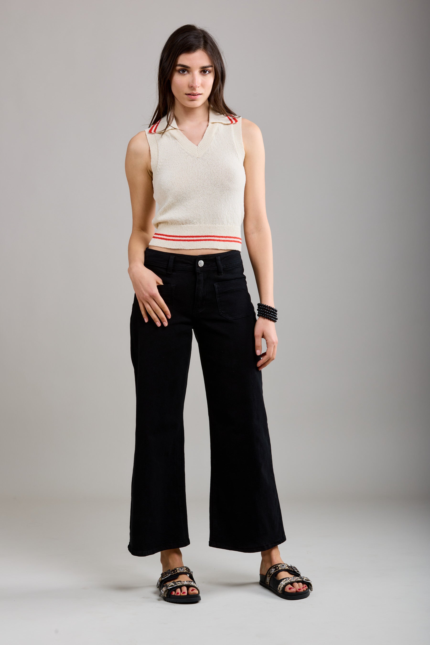 Toxik3 Jean Wide Stretch High waist with double jeans couture shaded pockets