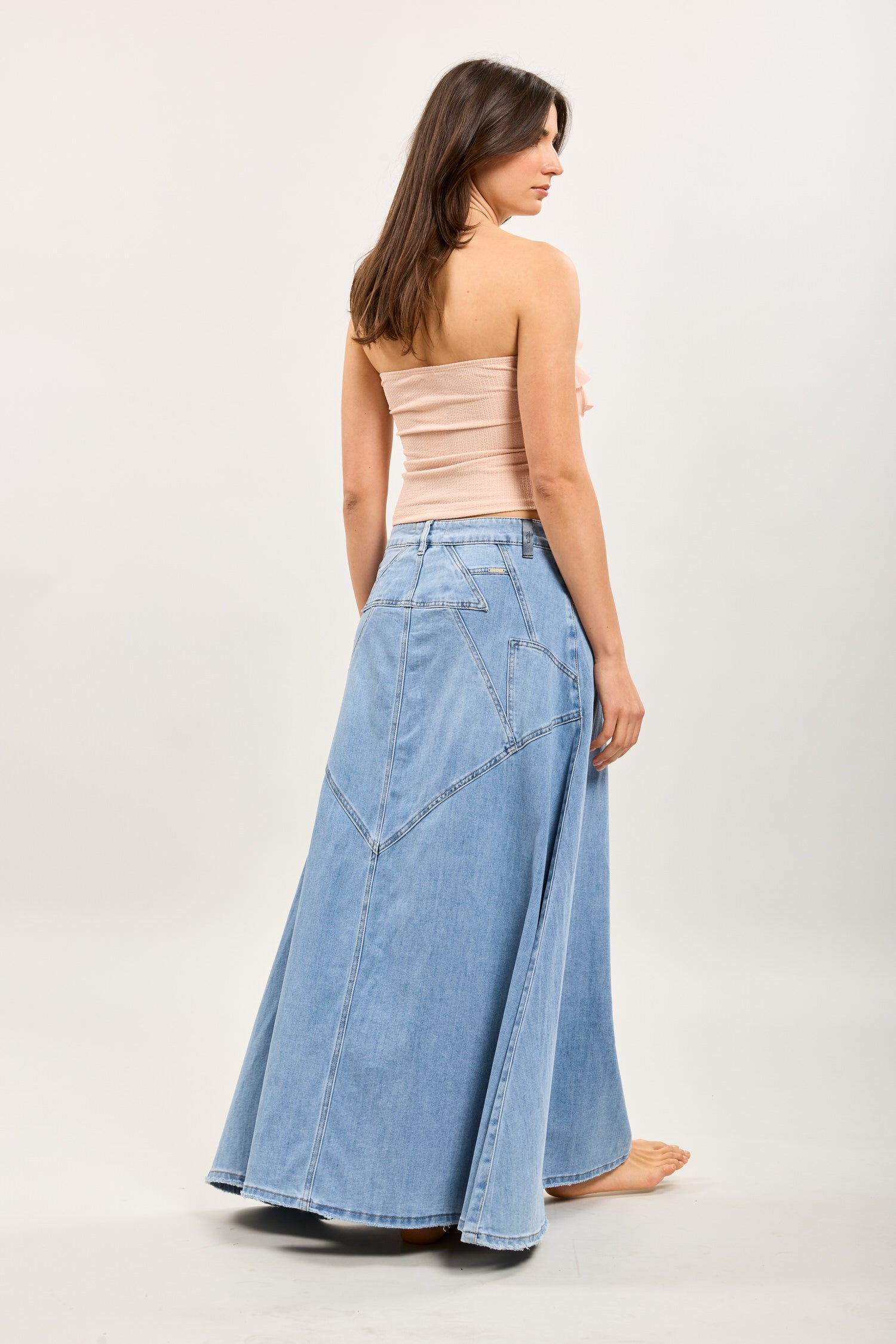 Toxik3 long denim skirt with lightning stitching