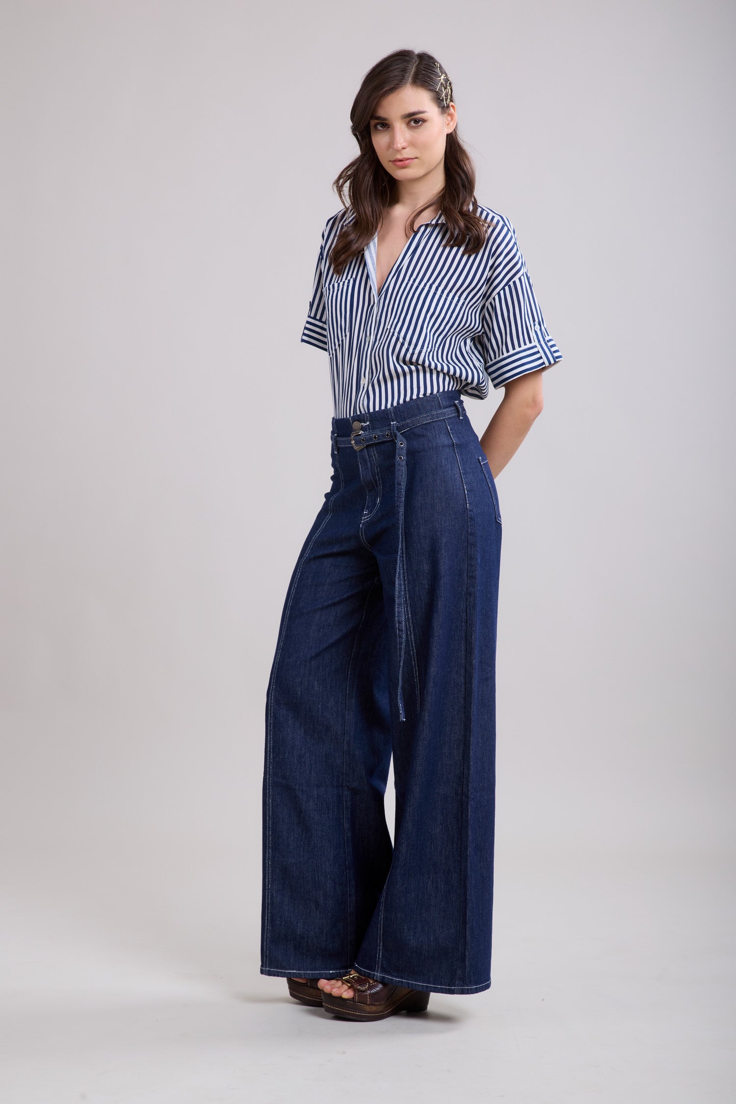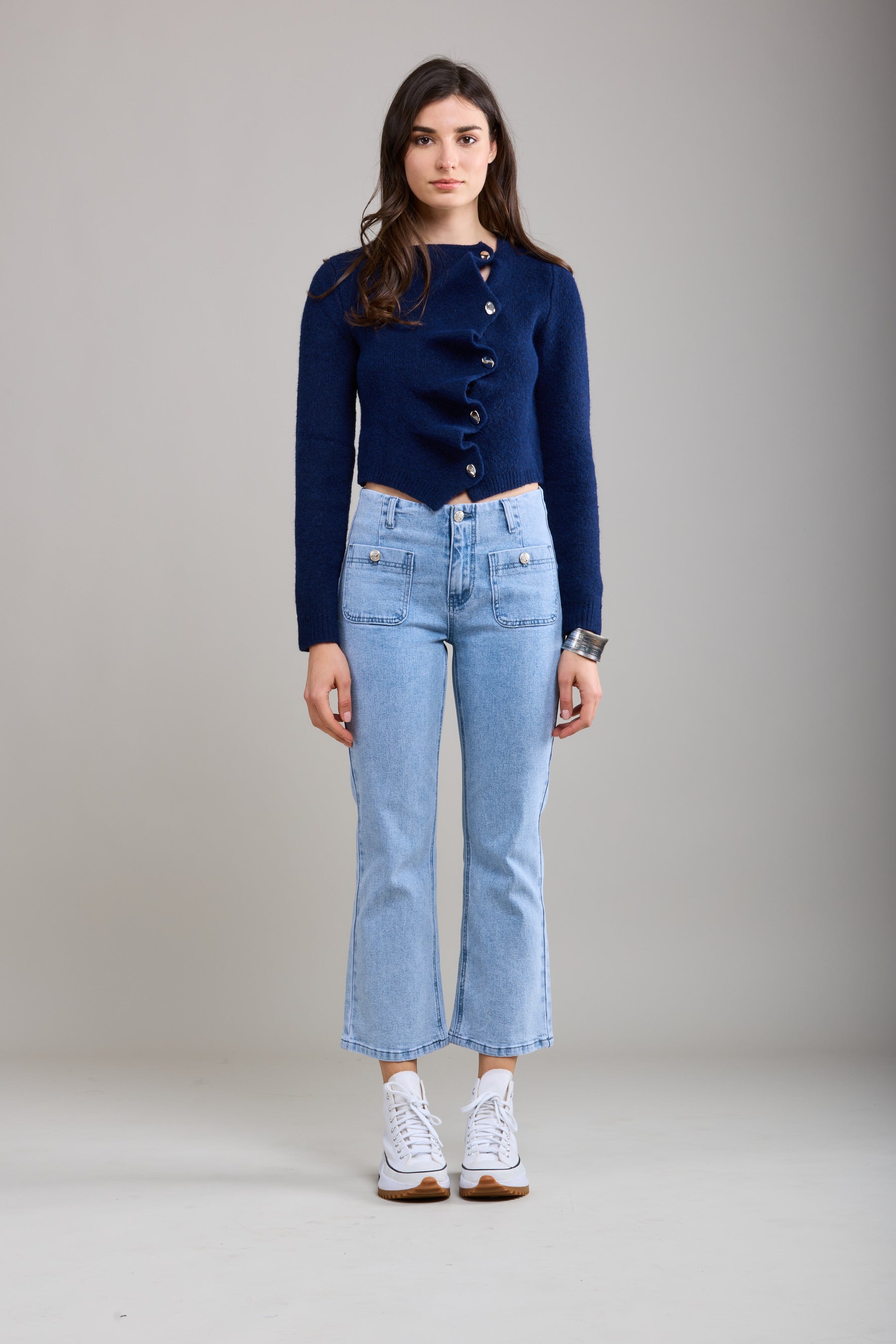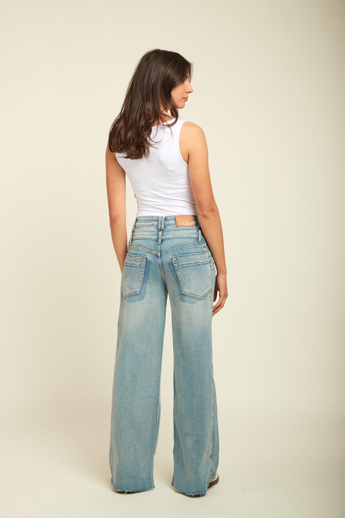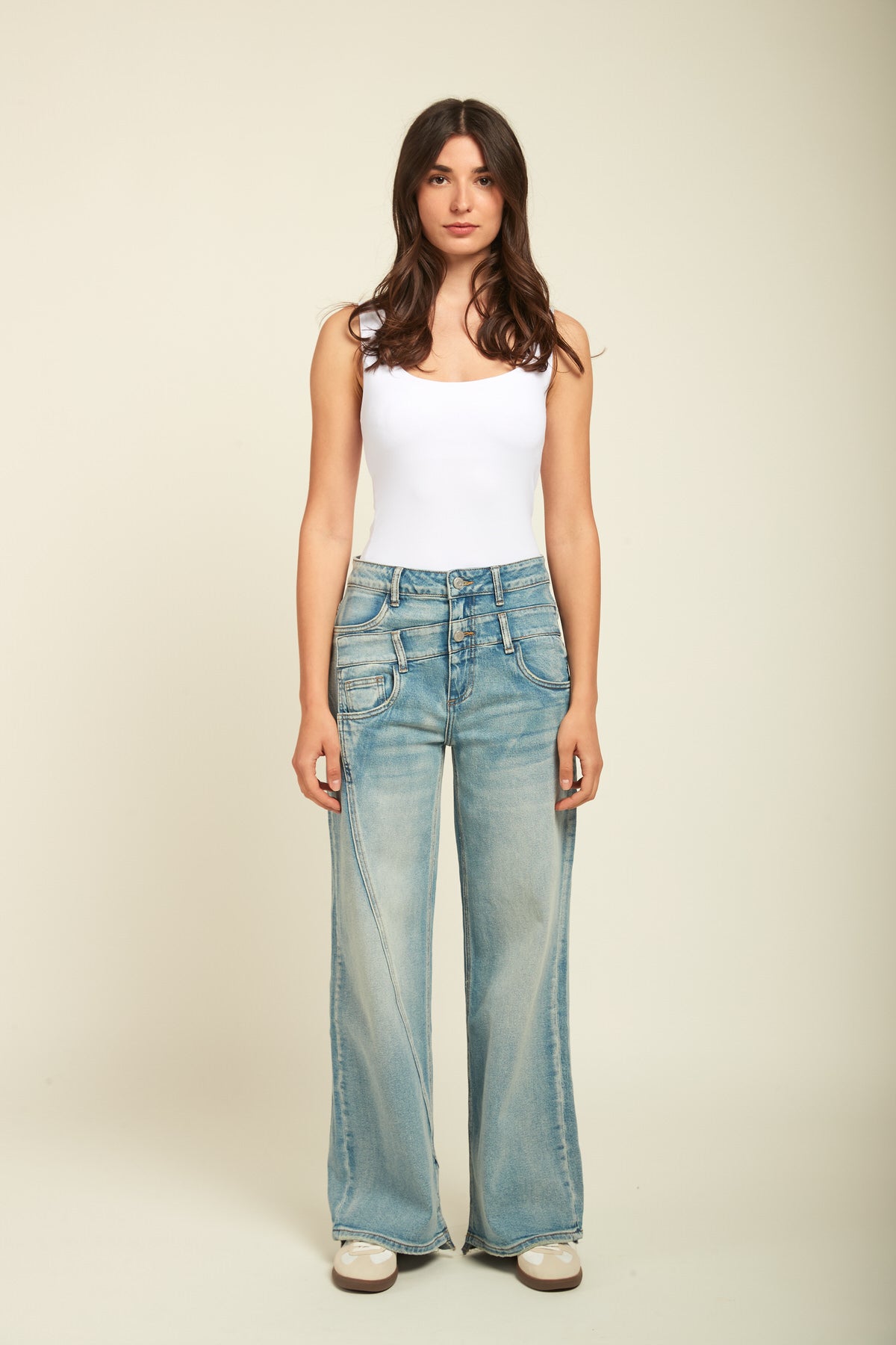 Toxik3 stretch wide jean pants with cutouts and pockets