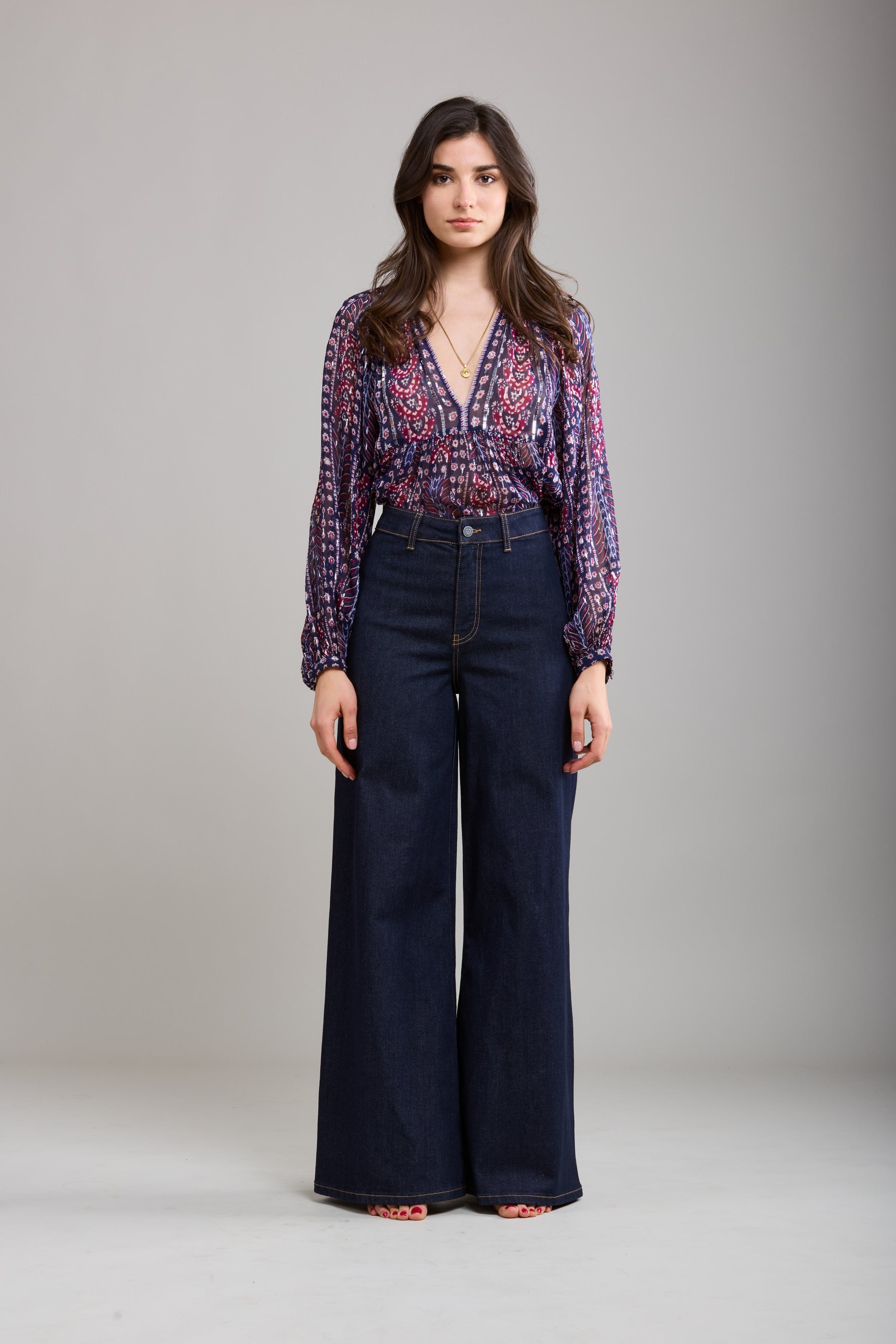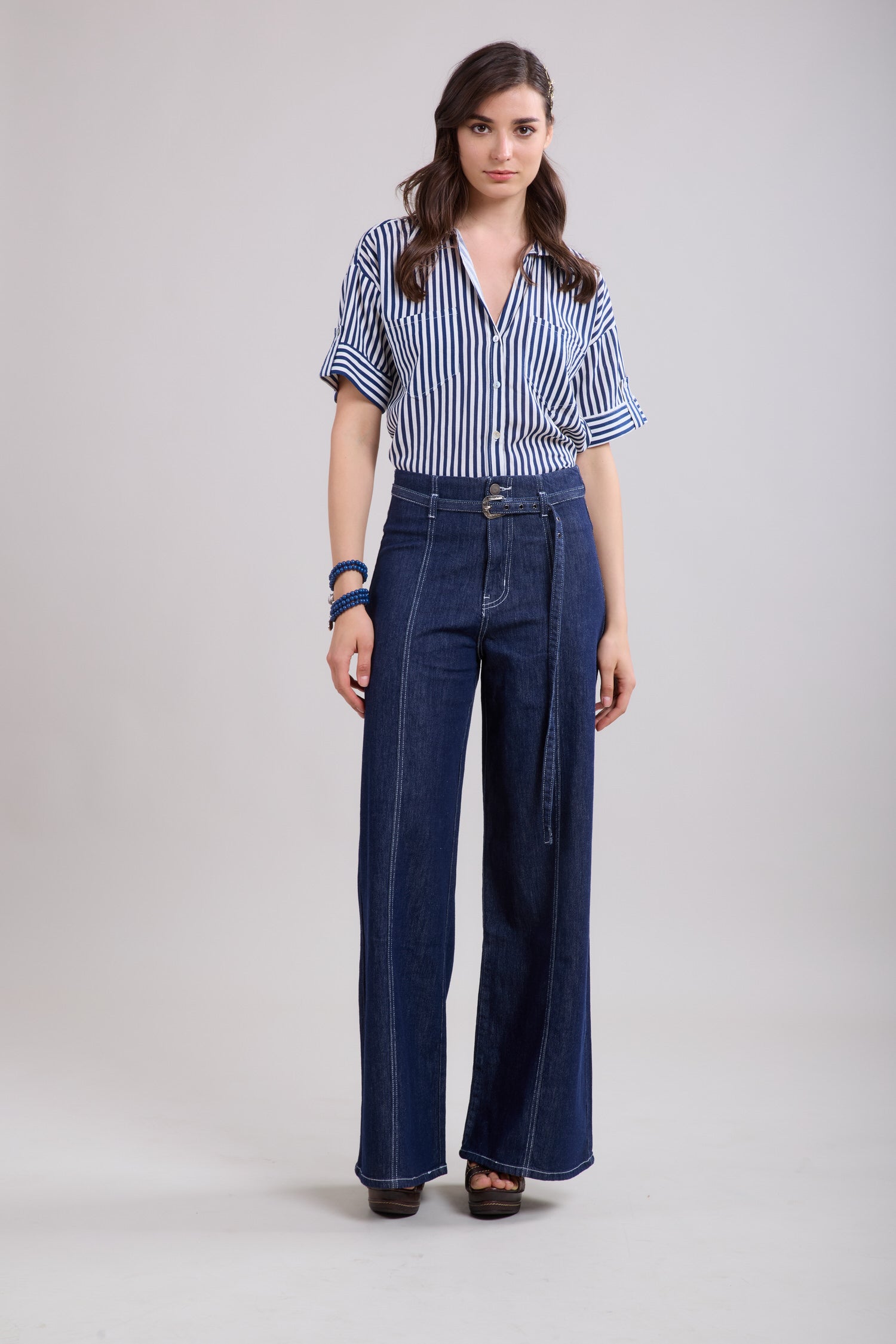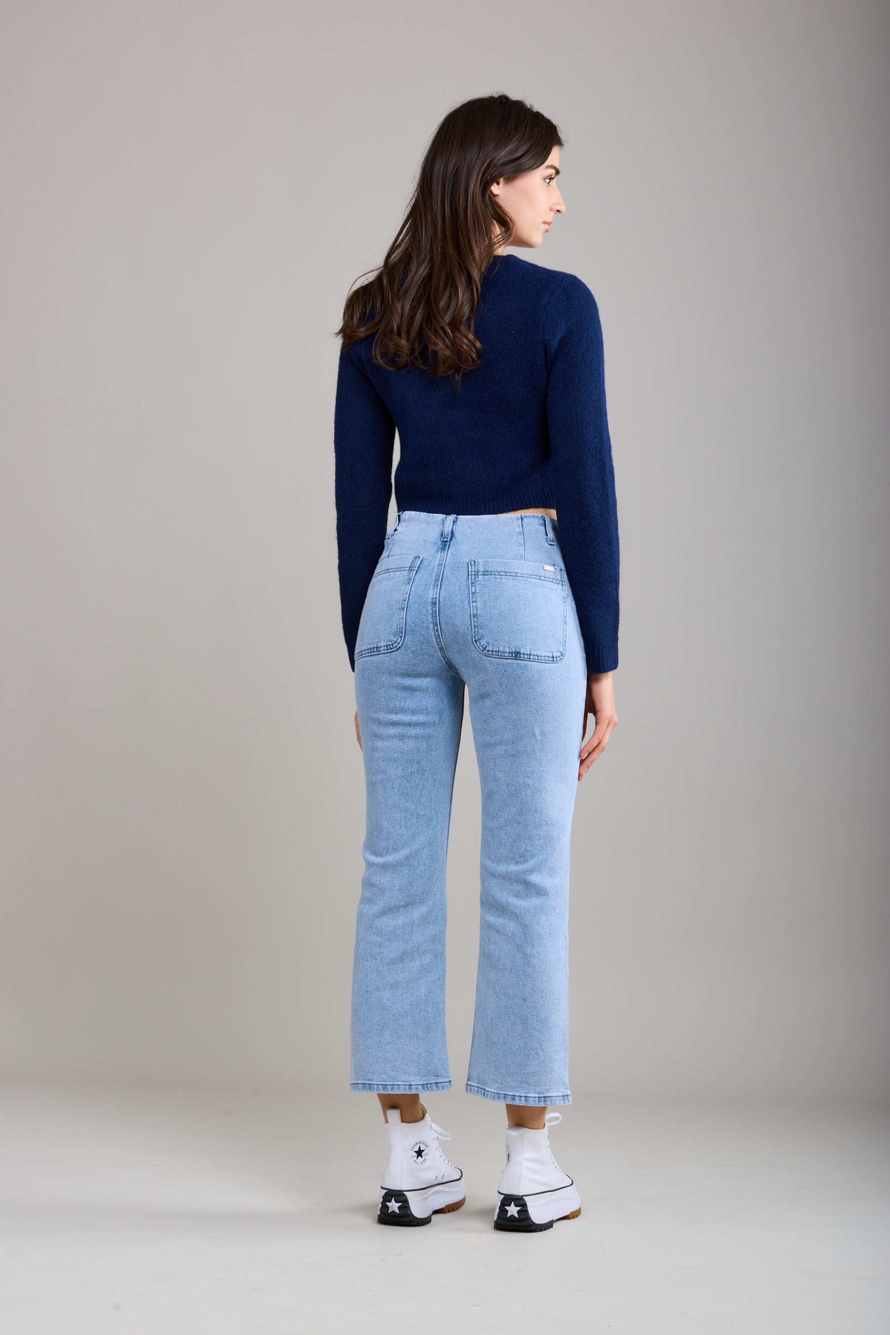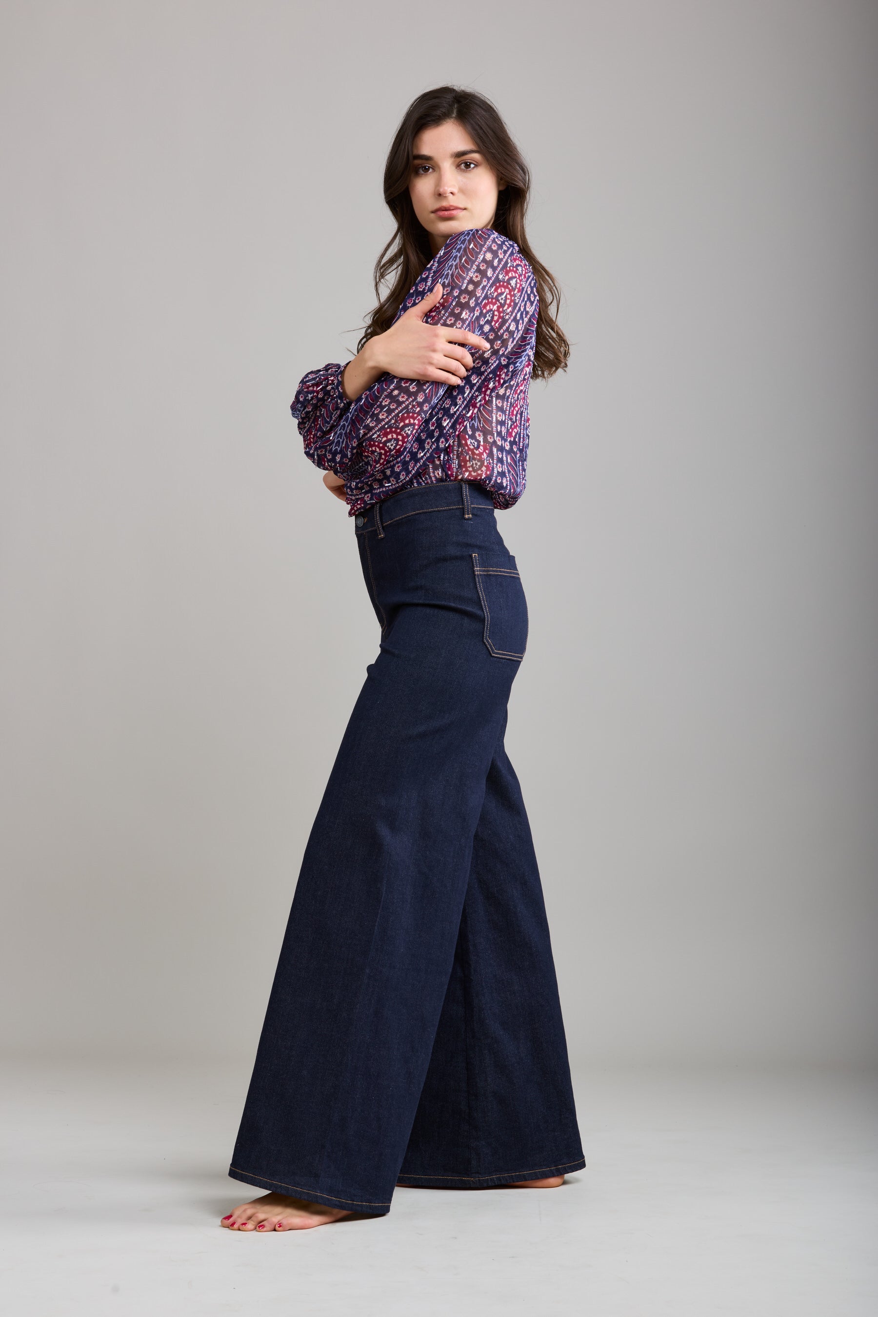 Toxik3 stretch wide jean pants with cutouts and pockets