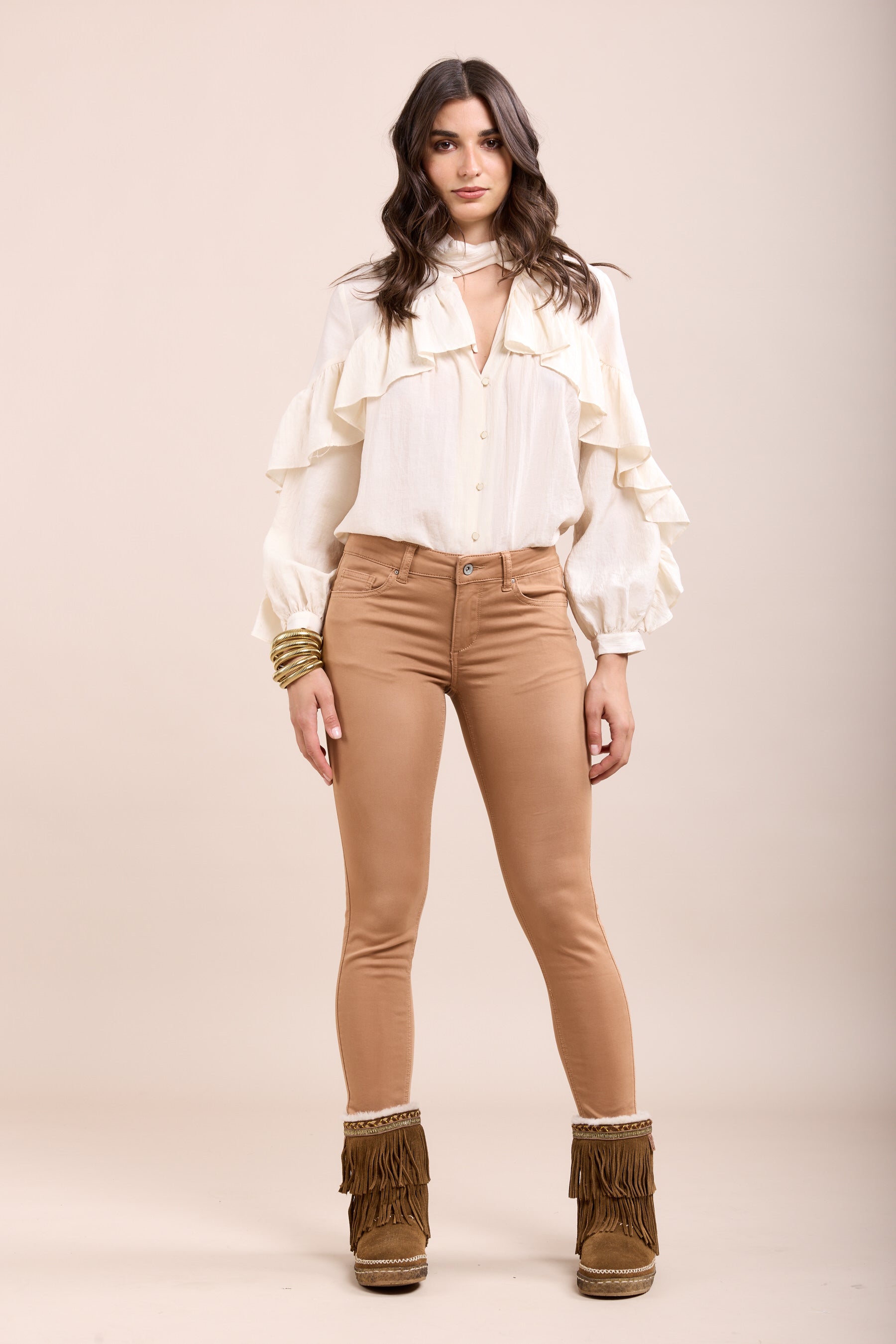 Toxik3 Pantilius Cigarette Pants Camel with a belt