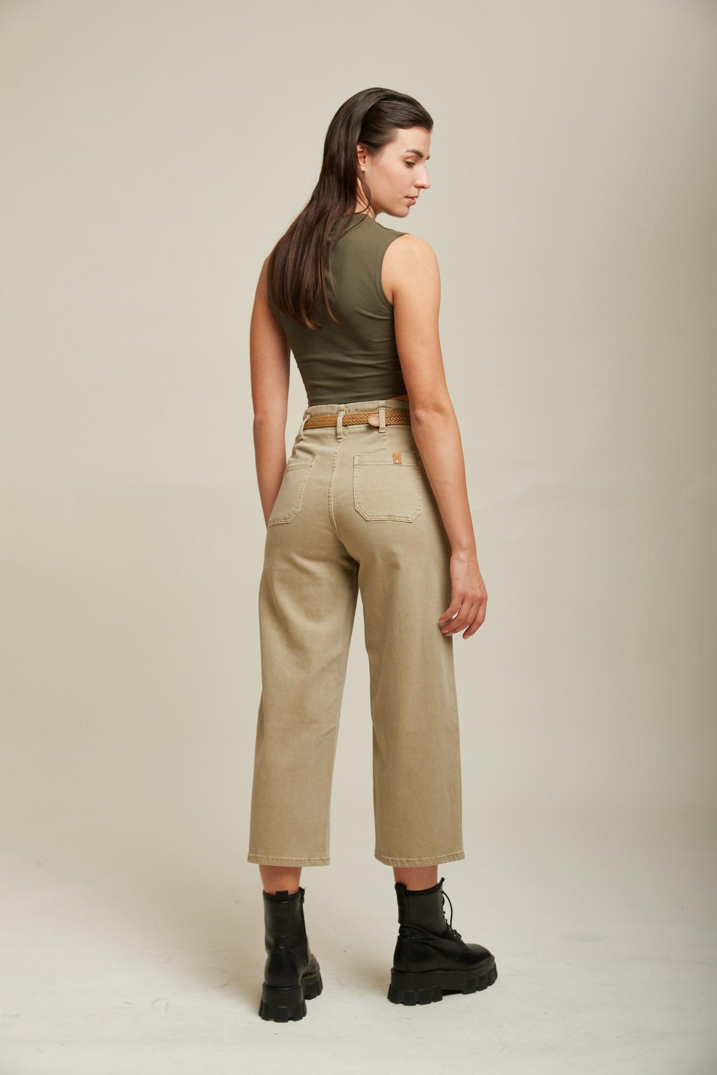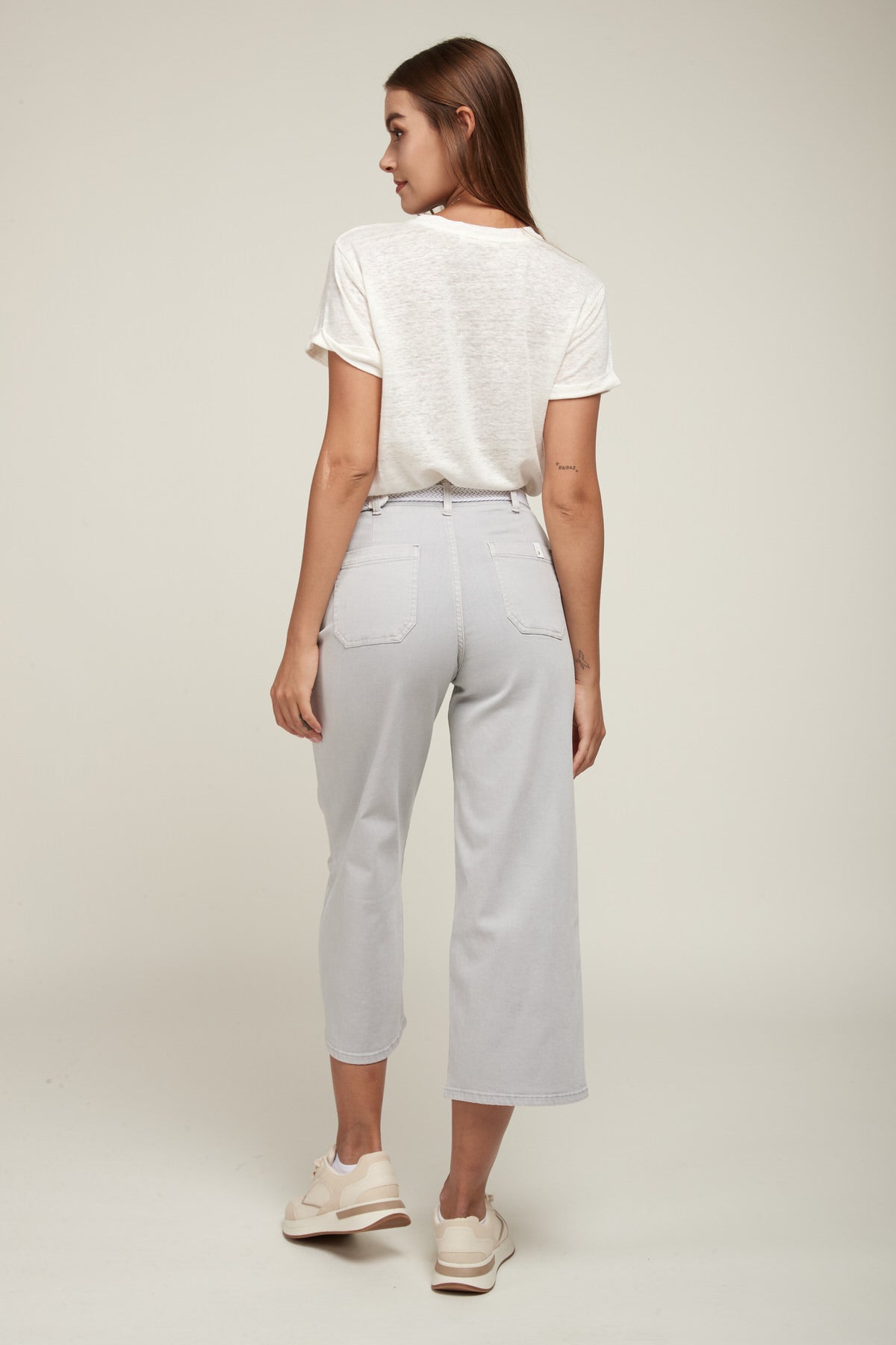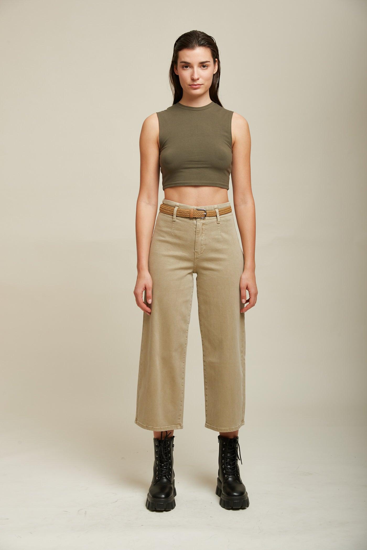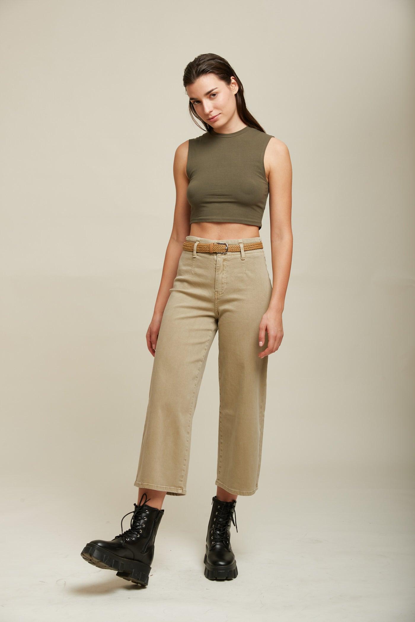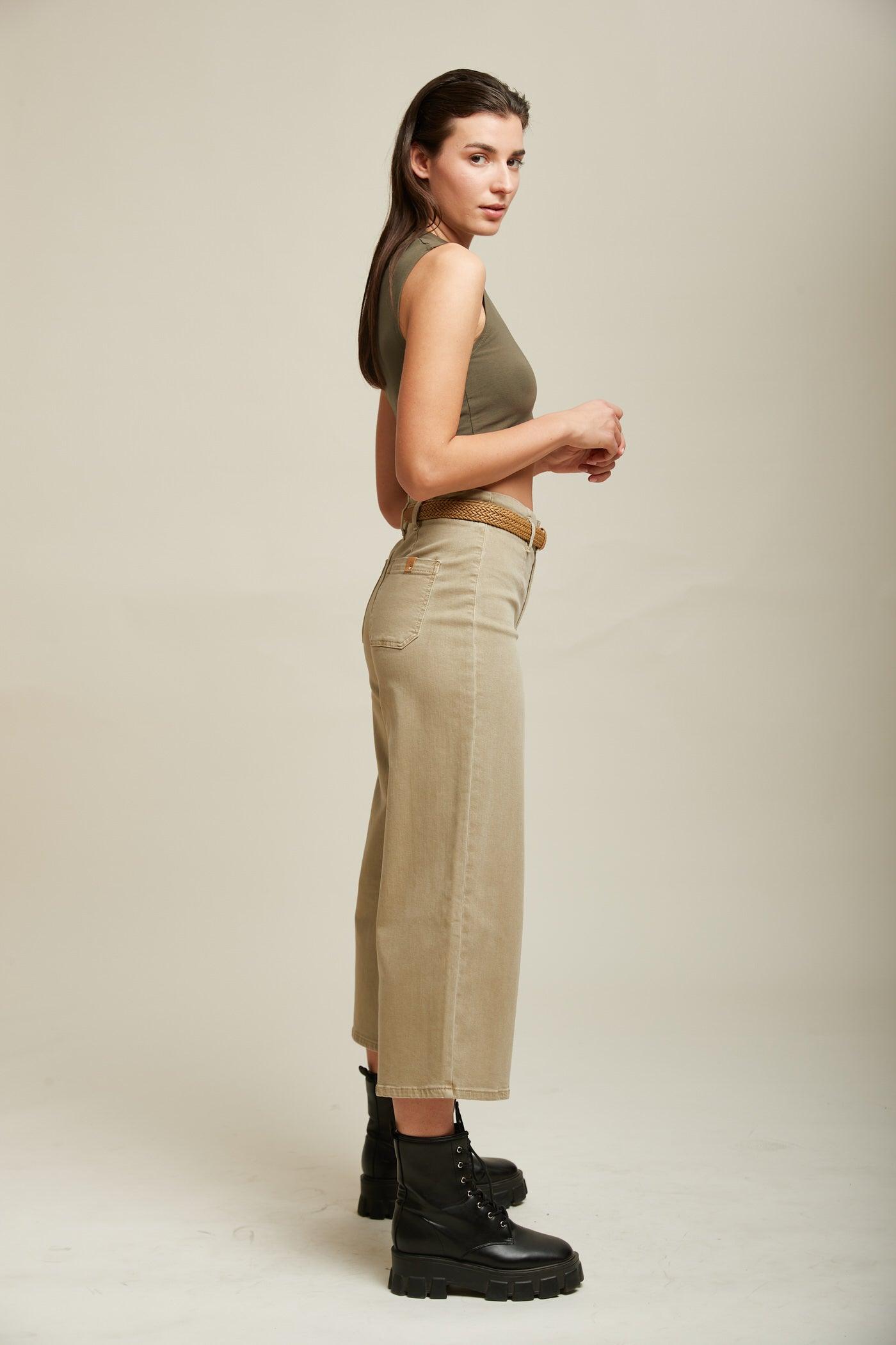 Este longitud de 7/8 jeans ofrece un corte recto grande y un cinturón a juego.