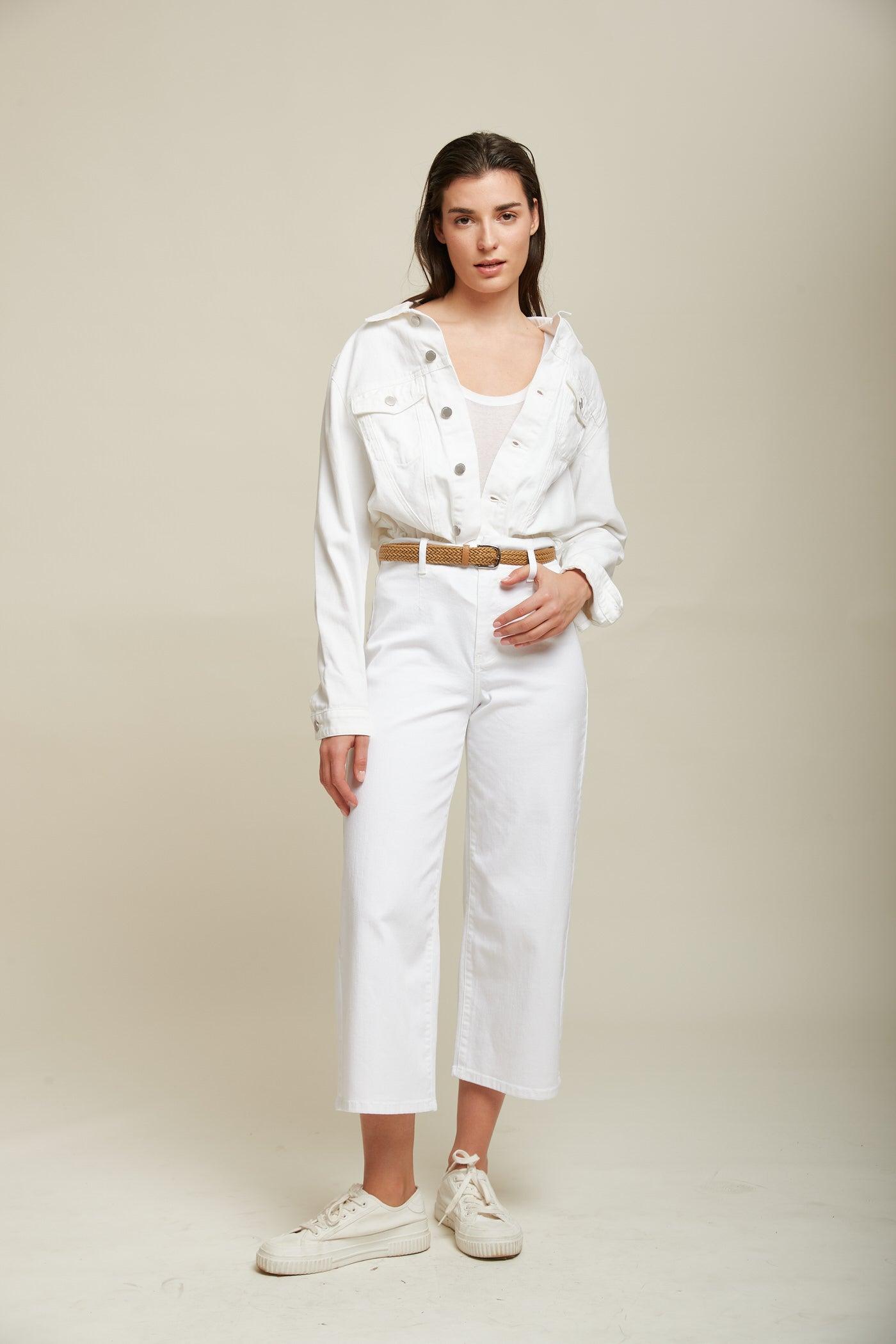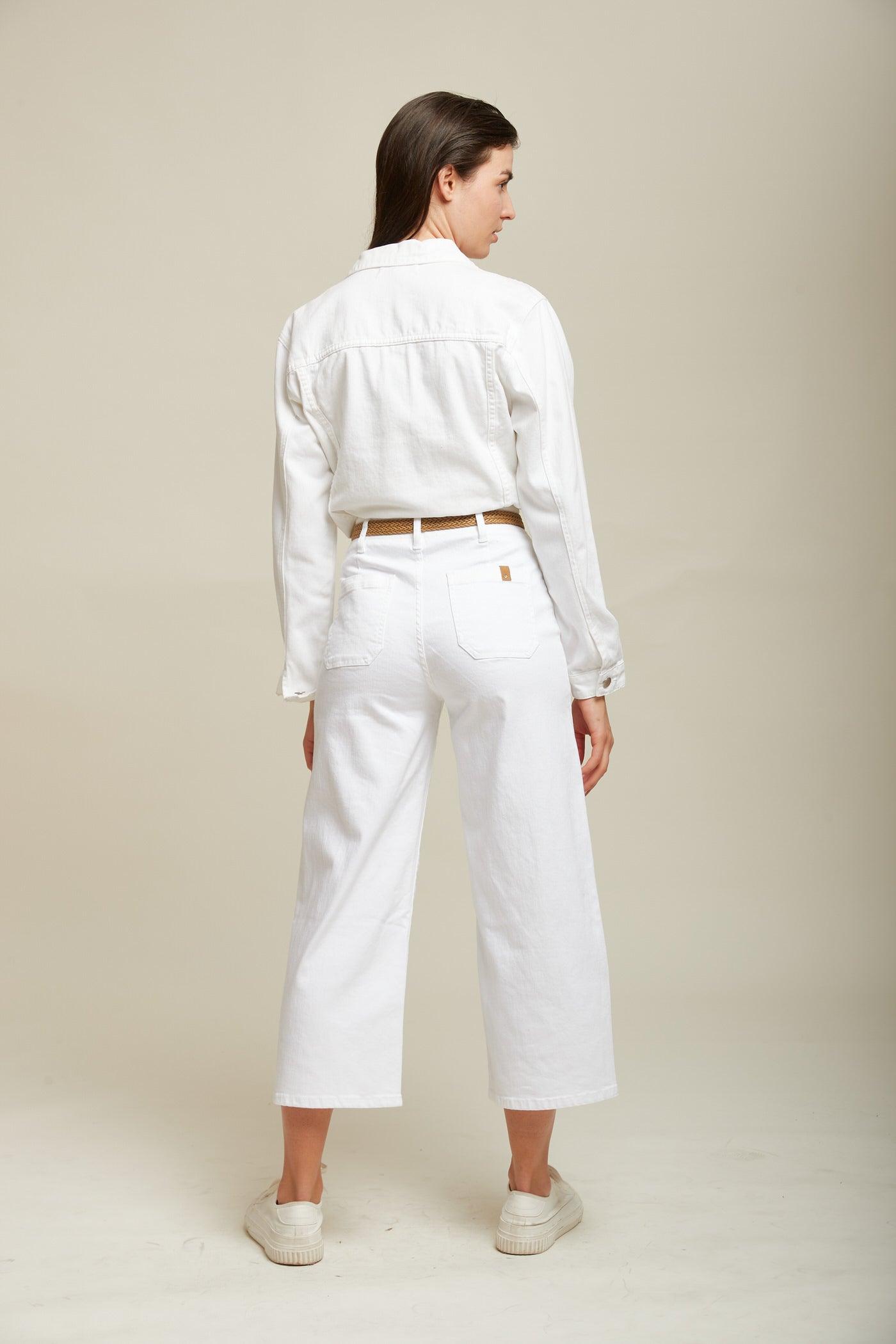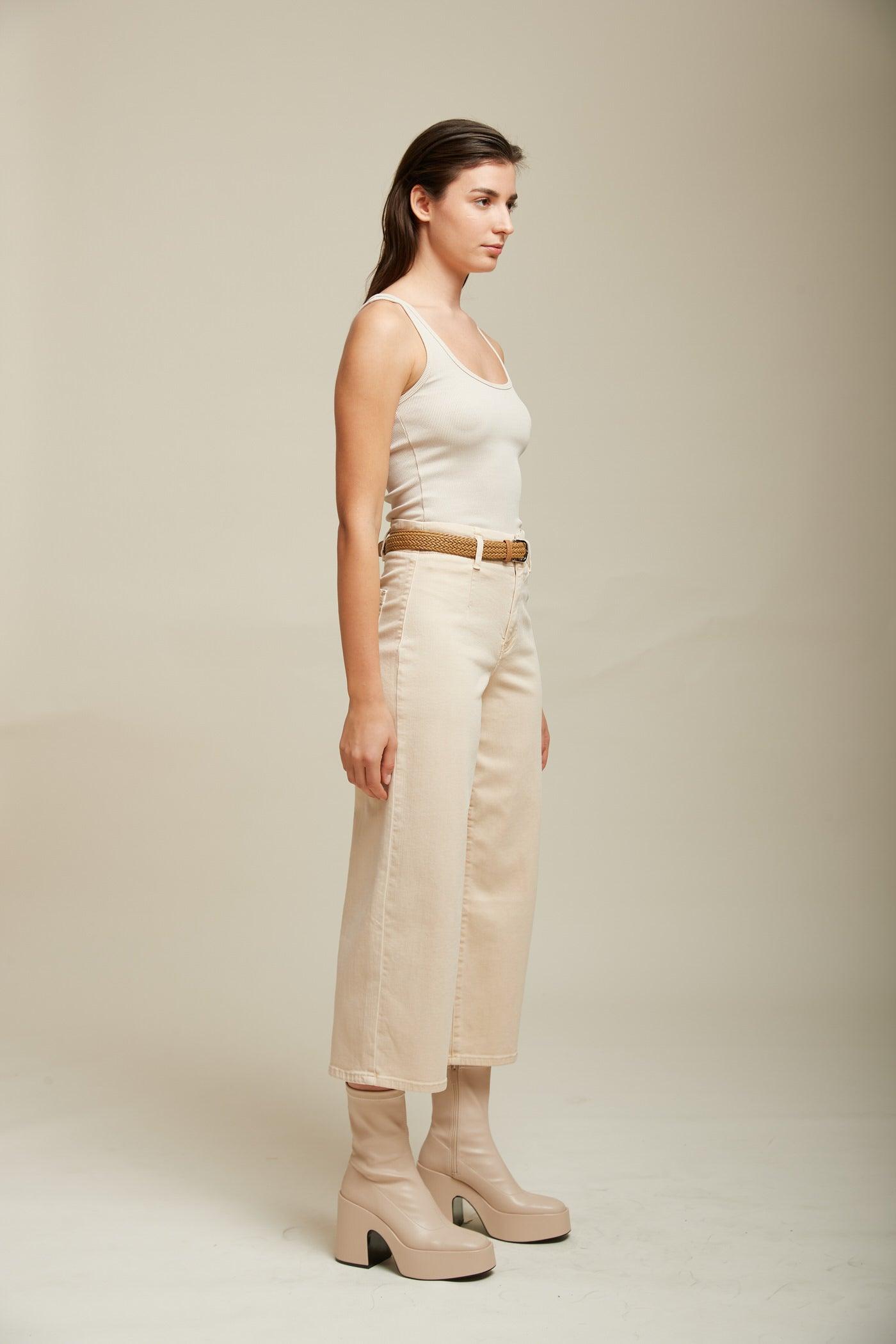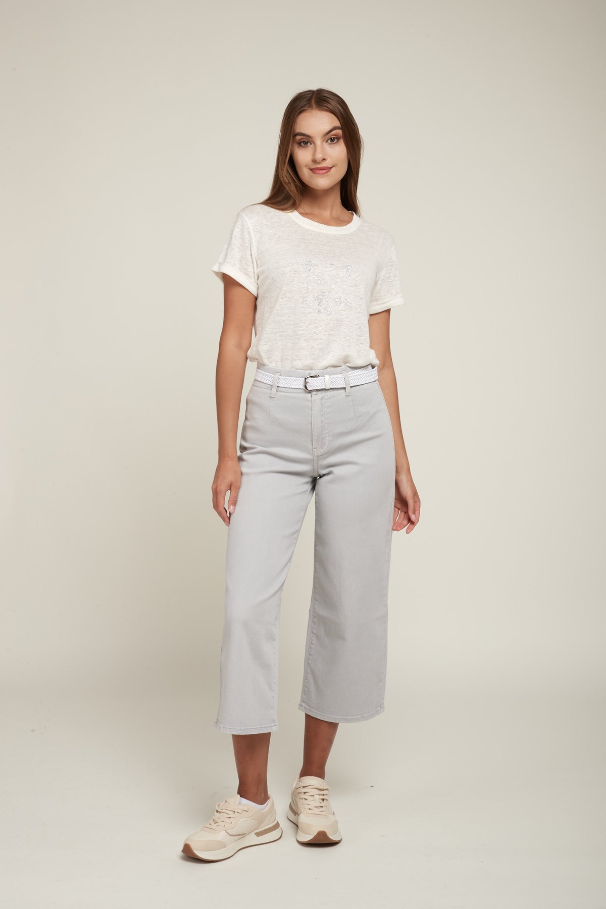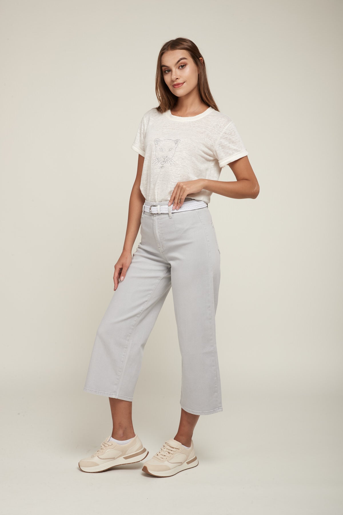 Este longitud de 7/8 jeans ofrece un corte recto grande y un cinturón a juego.
