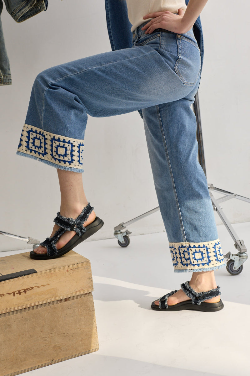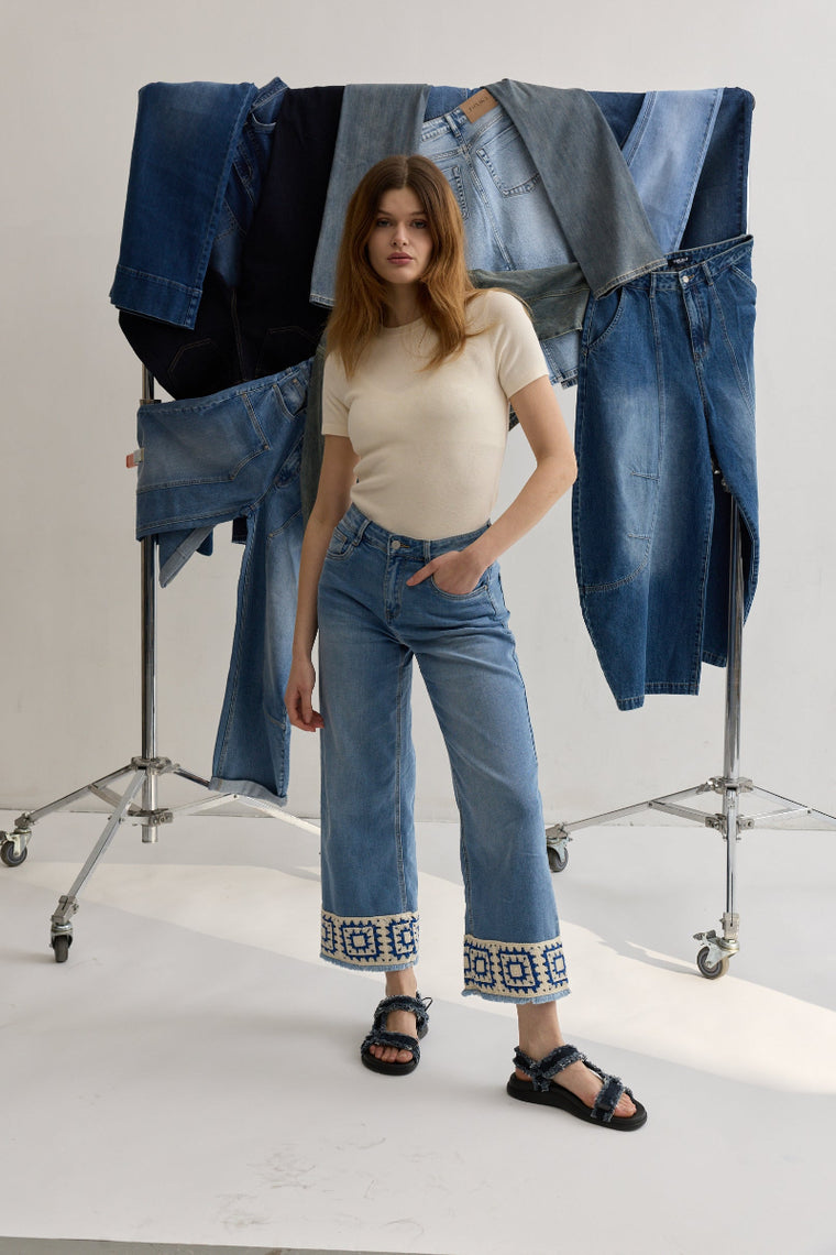 Toxik3 pantalon jean stretch wide cropped crochet