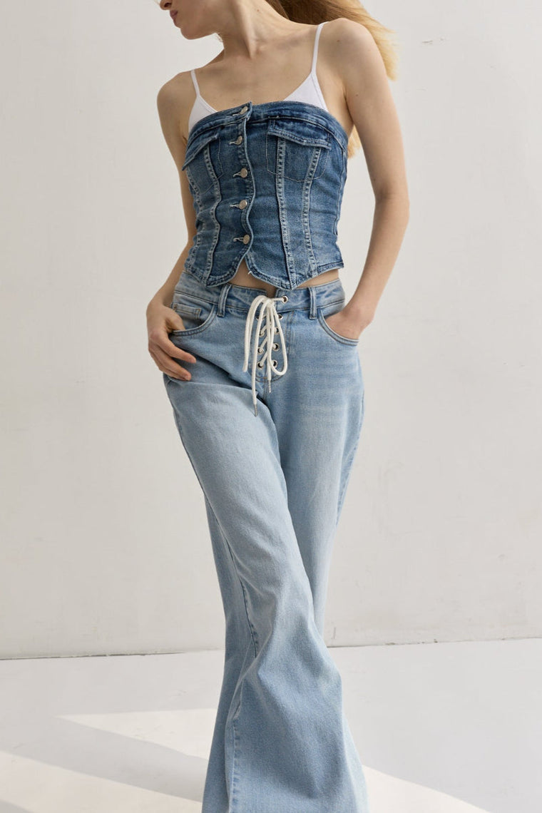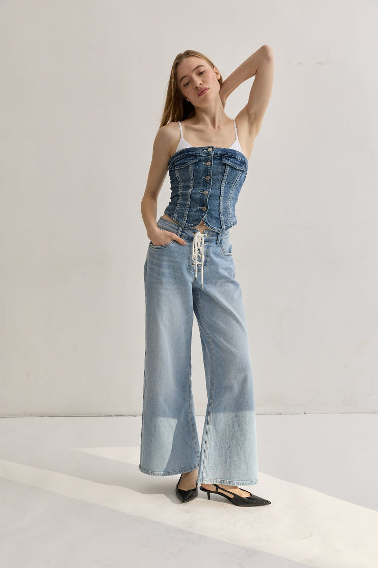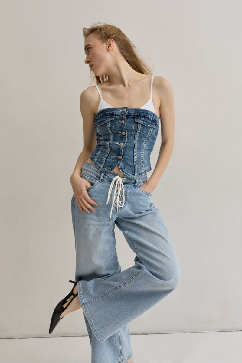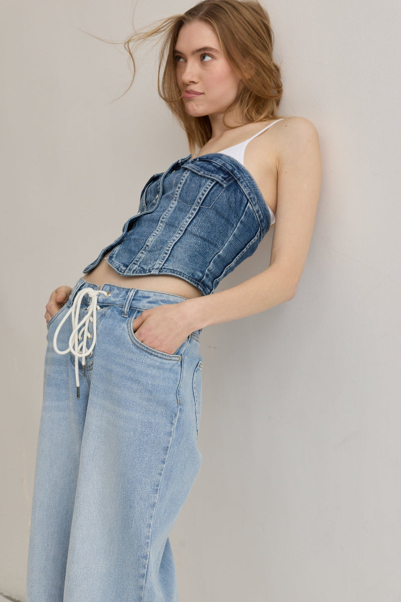 Toxik3 top bustier denim à boutons