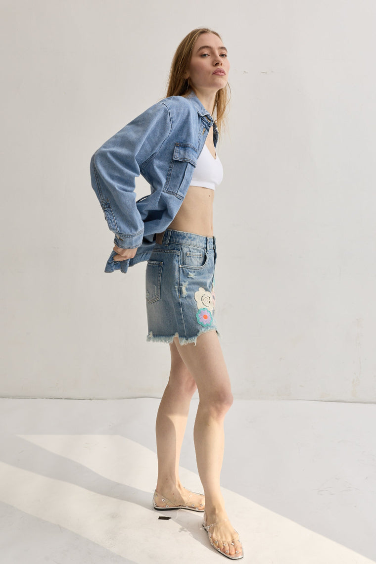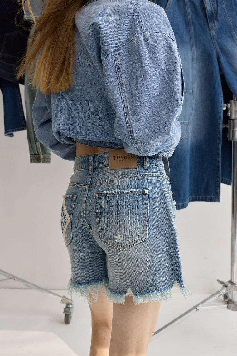 Toxik3 short jean effiloché motifs crochets