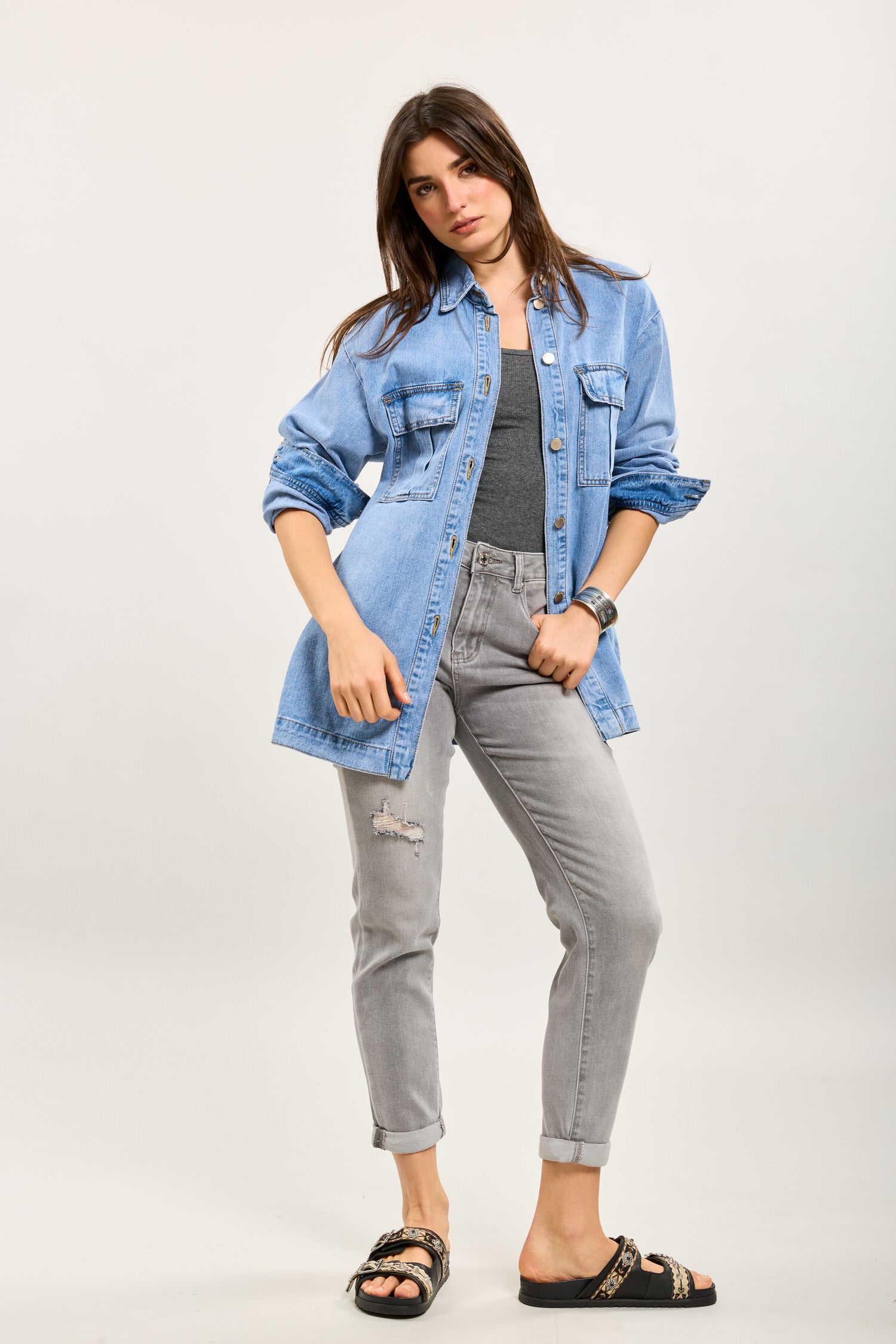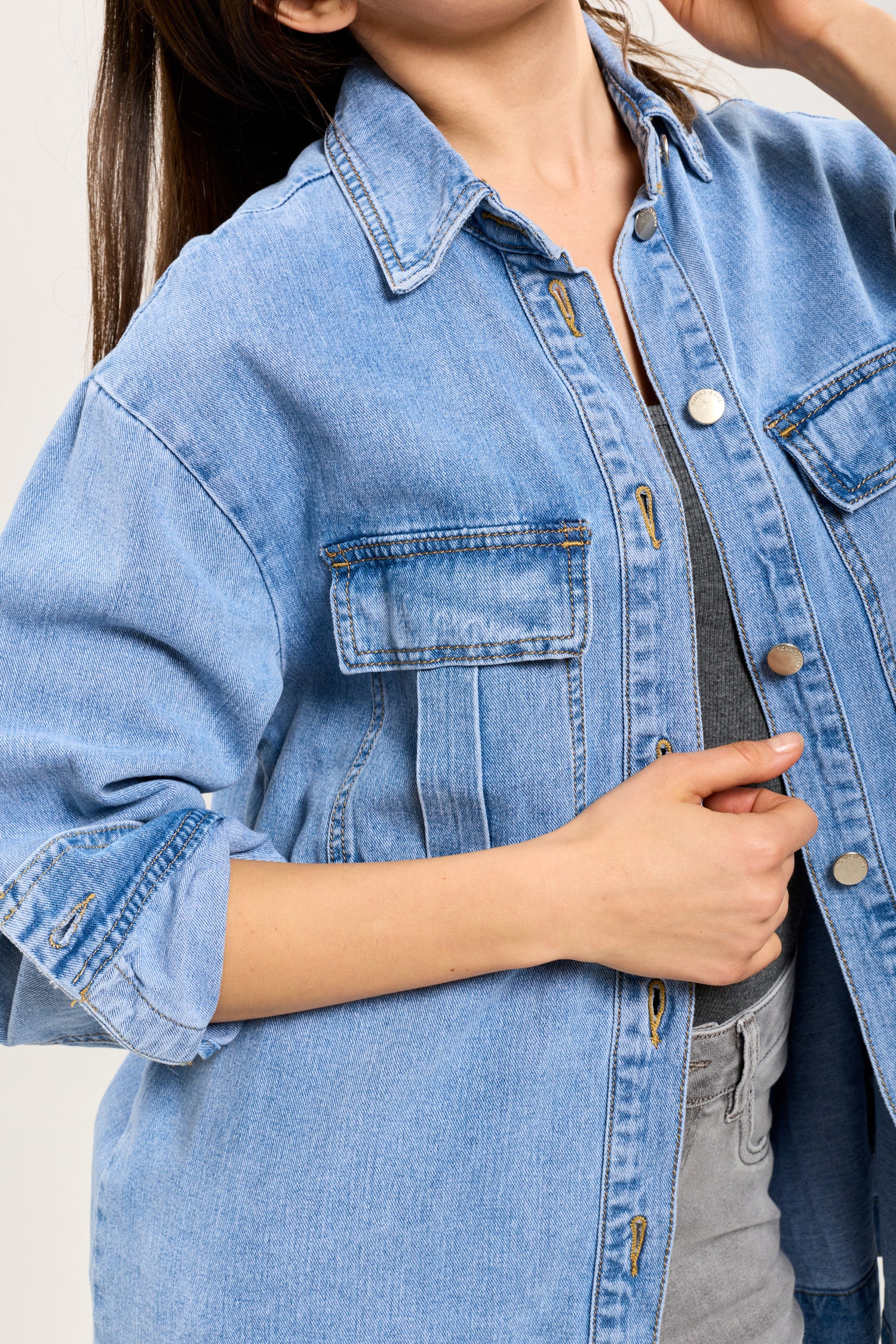 Toxik3 veste mi-longue jean bleu clair