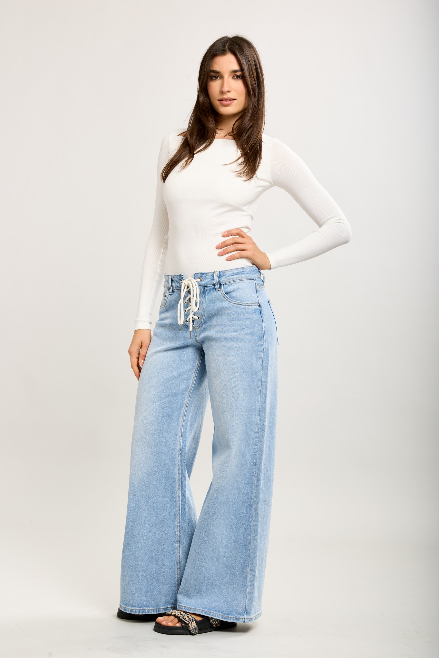 Toxik3 pantalon jean stretch wide lacet