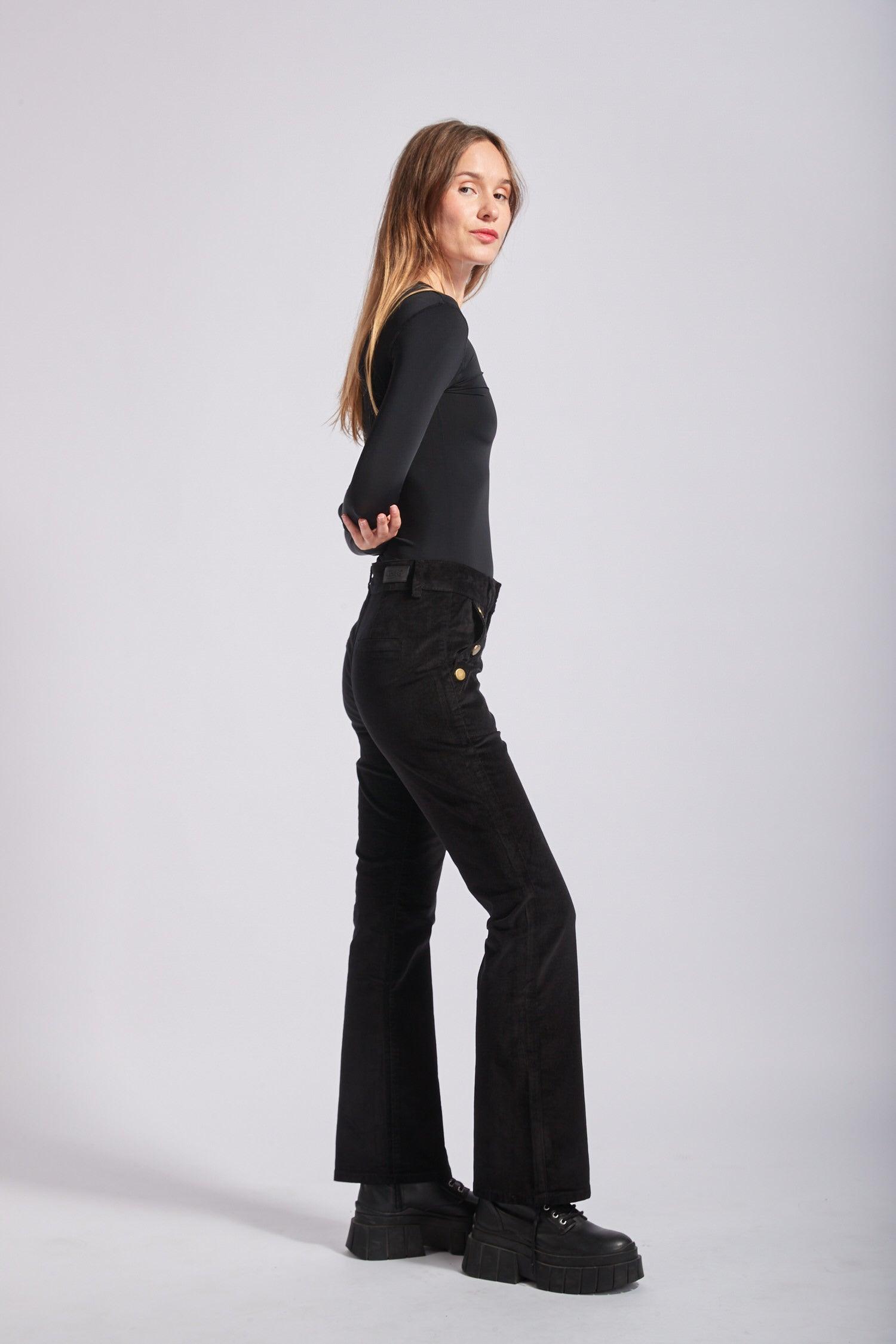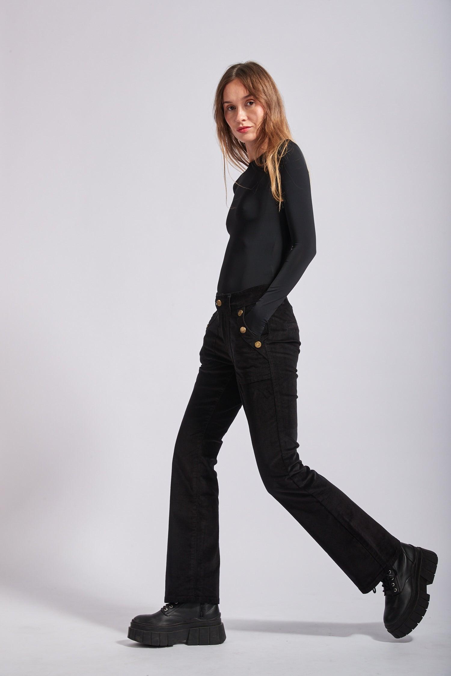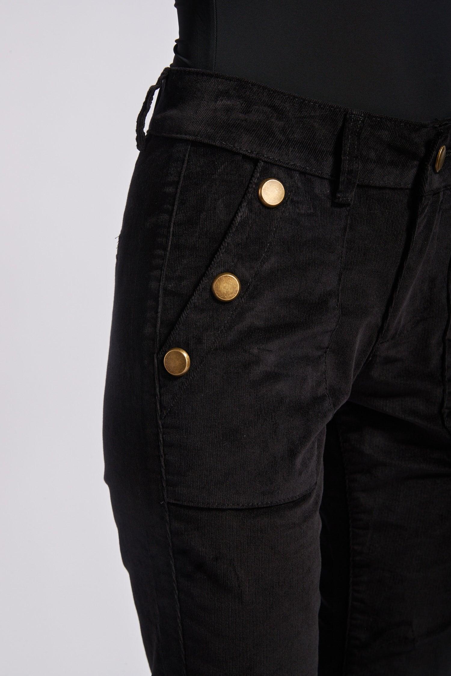 Toxik3 pantalon velours flare détails boutons or