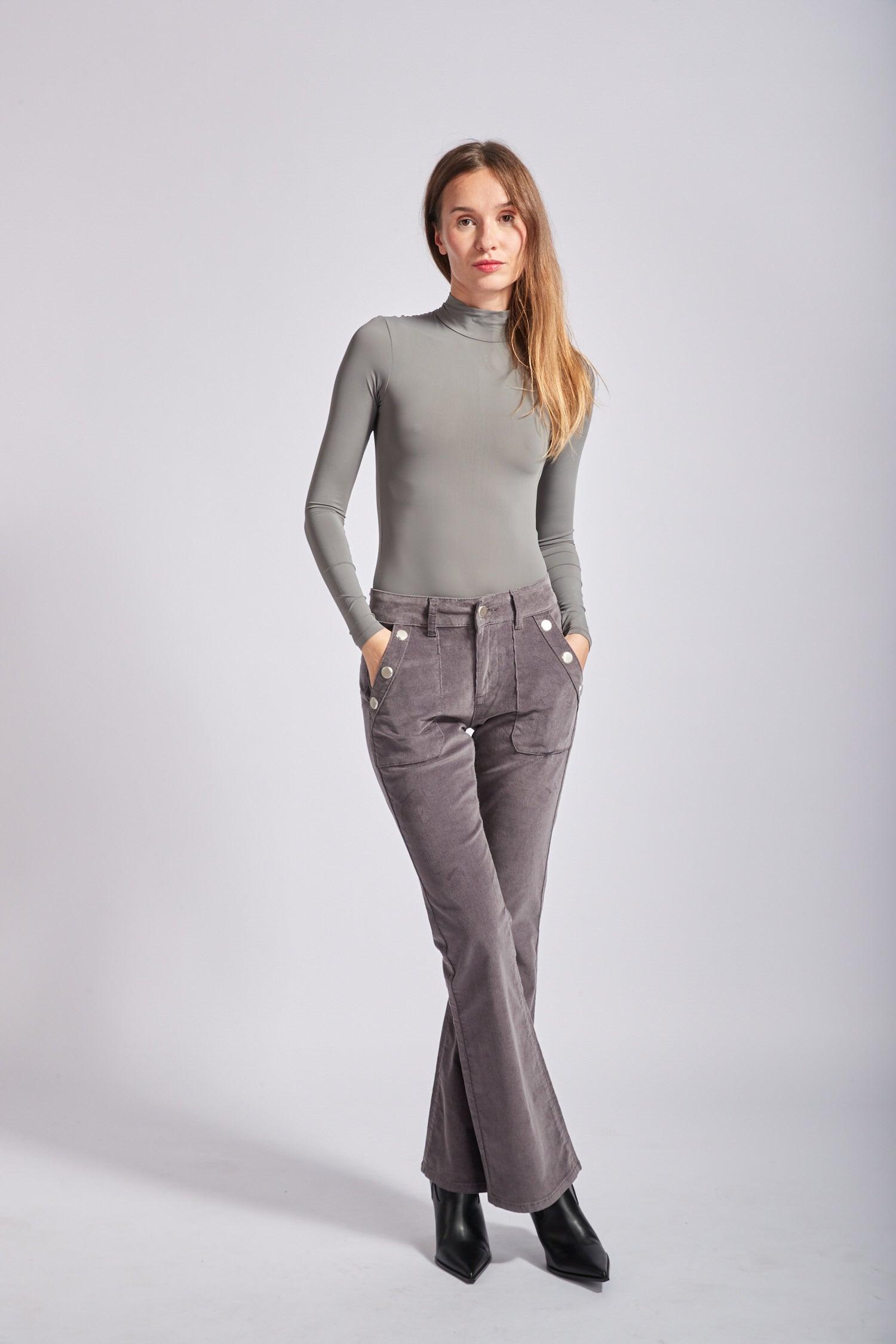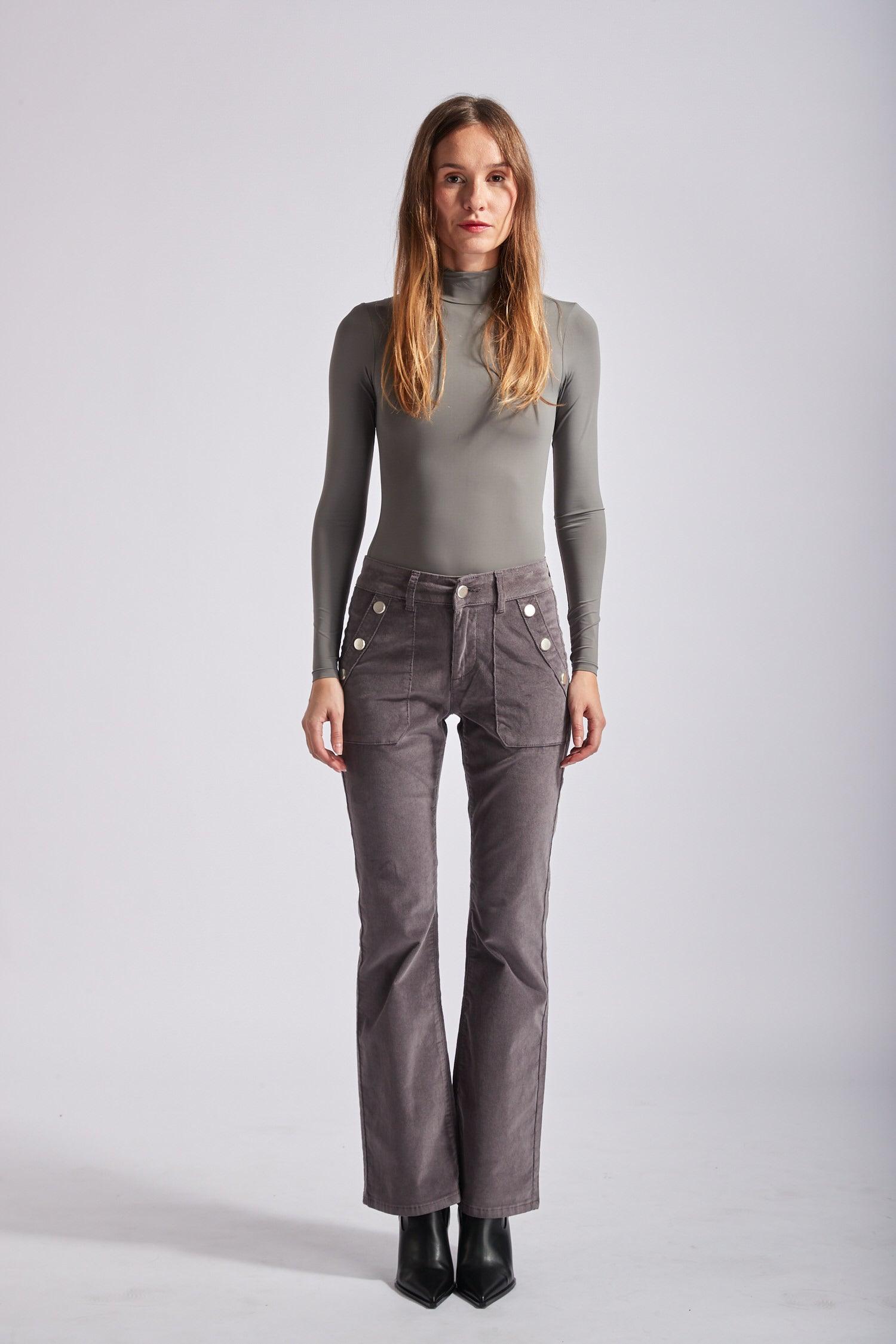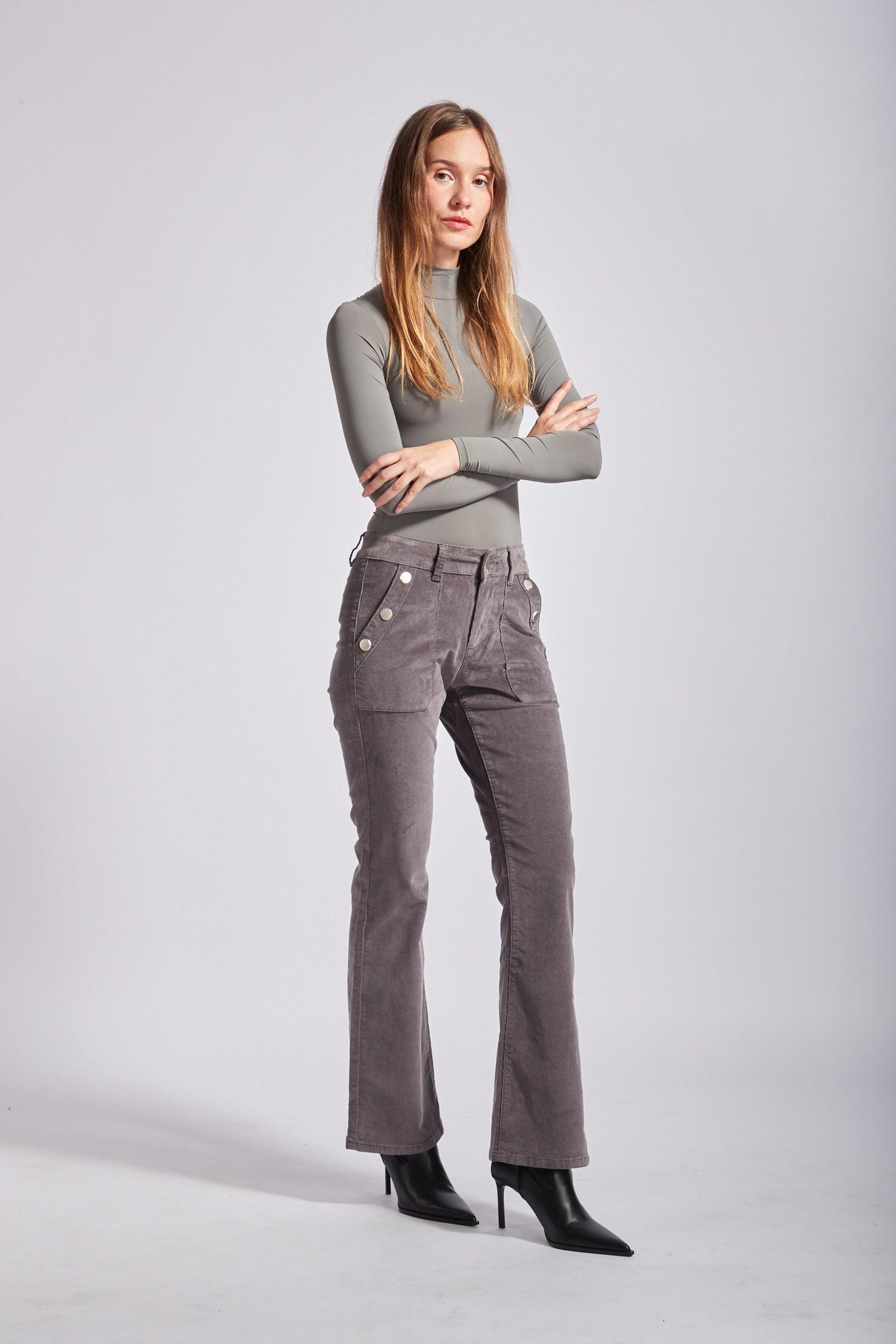Toxik3 pantalon velours flare détails boutons or