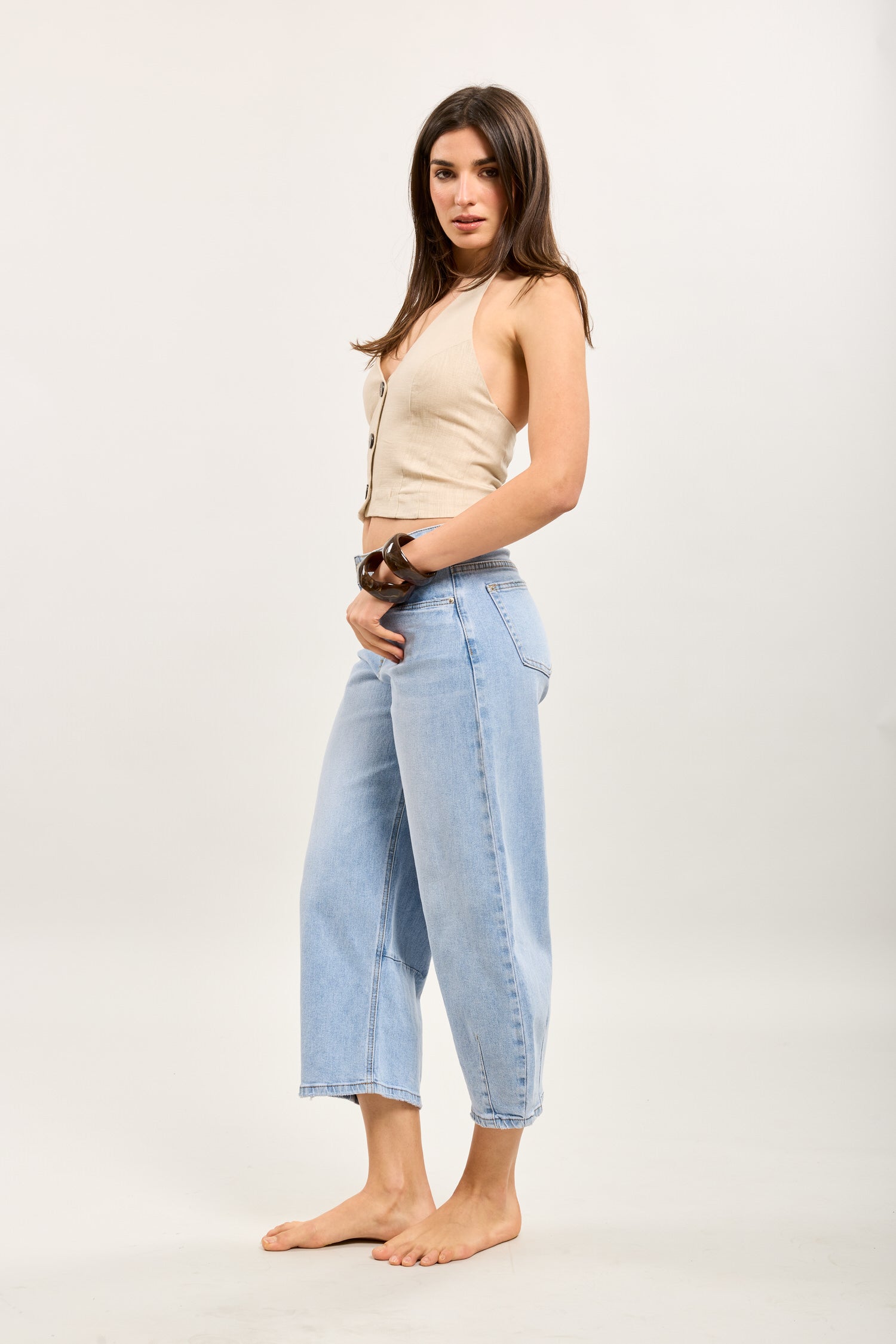 Toxik3 balloncropbroek van stretchdenim