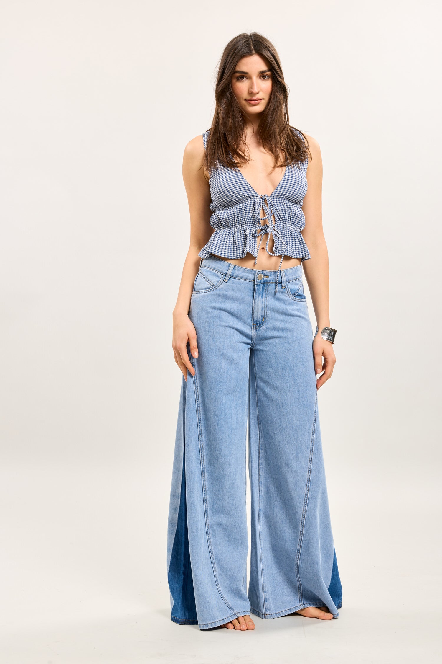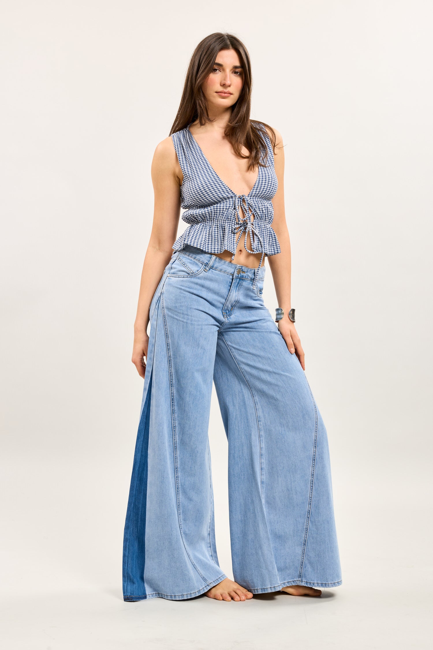 Toxik3 brede stretchdenimbroek met bandjes
