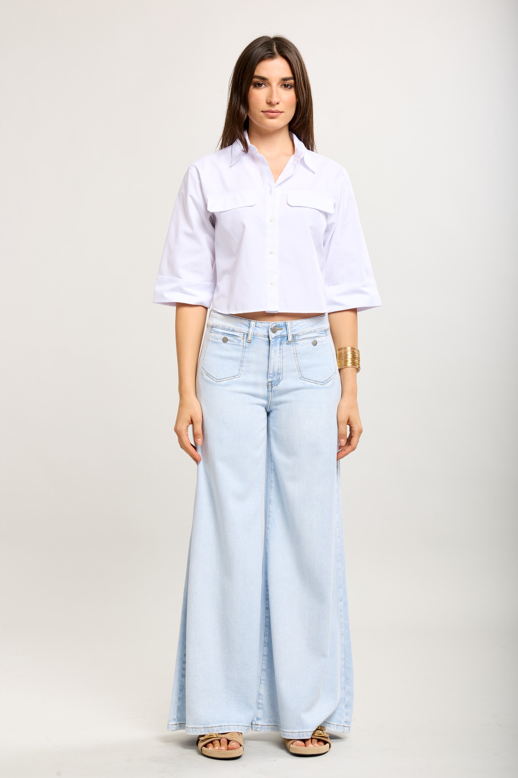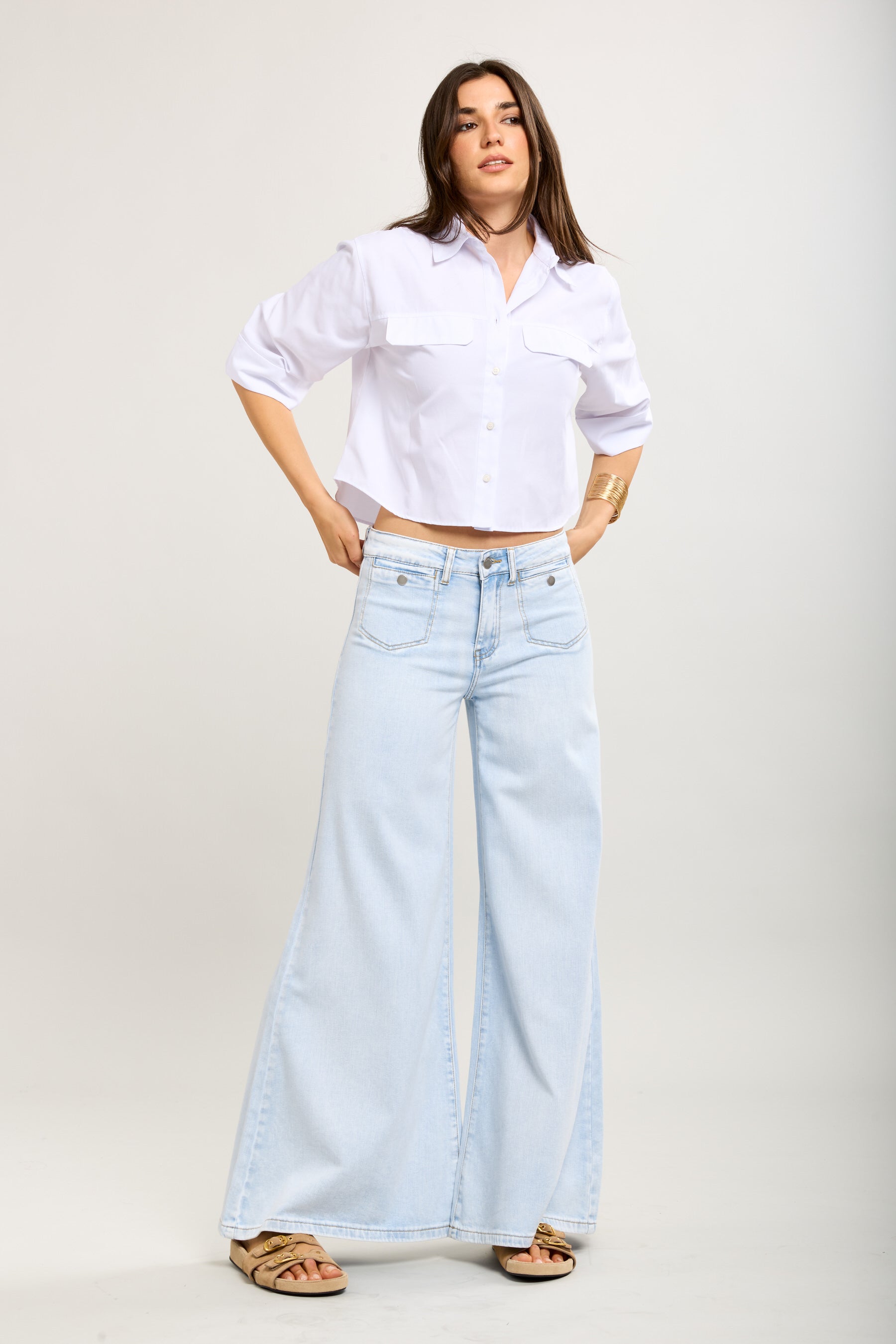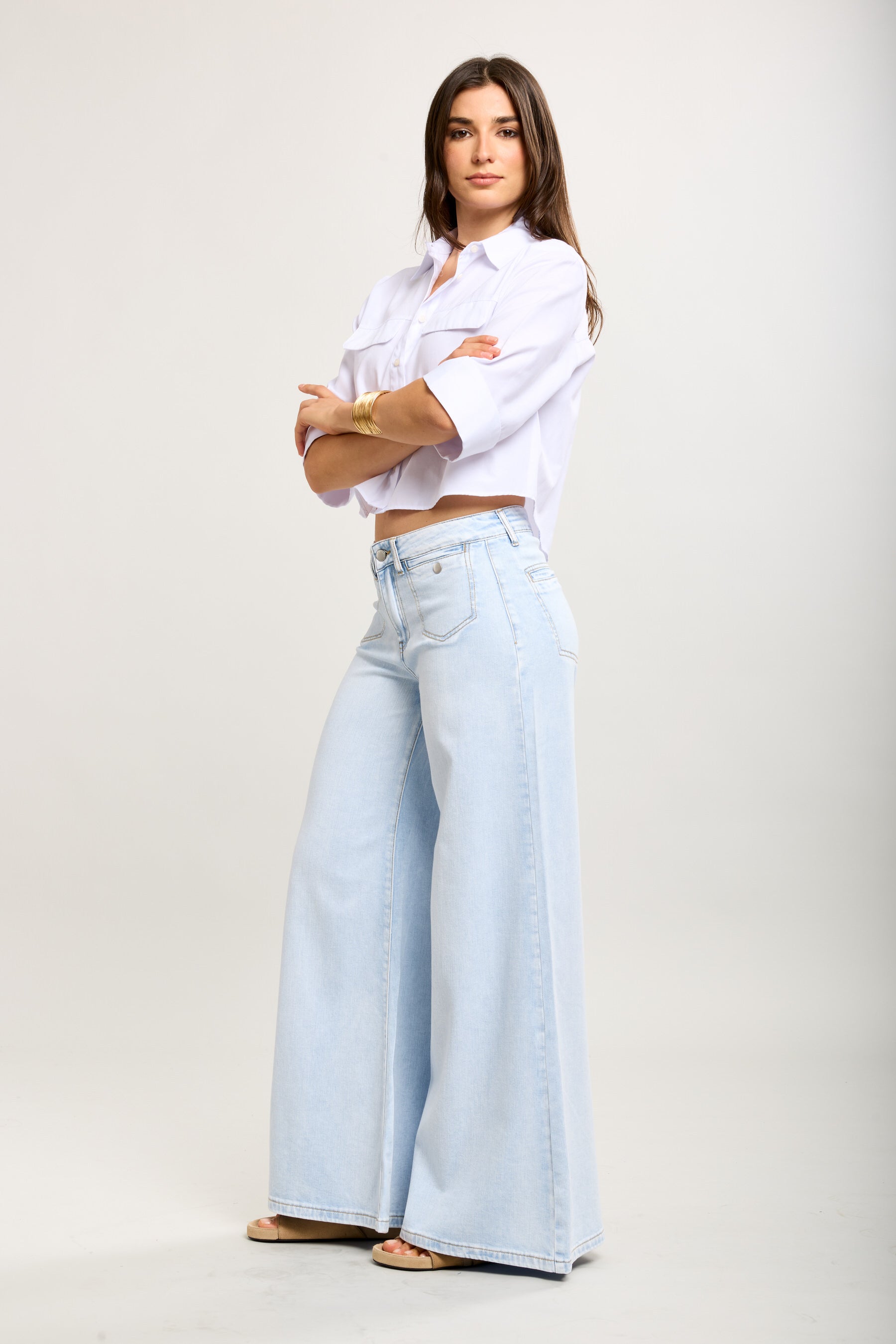 Toxik3 stretch wijde jeansbroek met strassknopen