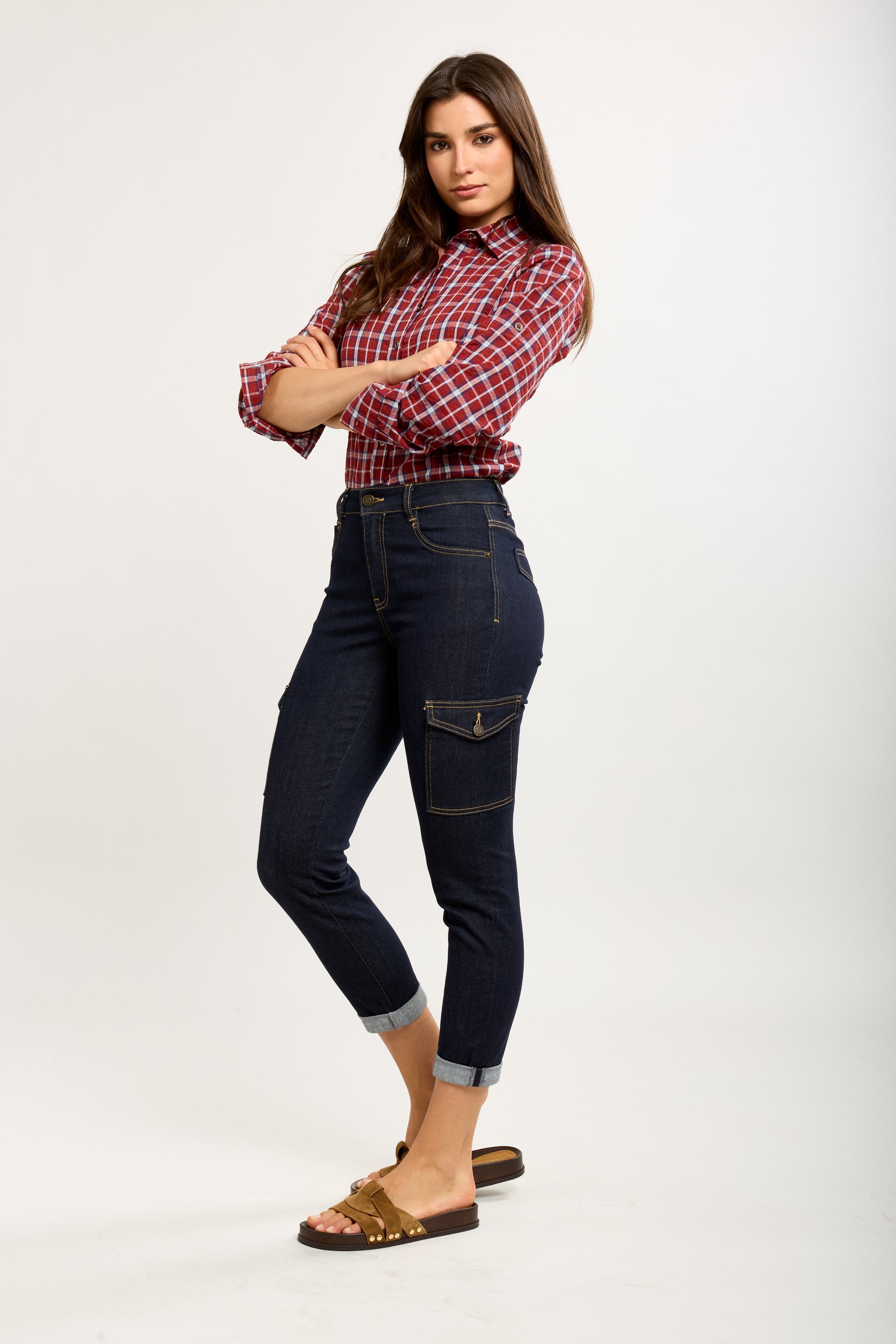 Toxik3 rechte stretchjeansbroek met omslagzakken