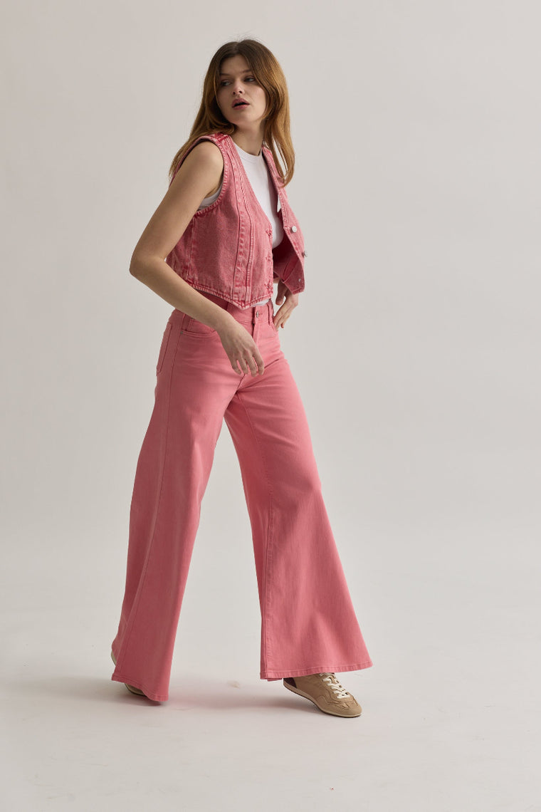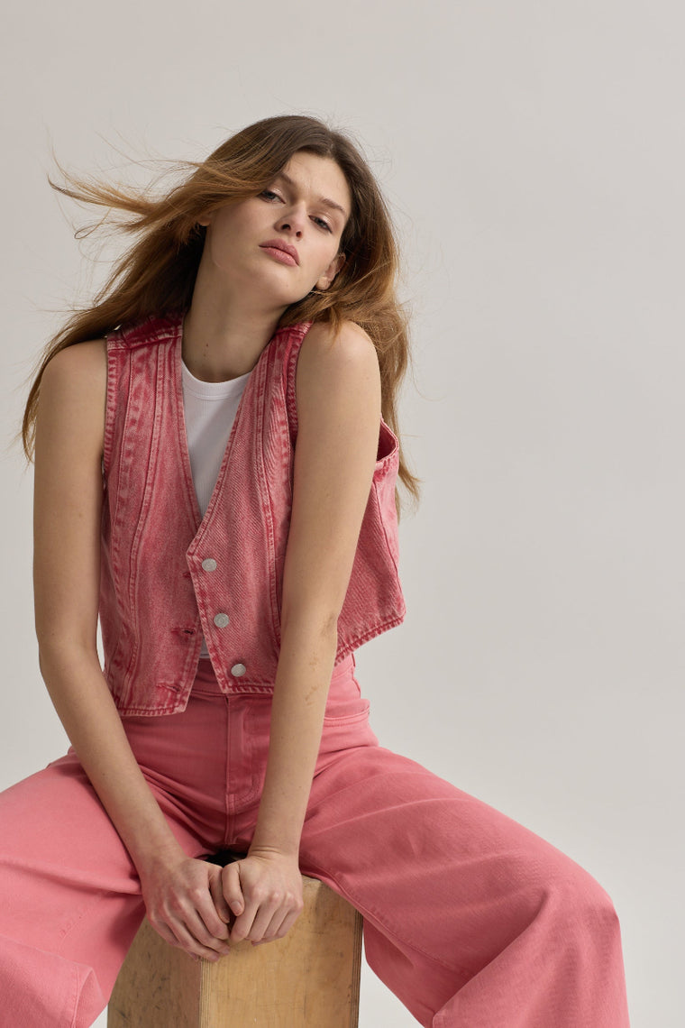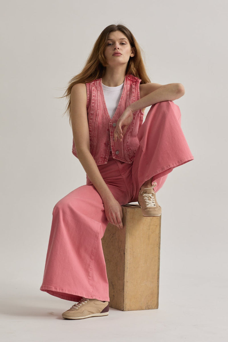Toxik3 kort denimvest Roze sneeuw