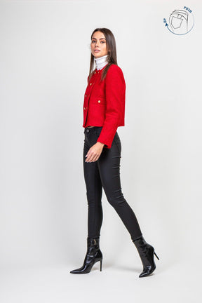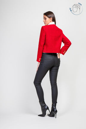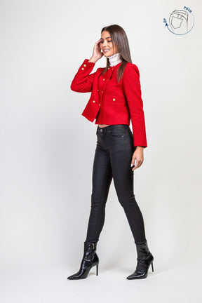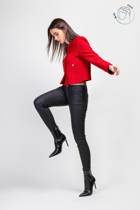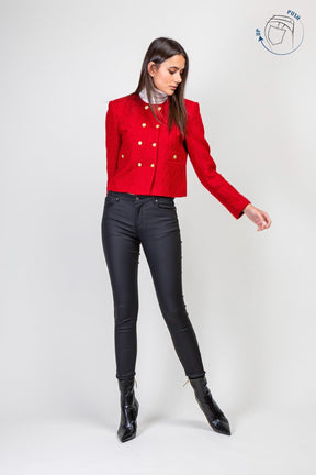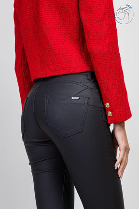 Deze superstretch, mat gecoate katoenen broek heeft een slanke push-up snit en een ritssluiting. Het is verkrijgbaar in de kleur matzwart.