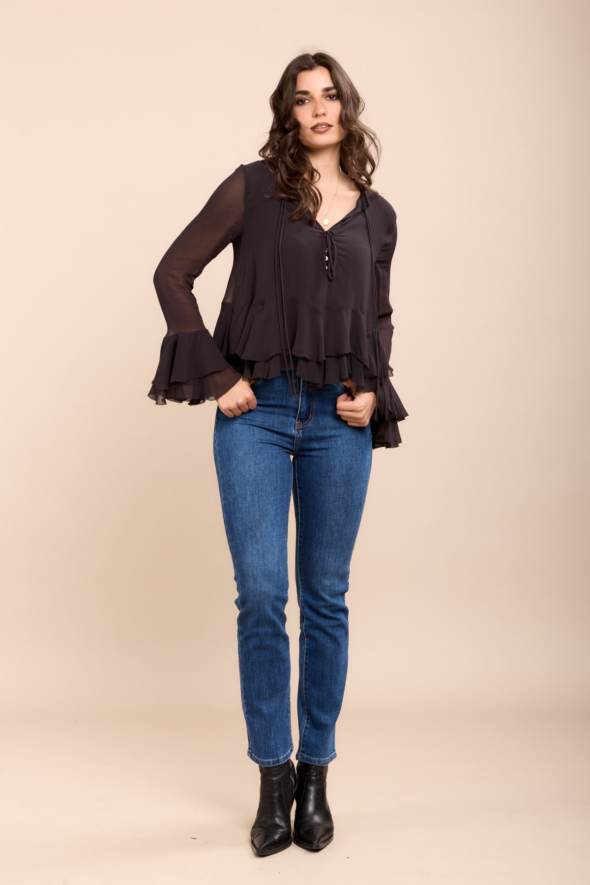 Toxik3 wijde stretchjeansbroek met lintdetails