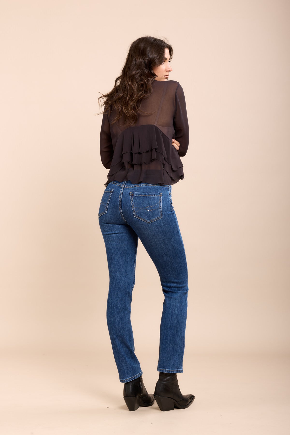 Toxik3 slanke stretchjeansbroek met golvende strassdetails op de achterzakken