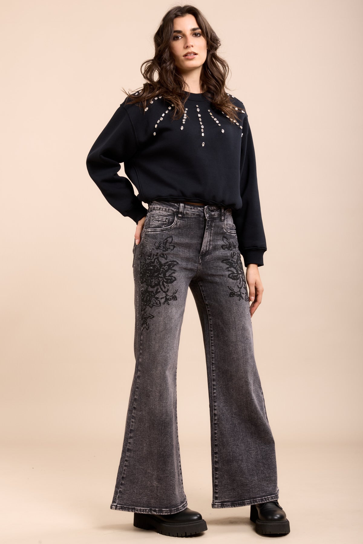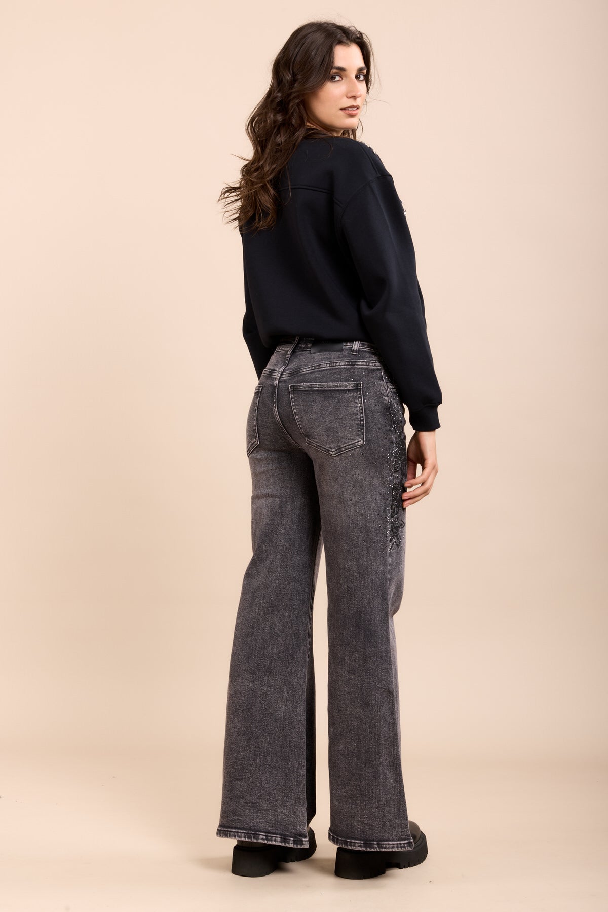 Toxik3 stretch wijde jeansbroek met sterstrass steentjes