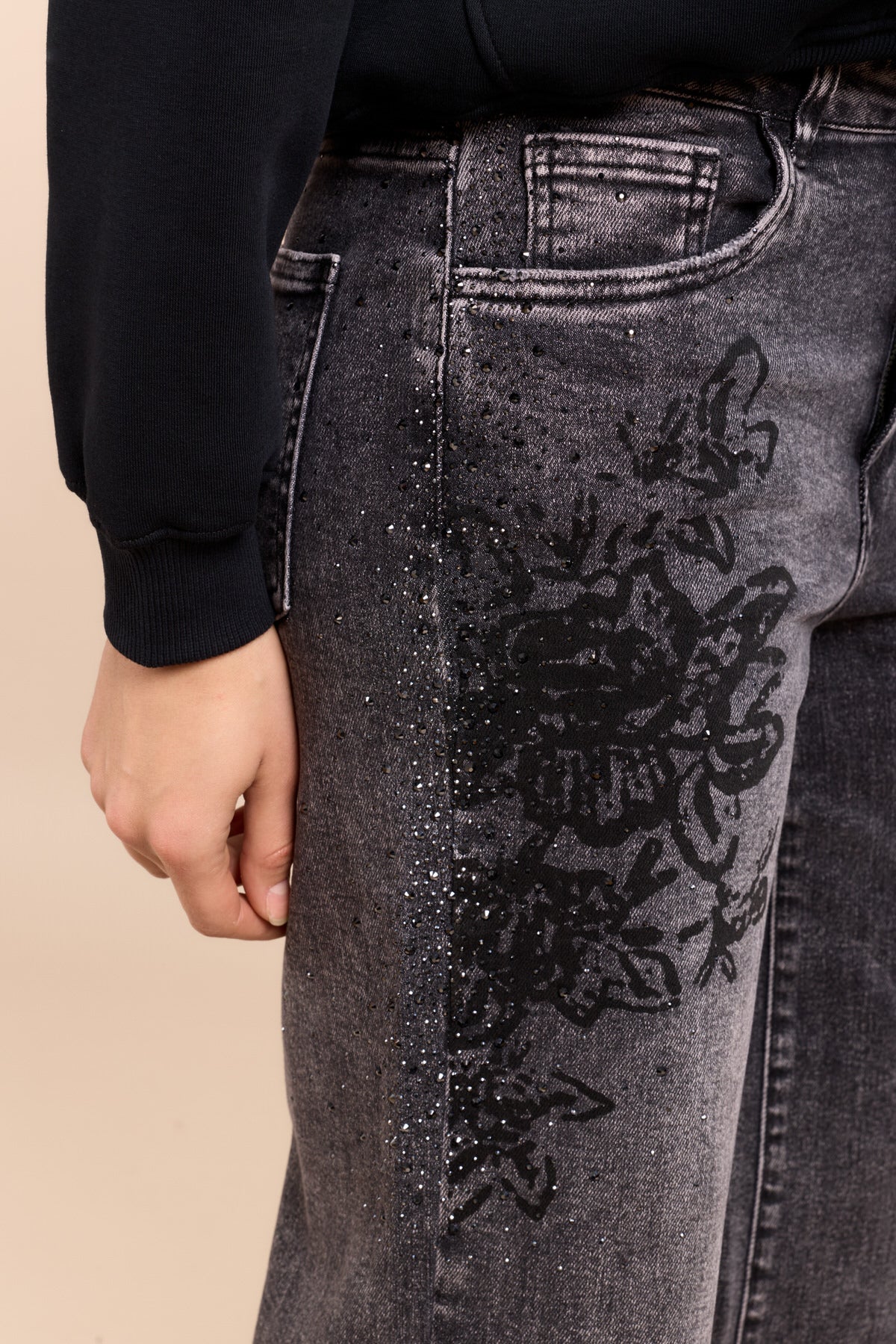 Toxik3 stretch jeansbroek met bootcut strass-bloempatronen