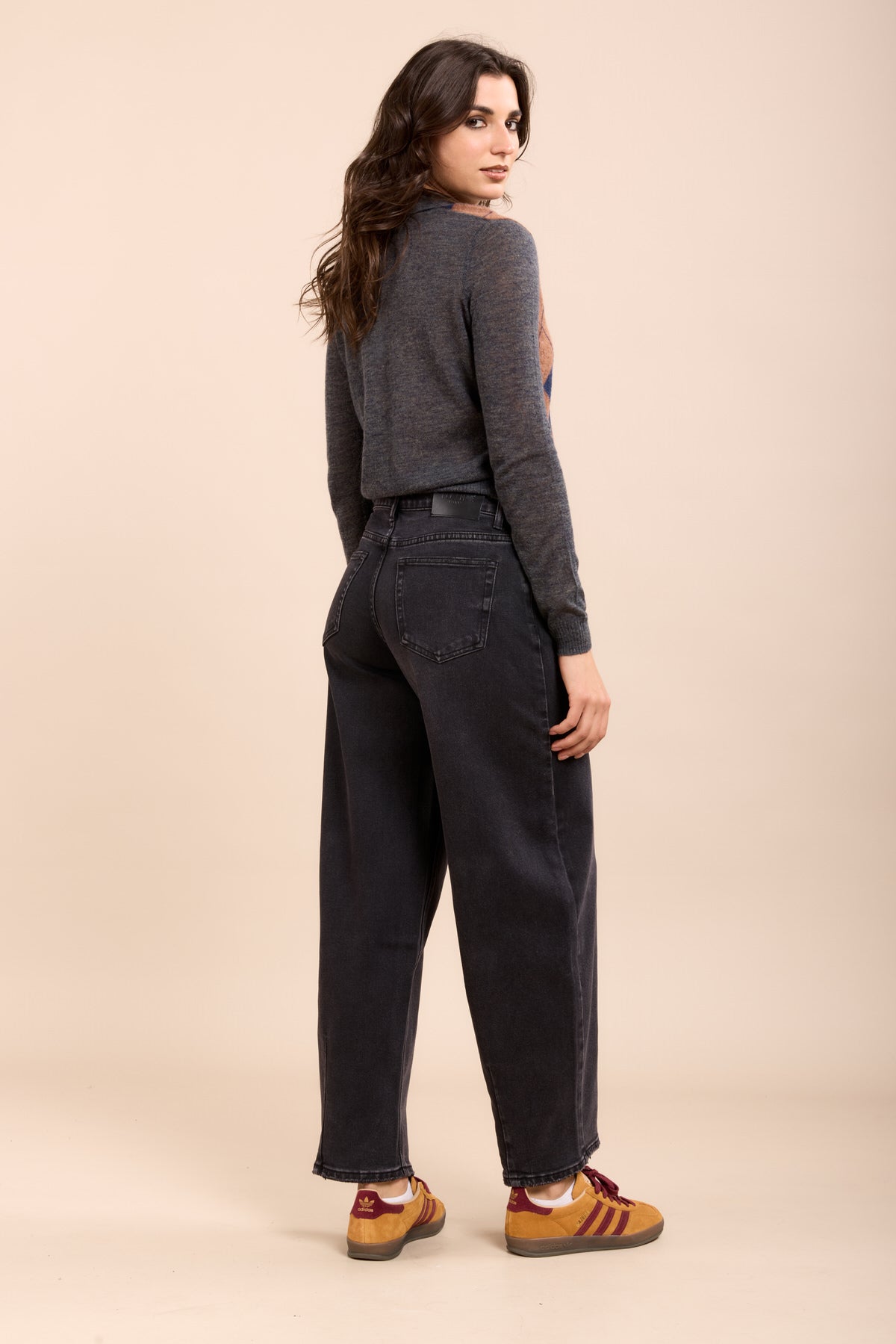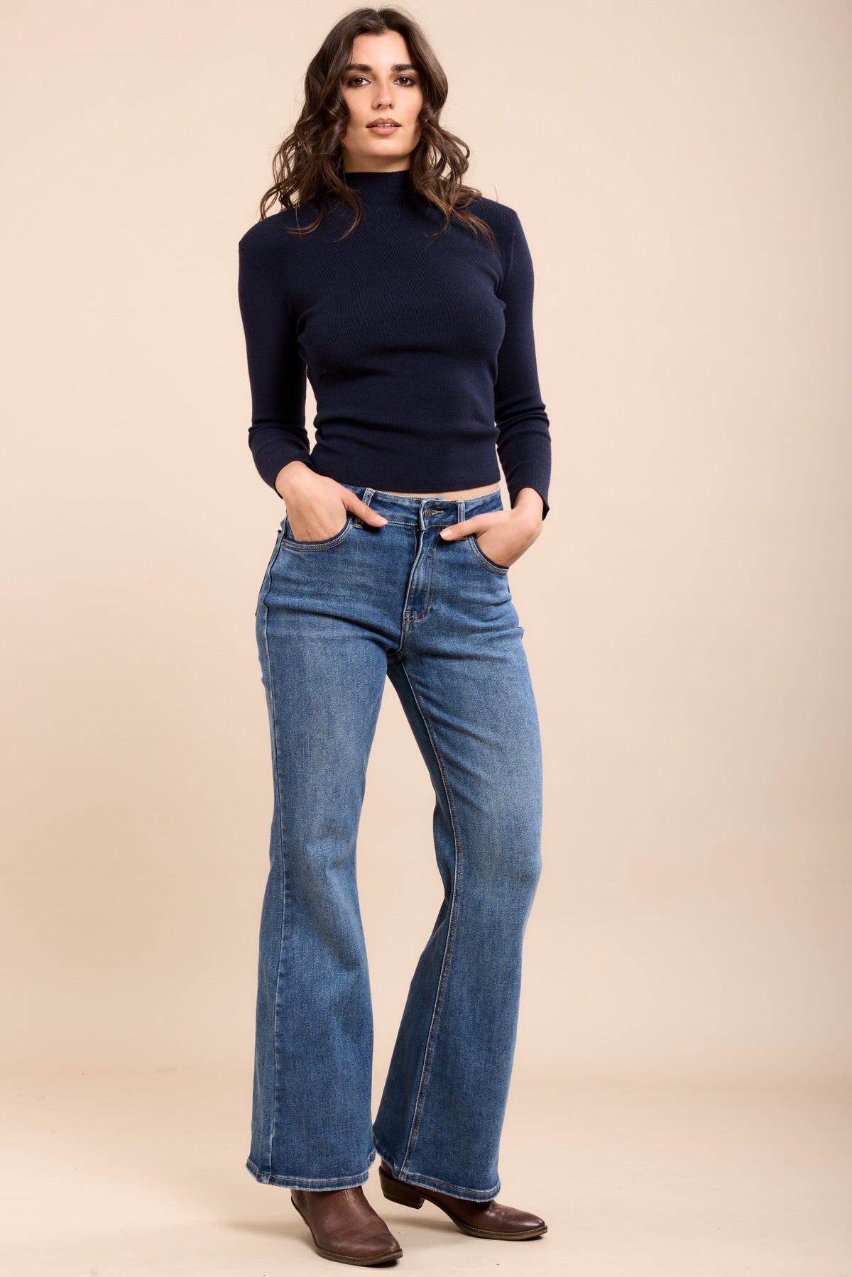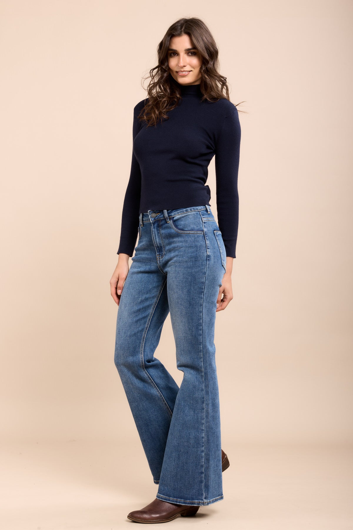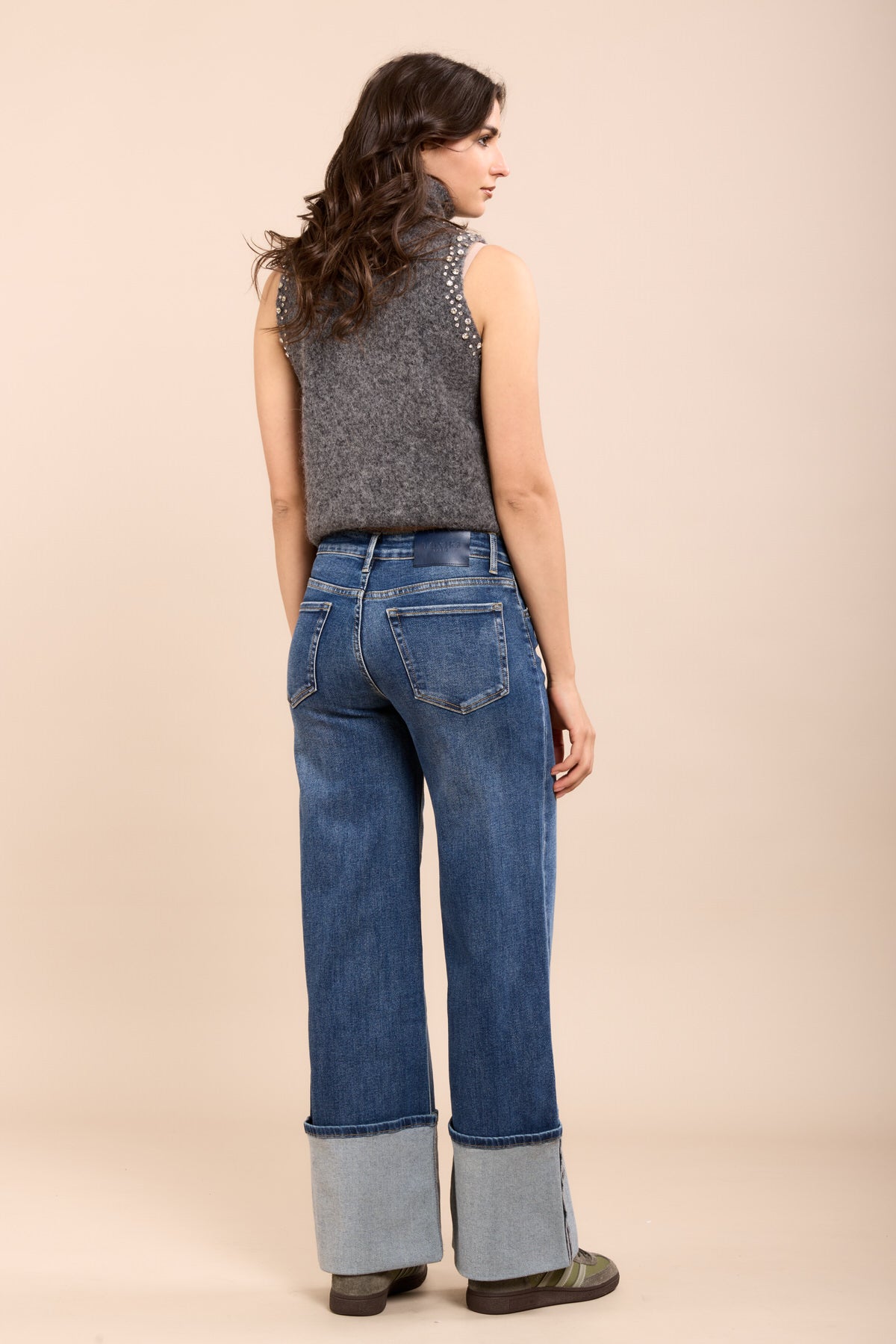 Toxik3 Jean Wide Stretch Snee Hoog met dubbele jeans couture gearceerde zakken