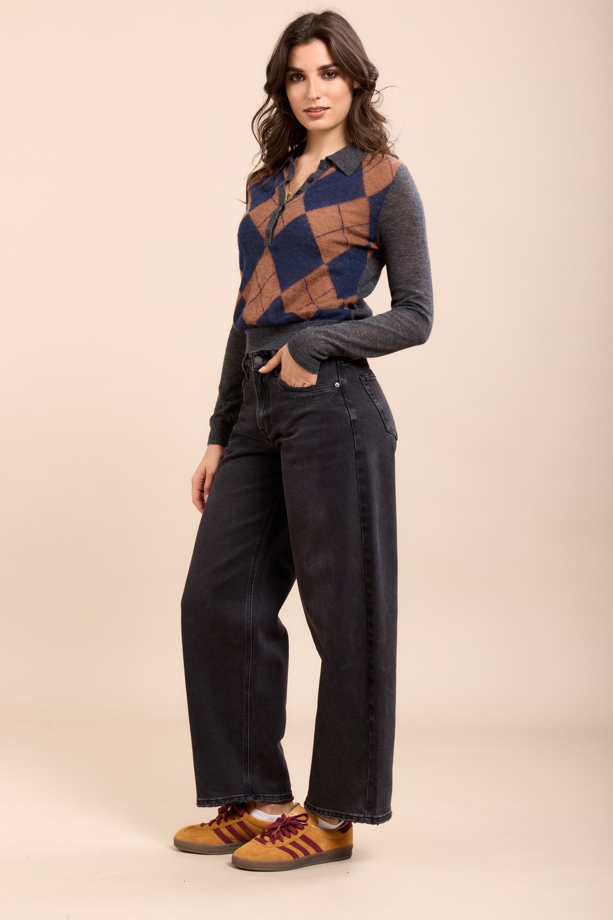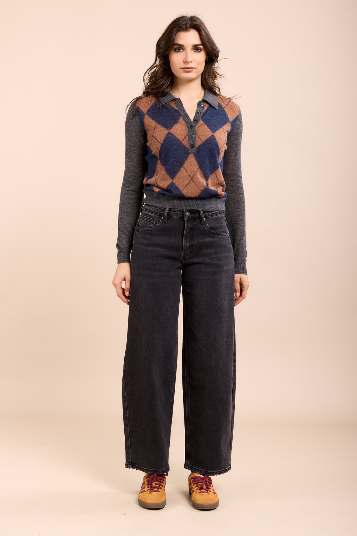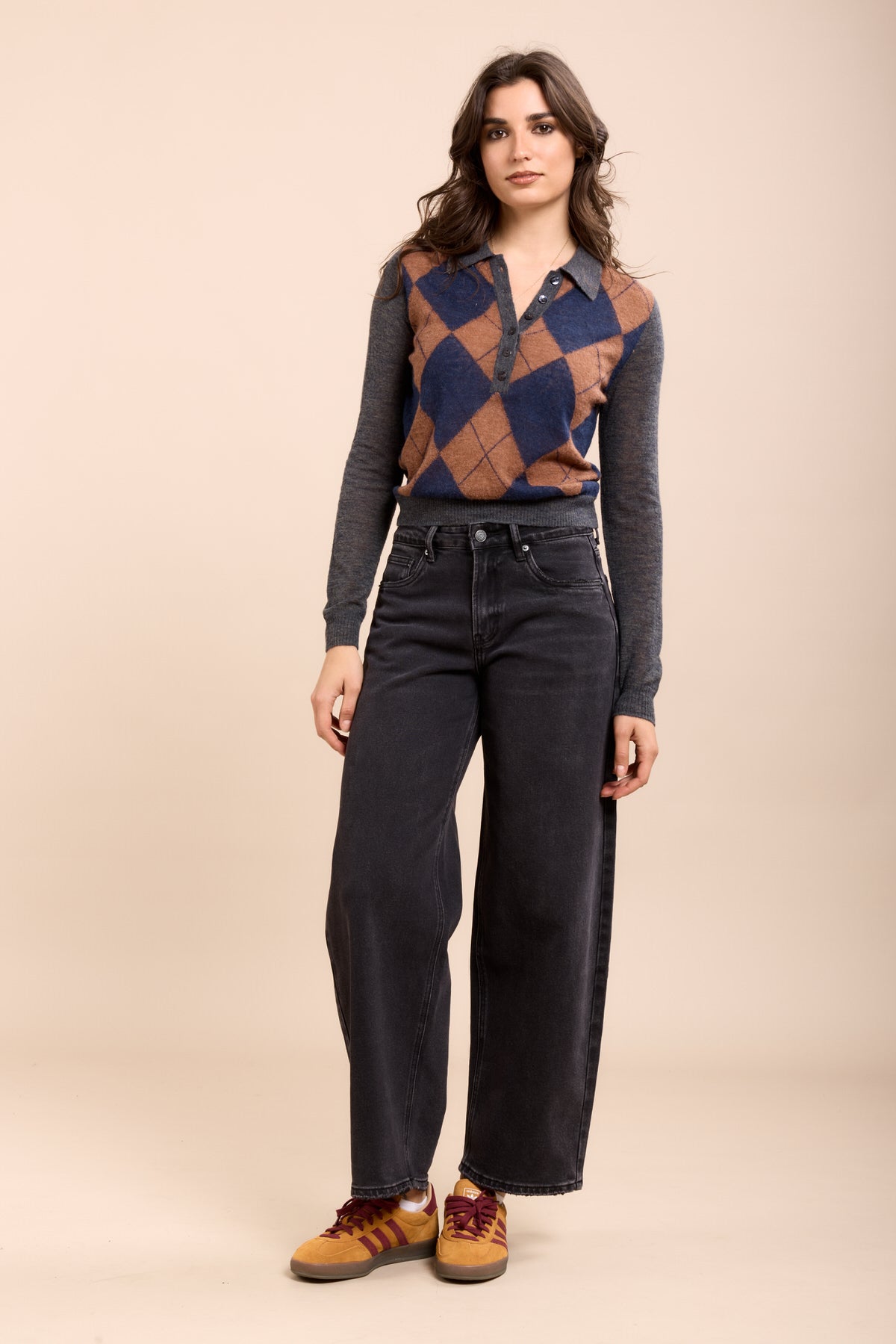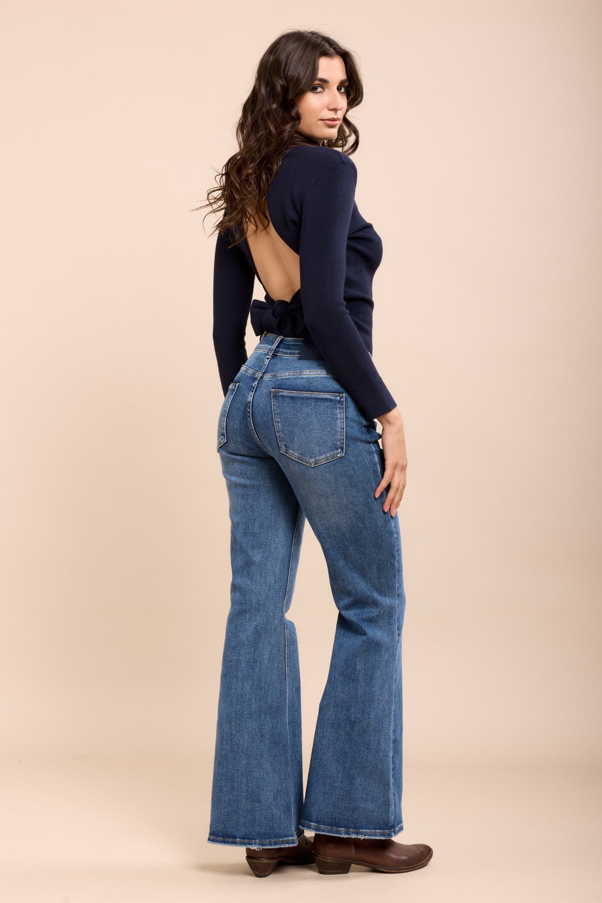 Toxik3 Jean Wide Stretch Snee Hoog met dubbele jeans couture gearceerde zakken