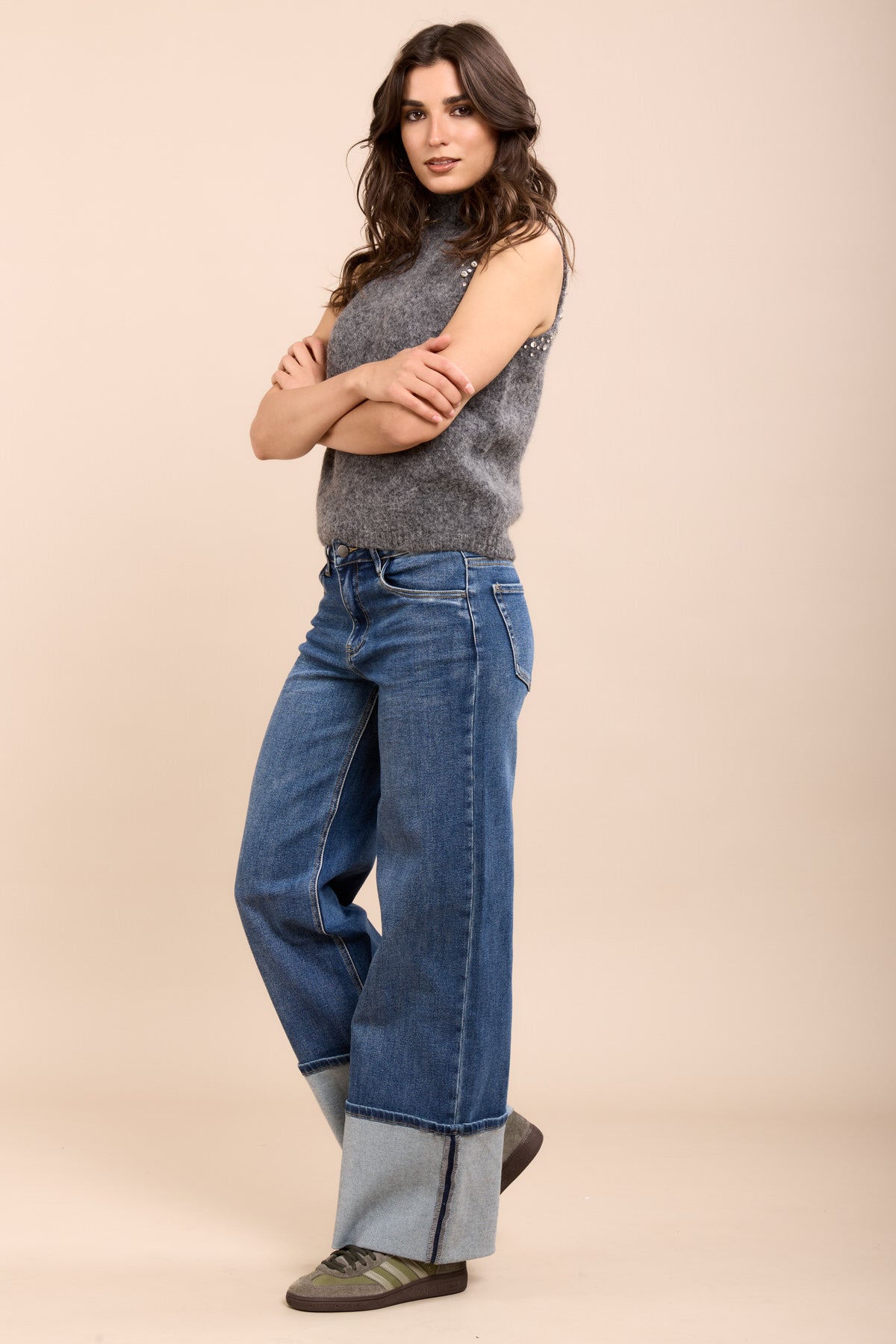 Toxik3 donkere tweekleurige stretch wijde jeansbroek