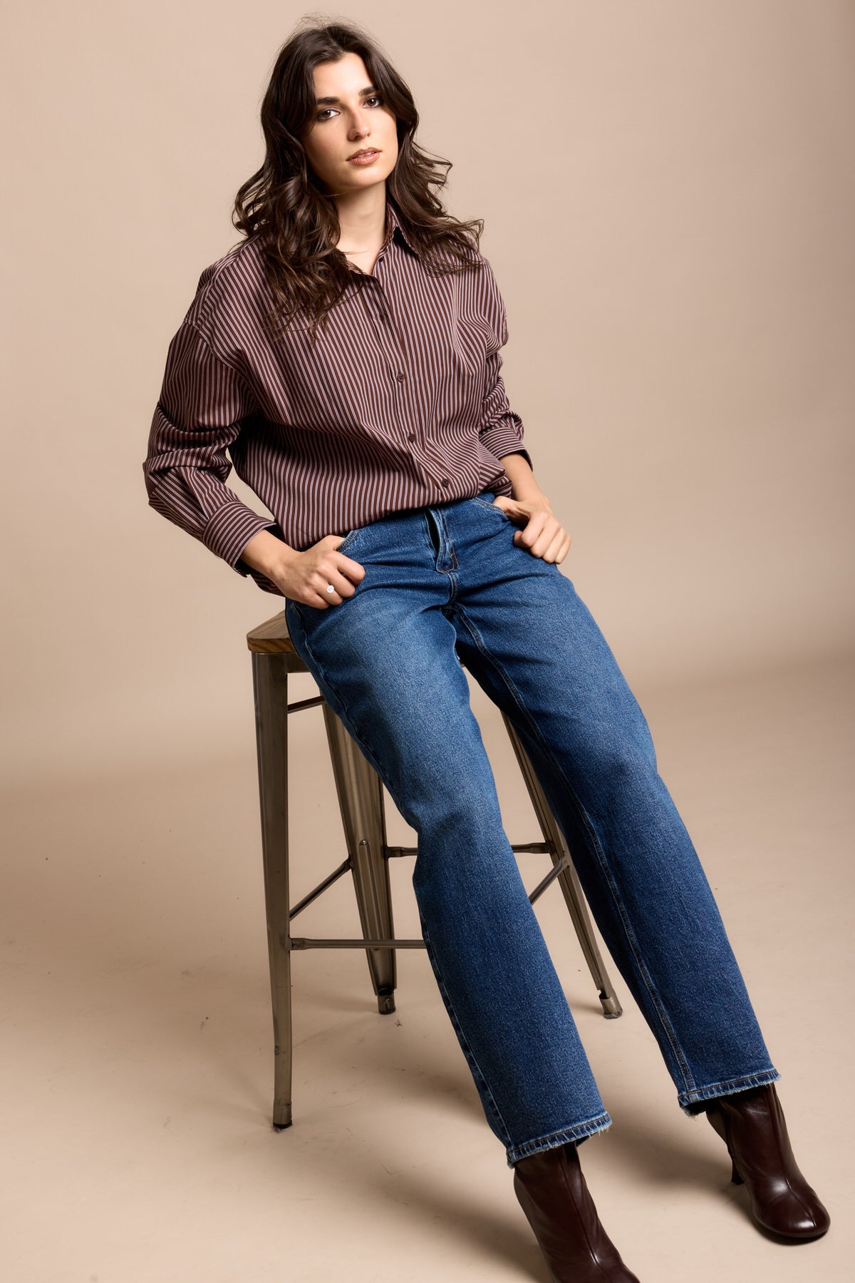 Toxik3 geribbelde mom-jeansbroek van stretch