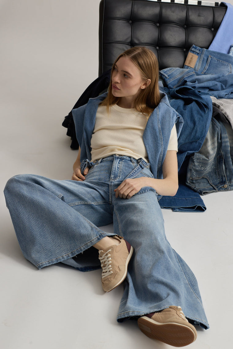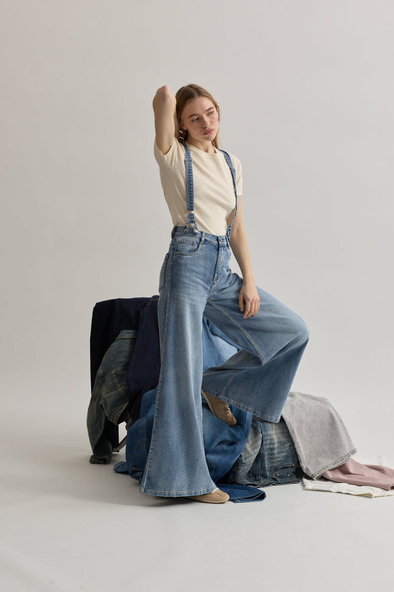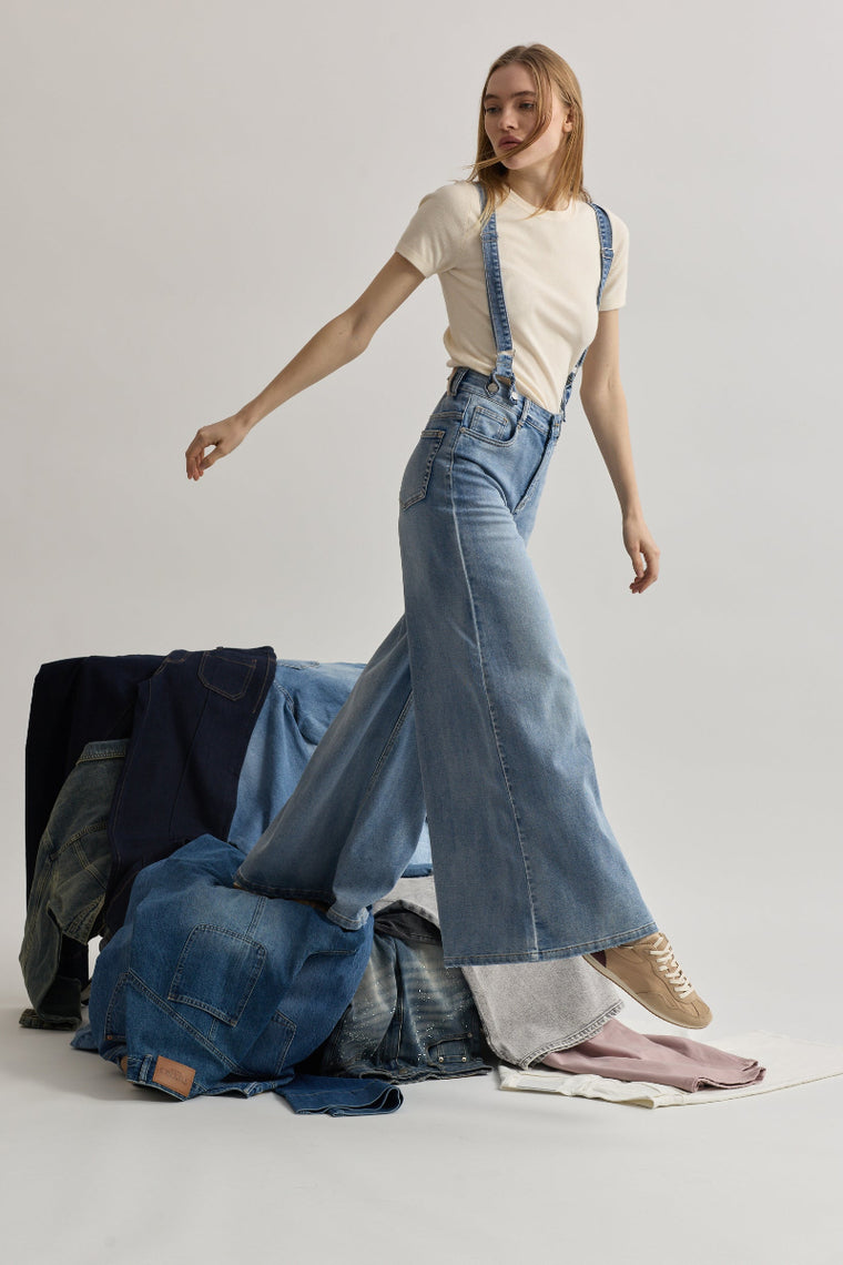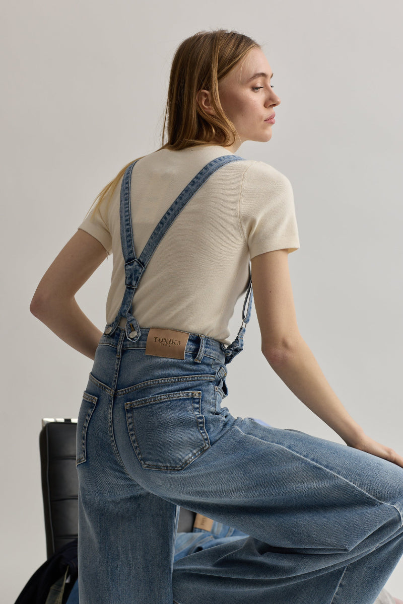 Toxik3 pantalon wide en jean stretch à bretelles