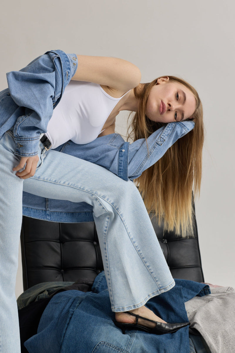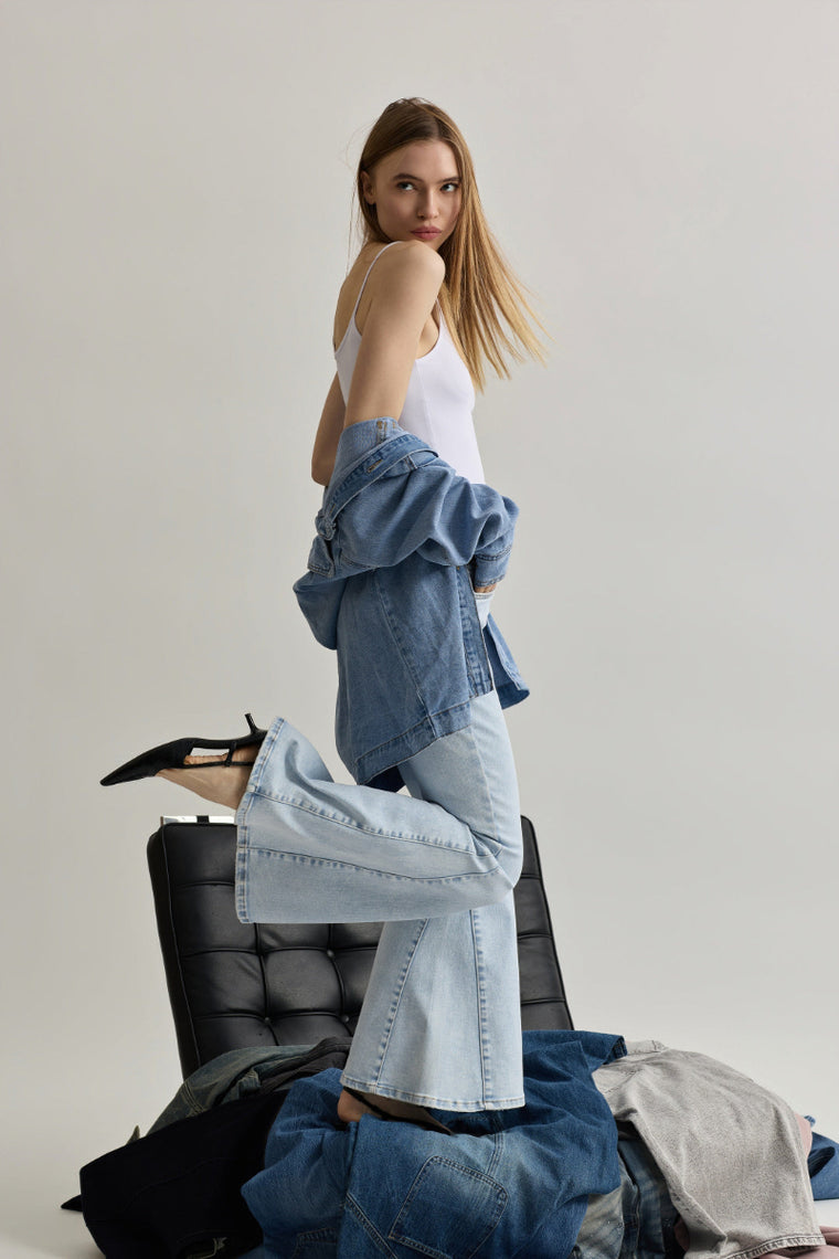 Toxik3 pantalon jean stretch flare nervures
