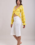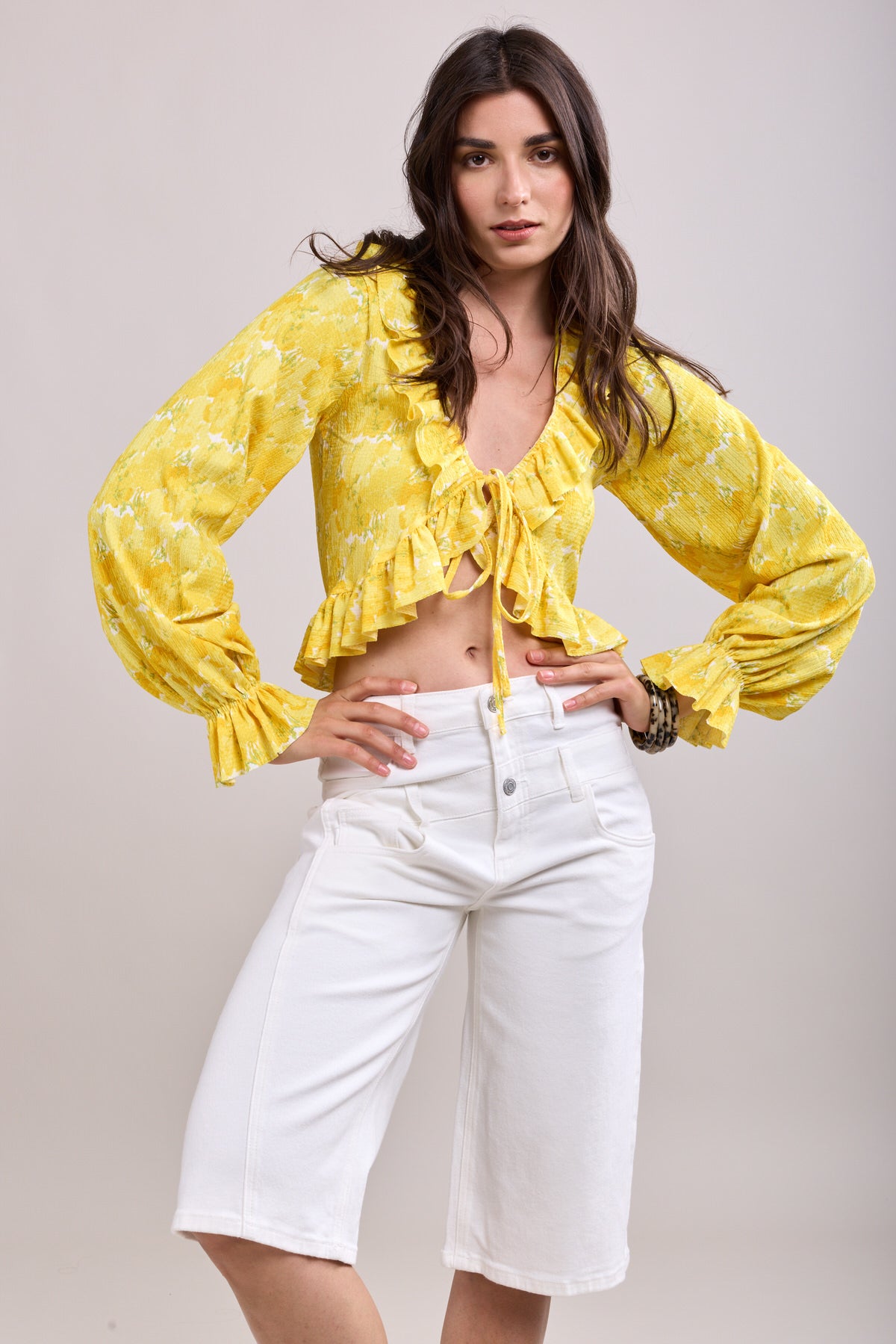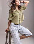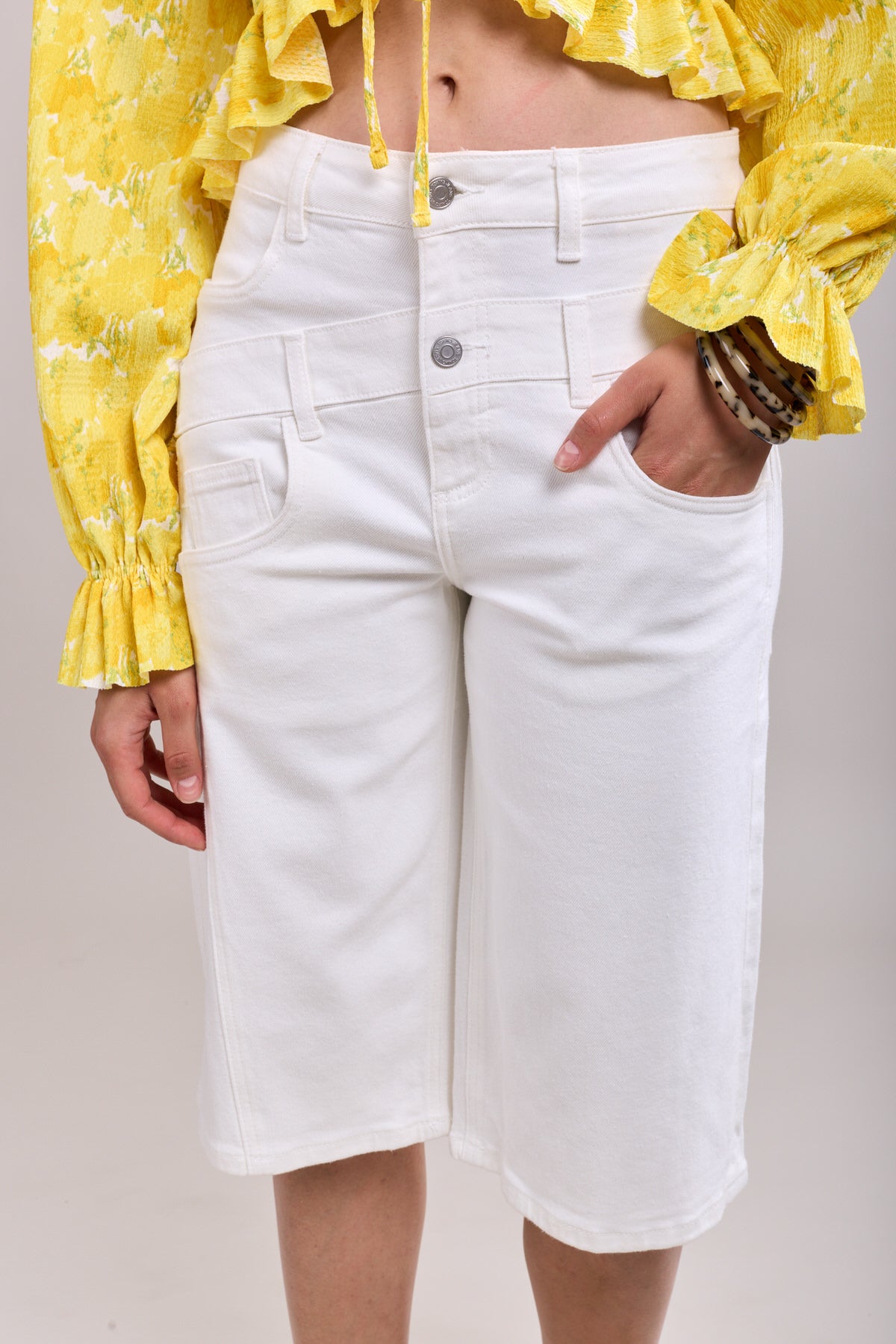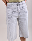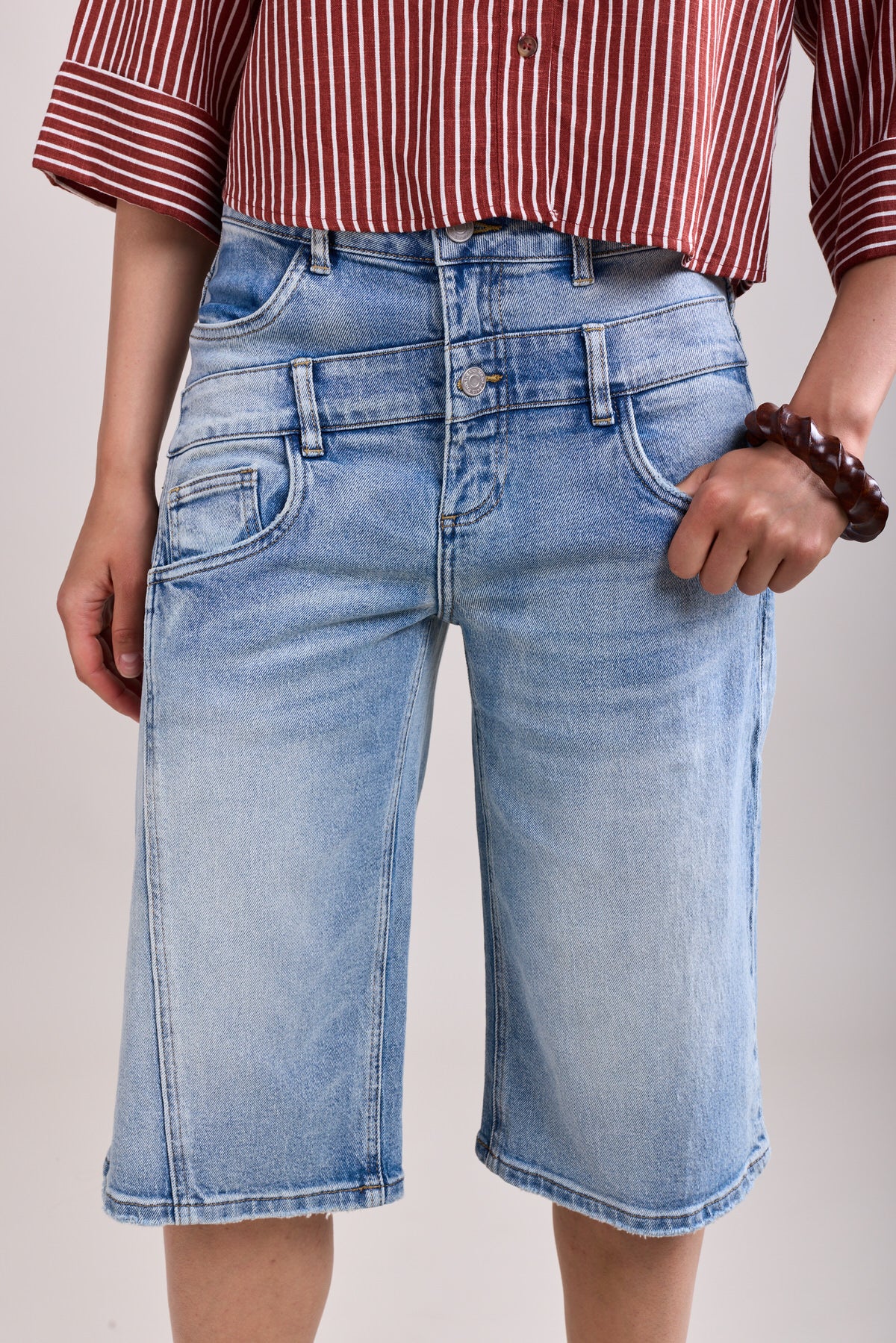 Ce bermuda en jean délavé vous propose une touche originale par le jeu de superposition de sa conception.