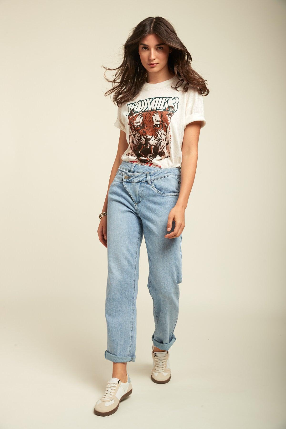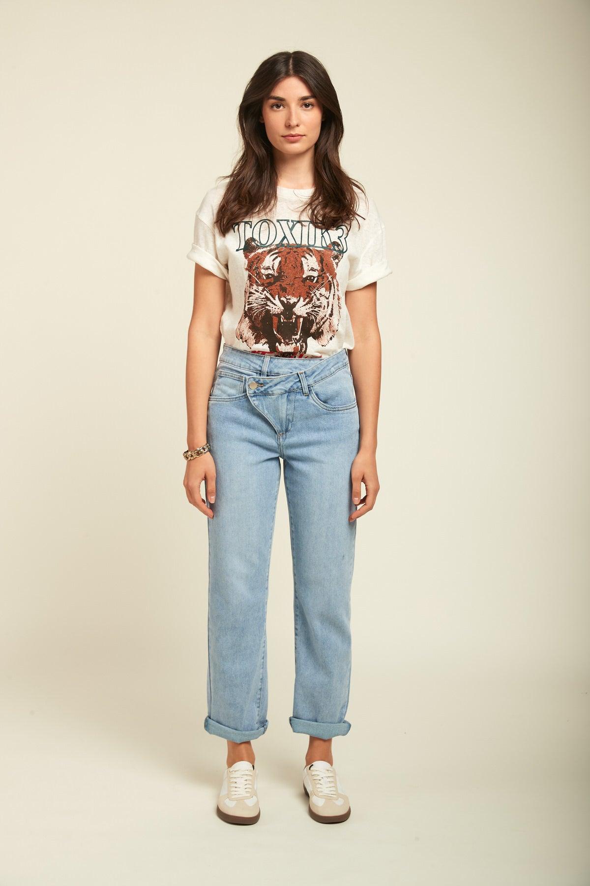 Le jean à grande tendance de l'année avec sa fermeture sur le côté originale qui se porte loose.