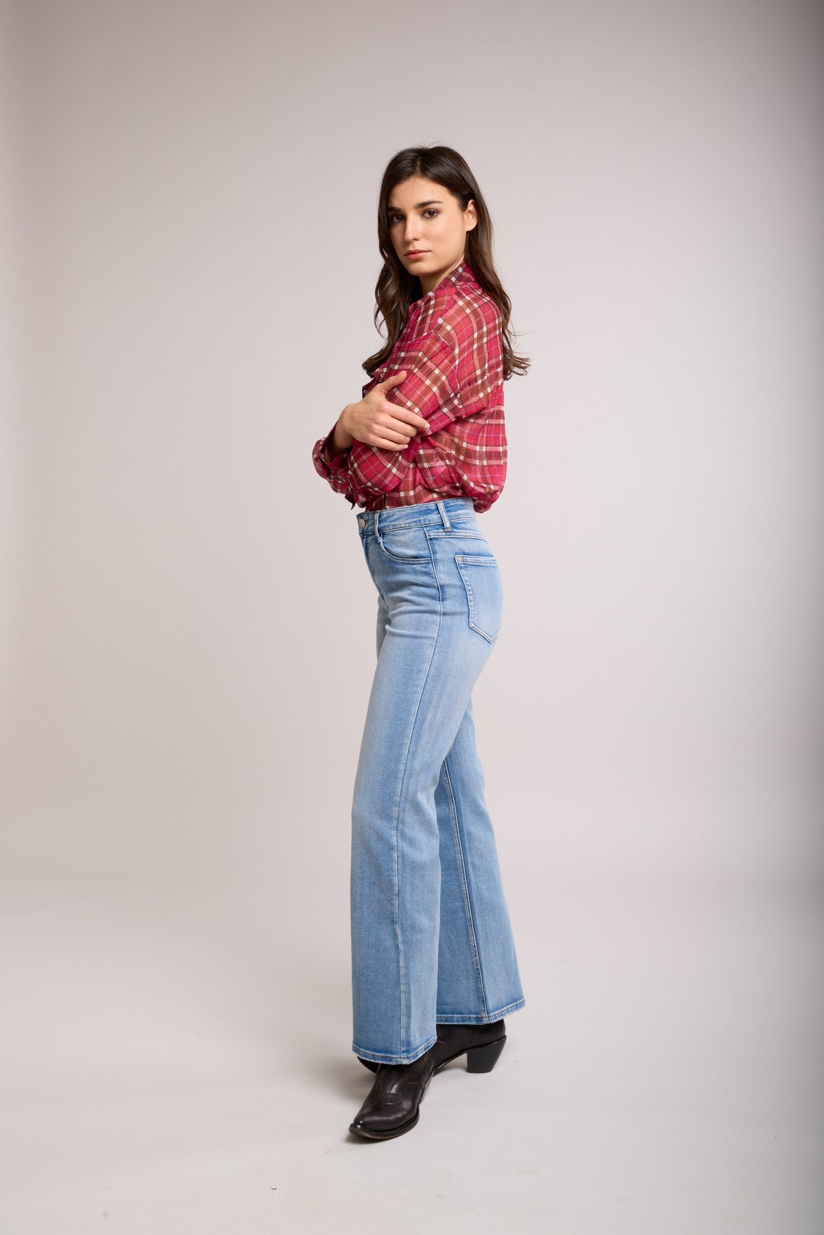 Ce jean droit à taille standard, en bleu jean classique, apporte un look simple et intemporel.